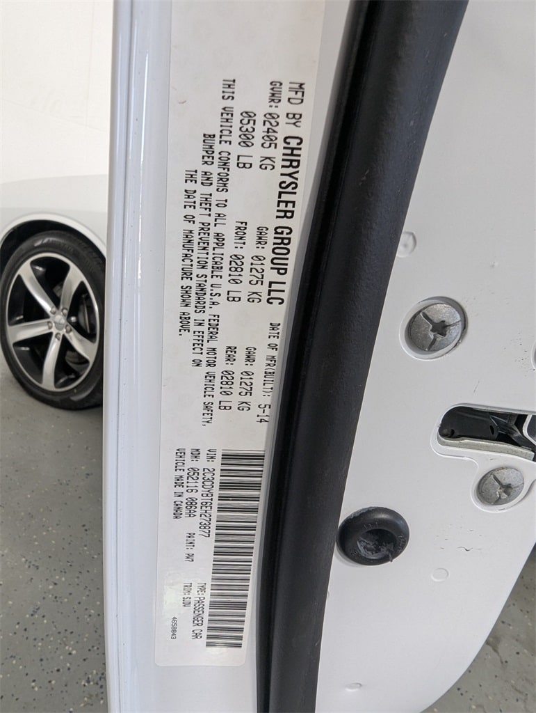 2014 Dodge Challenger R/T Beautifully finished in Bright White Clearcoat with Dark Slate Gray Leather interior. HEMI 5.7L V8 VVT 2D Coupe RWD Tremec 6-Speed Manual **CLEAN CARFAX**, **LOW MILES**, 18" x 7.5" Aluminum Wheels, 20" x 8" Aluminum Wheels, 276 Watt Amplifier, 3.92 Rear Axle Ratio, 4-Wheel Disc Brakes, 40GB Hard Drive w/28GB Available, 6 Speakers, 6.5" Touchscreen Display, ABS brakes, Air Conditioning, Alloy wheels, AM/FM radio, Anti-Lock 4-Wheel Disc HD Brakes, Anti-whiplash front head restraints, Audio Jack Input for Mobile Devices, Auto-dimming Rear-View mirror, Automatic temperature control, Body Color Exterior Mirrors, Brake assist, Bumpers: body-color, CD player, Cloth Low-Back Bucket Seats, Dash Plaque, Delay-off headlights, Driver door bin, Driver vanity mirror, Dual front impact airbags, Dual front side impact airbags, Electronic Stability Control, Electronics Convenience Group, Four wheel independent suspension, Front anti-roll bar, Front Bucket Seats, Front Center Armrest, Front fog lights, Front reading lights, Fully automatic headlights, Garmin Navigation System, Heated Front Seats, Illuminated entry, Leather Shift Knob, Low tire pressure warning, MOPAR Shaker Hood, MOPAR Shaker Intake, Overhead airbag, Overhead console, Painted Fuel Filler Door, Panic alarm, Passenger door bin, Passenger vanity mirror, Performance Steering Wheel, Power door mirrors, Power driver seat, Power Heated Fold-Away Mirrors, Power steering, Power windows, Quick Order Package 27S Shaker, Radio data system, Radio: Uconnect 130 AM/FM/CD/MP3, Radio: Uconnect 430N CD/DVD/MP3/HDD/NAV, Rear anti-roll bar, Rear seat center armrest, Rear window defroster, Remote keyless entry, Security Alarm, Shaker Graphics, SIRIUS Satellite Radio, SiriusXM Travel Link, Sound Group II, Speed control, Speed-sensing steering, Split folding rear seat, Spoiler, Steering wheel mounted audio controls, Tachometer, Telescoping steering wheel, Tilt steering wheel, Tire Pressure Monitoring Display, Traction control, Trip computer, Ultra Premium Leather Seats w/2_S, Underhood Shaker Decal, Universal Garage Door Opener, Variably intermittent wipers. Clean CARFAX.