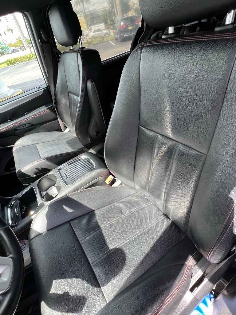 This Grand Caravan is well equipped with Quick Order Package 29N, 115V Auxiliary Power Outlet, 2nd Row Stow 'N Go Bucket Seats, 3.16 Axle Ratio, 3rd row seats: split-bench, 4-Wheel Disc Brakes, 9 Speakers, ABS brakes, Air Conditioning, Alloy wheels, AM/FM radio: SiriusXM, Anti-whiplash front head restraints, Auto-dimming Rear-View mirror, Automatic temperature control, Bodyside moldings, Brake assist, Bumpers: body-color, CD player, Compass, Delay-off headlights, Driver door bin, Driver vanity mirror, Driver's Seat Mounted Armrest, Dual front impact airbags, Dual front side impact airbags, DVD-Audio, Electronic Stability Control, Front anti-roll bar, Front Bucket Seats, Front dual zone A/C, Front fog lights, Front reading lights, Front wheel independent suspension, Fully automatic headlights, Garage door transmitter, Heated door mirrors, Heated front seats, Heated steering wheel, Illuminated entry, Knee airbag, Leather Shift Knob, Leather Trimmed Bucket Seats, Low tire pressure warning, Manufacturer's Statement of Origin, Navigation system: Garmin, Occupant sensing airbag, Outside temperature display, Overhead airbag, Overhead console, Panic alarm, ParkView Rear Back-Up Camera, Passenger door bin, Passenger seat mounted armrest, Passenger vanity mirror, Power door mirrors, Power driver seat, Power Liftgate, Power passenger seat, Power steering, Power windows, Radio data system, Radio: 430 Nav, Rear air conditioning, Rear reading lights, Rear window defroster, Rear window wiper, Reclining 3rd row seat, Remote keyless entry, Security system, Speed control, Split folding rear seat, Spoiler, Steering wheel mounted audio controls, Tachometer, Telescoping steering wheel, Tilt steering wheel, Touring Suspension, Traction control, Trip computer, Variably intermittent wipers, and Wheels: 17" x 6.5" Fully Painted Black.
