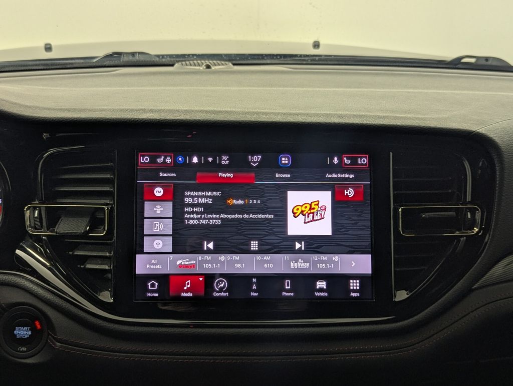 Step inside the Durango R/T, and you'll be surrounded by premium amenities that elevate the driving experience. The Black, Leather Trimmed Bucket Seats offer exceptional comfort and support, while the ventilated front seats and heated rear seats ensure everyone on board stays comfortable. The Uconnect 5 Nav system with a 10.1-inch display provides seamless connectivity, navigation, and entertainment, all at your fingertips.