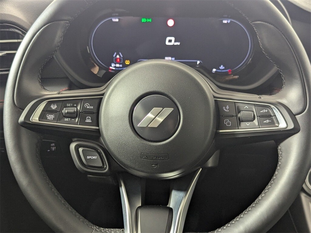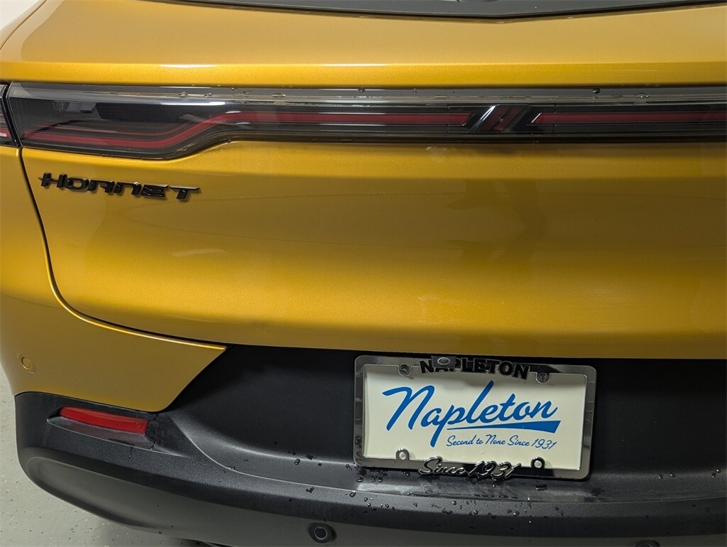 This Hornet is well equipped with GT Blacktop Package (DISC) (Dark GT Badge, Dark Hornet Badge, Gloss Black Painted Day Light Opening, Gloss Black Painted Mirror Caps, and Wheels: 18" x 7.5" Abyss Aluminum (DISC)), Quick Order Package 23L, Tech Pack Plus w/o Parking (Active Driving Assist System, Drowsy Driver Detection, Intelligent Speed Assist (ISA), ParkSense Front/Rear/Side Park Assist, and Surround View Camera System), FCA US LLC Certified Pre-Owned Certified, Apple CarPlay/Android Auto, harman/kardon® Speakers, Power Liftgate, Power moonroof, 4-Wheel Disc Brakes, 8 Speakers, ABS brakes, Air Conditioning, Alloy wheels, AM/FM radio: SiriusXM, Anti-whiplash front head restraints, Auto High-beam Headlights, Auto-dimming Rear-View mirror, Automatic temperature control, Brake assist, Bumpers: body-color, Compass, Delay-off headlights, Driver door bin, Driver vanity mirror, Dual front impact airbags, Dual front side impact airbags, Electronic Stability Control, Emergency communication system: SiriusXM Guardian, Four wheel independent suspension, Front anti-roll bar, Front Bucket Seats, Front Center Armrest w/Storage, Front dual zone A/C, Front reading lights, Fully automatic headlights, Garage door transmitter, Heated door mirrors, Heated front seats, Heated steering wheel, Illuminated entry, Knee airbag, Leather Seats, Leather steering wheel, Low tire pressure warning, Manufacturer's Statement of Origin, Memory seat, Navigation System/ GPS, Normal Duty Suspension, Occupant sensing airbag, Outside temperature display, Overhead airbag, Overhead console, Panic alarm, ParkView Rear Back-Up Camera, Passenger door bin, Passenger vanity mirror, Power 4-Way Driver Lumbar Adjust, Power 4-Way Passenger Lumbar Adjust, Power Adjust 8-Way Driver Seat, Power Adjust 8-Way Front Passenger Seat, Power door mirrors, Power driver seat, Power passenger seat, Power steering, Power windows, Radio: Uconnect 5 Nav w/10.25" Display, Rain sensing wipers, Rear anti-roll bar, Rear seat center armrest, Rear window defroster, Rear window wiper, Remote keyless entry, Security system, Speed control, Split folding rear seat, Spoiler, Steering wheel mounted audio controls, Tachometer, TBD Axle Ratio, Telescoping steering wheel, Tilt steering wheel, Traction control, Trip computer, Turn signal indicator mirrors, Variably intermittent wipers, Ventilated Front Seats, Ventilated front seats, and Wheels: 17" x 7" Silver Aluminum.