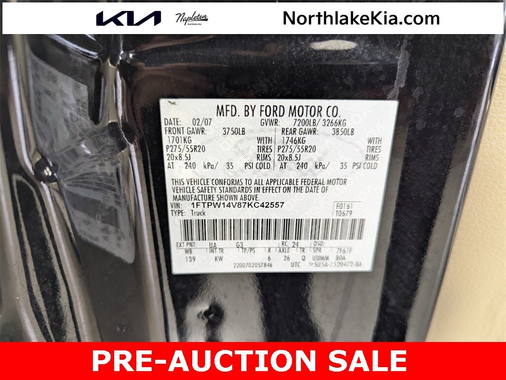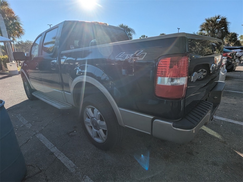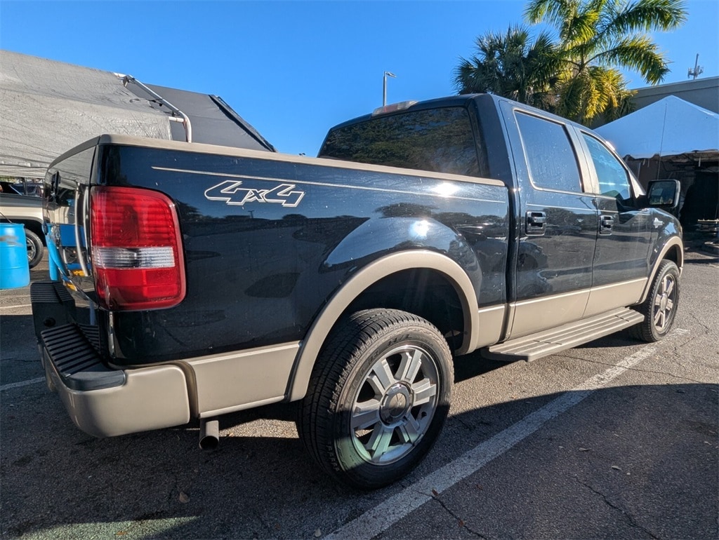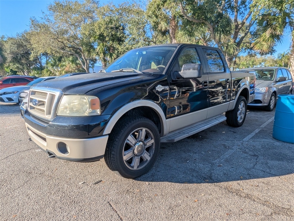 2007 Ford F-150 King Ranch Beautifully finished in Black Clearcoat with Tan Leather interior. 5.4L V8 EFI 24V FFV 4D Crew Cab 4WD 4-Speed Automatic with Overdrive 5.4L V8 EFI 24V FFV, 4WD, ABS brakes, Alloy wheels, Compass, Heated door mirrors, Illuminated entry, Low tire pressure warning, Remote keyless entry.