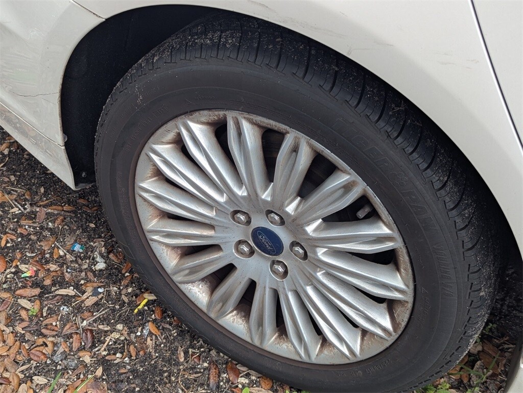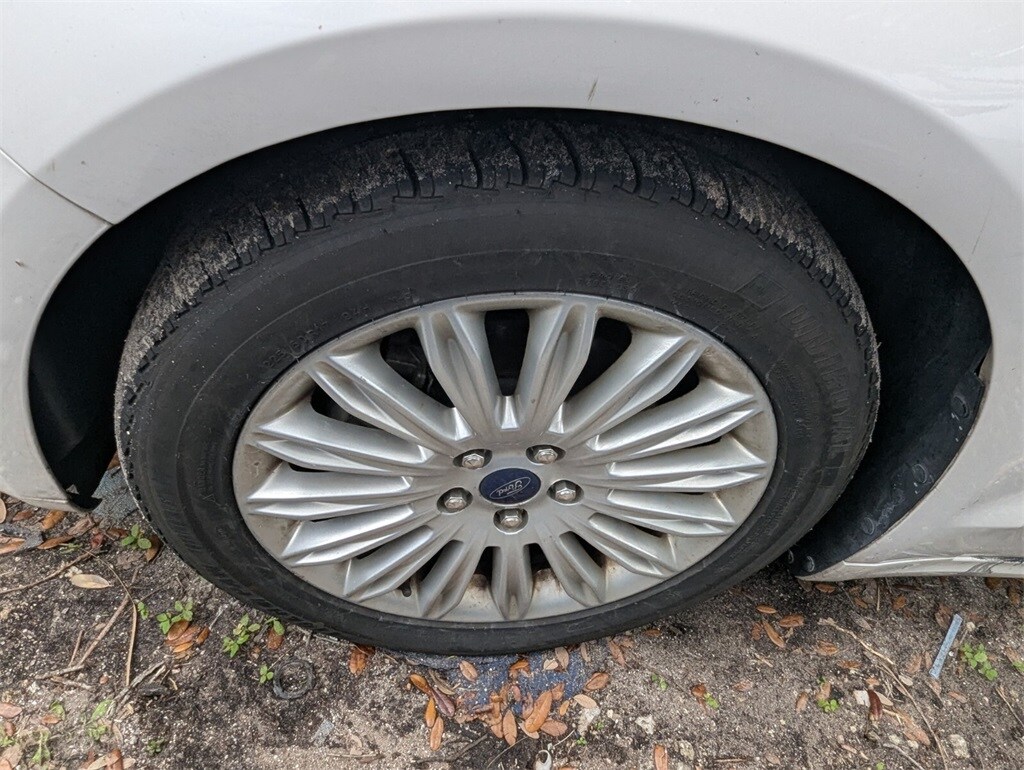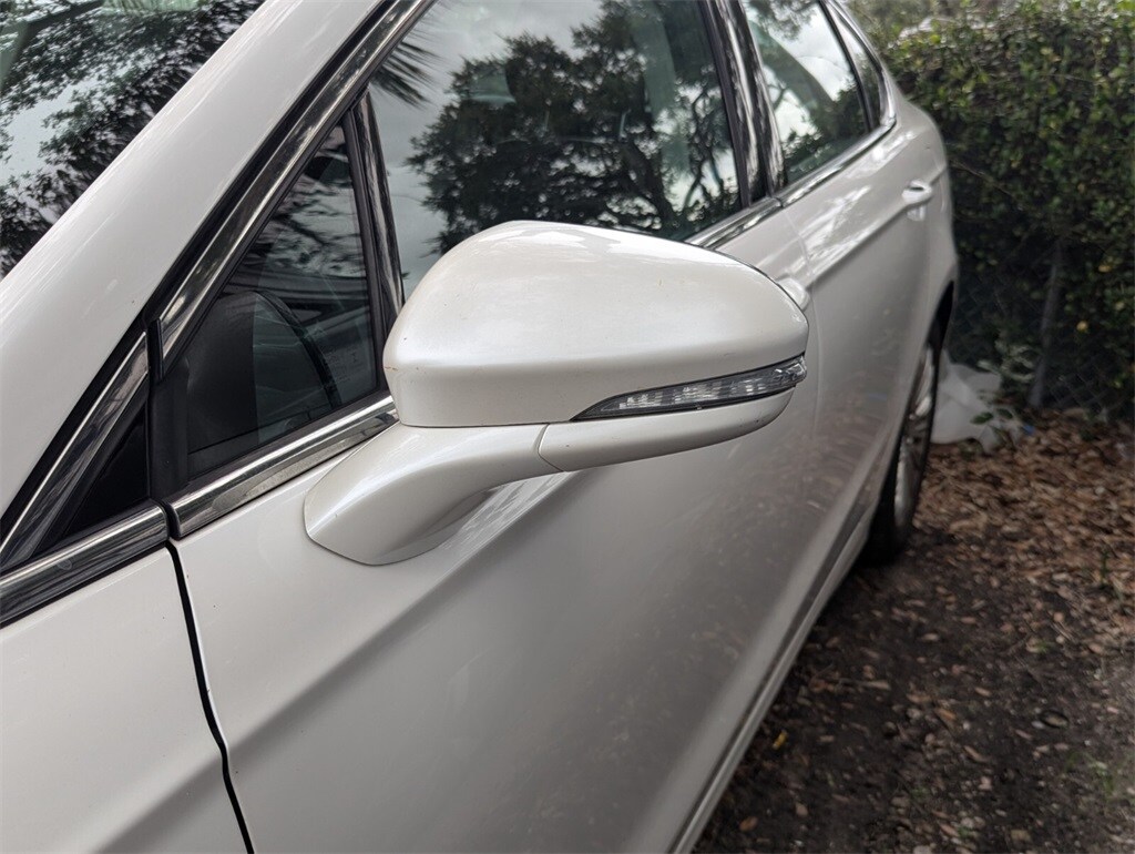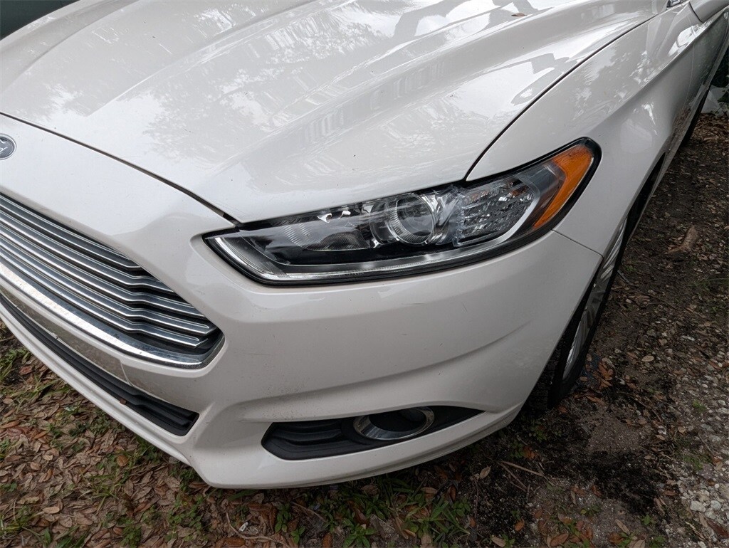 Features: Equipment Group 502A, Luxury Package (Chrome Moldings Around Window, Electrochromic Exterior Mirrors, Electrochromic Rear-View Mirror, Fog Lamps, Heated Leather Front Bucket Seats, Leather Wrapped Gearshift Knob, Leather-Wrapped Steering Wheel, LED Rear Combination Lamps Ford High (Full Circle), and Warm Interior Accents), SE MyFord Touch Technology Package (110V Power Outlet, Rear-View Camera, and SYNC w/MyFord Touch), Fusion Hybrid SE, 4D Sedan, 2.0L I4 Atkinson-Cycle Hybrid, E-CVT Automatic, FWD, White Platinum Clearcoat Metallic, Black Leather, 17" Unique Aluminum Wheels, 4-Wheel Disc Brakes, 6 Speakers, ABS brakes, Air Conditioning, Alloy wheels, AM/FM radio: SiriusXM, Automatic temperature control, Brake assist, Bumpers: body-color, CD player, Compass, Delay-off headlights, Driver door bin, Driver vanity mirror, Dual front impact airbags, Dual front side impact airbags, EcoCloth Front Bucket Seats, Electronic Stability Control, Four wheel independent suspension, Front anti-roll bar, Front Bucket Seats, Front Center Armrest, Front dual zone A/C, Front License Plate Bracket, Front reading lights, Fully automatic headlights, Heated door mirrors, Illuminated entry, Knee airbag, Low tire pressure warning, Moonroof, Occupant sensing airbag, Outside temperature display, Overhead airbag, Overhead console, Panic alarm, Passenger door bin, Passenger vanity mirror, Power door mirrors, Power driver seat, Power steering, Power windows, Radio data system, Radio: AM/FM Stereo/MP3/Single-CD, Rear anti-roll bar, Rear reading lights, Rear seat center armrest, Rear window defroster, Remote keyless entry, Security system, Speed control, Speed-sensing steering, Speed-Sensitive Wipers, Split folding rear seat, Steering wheel mounted audio controls, SYNC Communications & Entertainment System, Tachometer, Telescoping steering wheel, Tilt steering wheel, Traction control, Trip computer, Turn signal indicator mirrors, Universal Garage Door Opener, and Variably intermittent wipers.