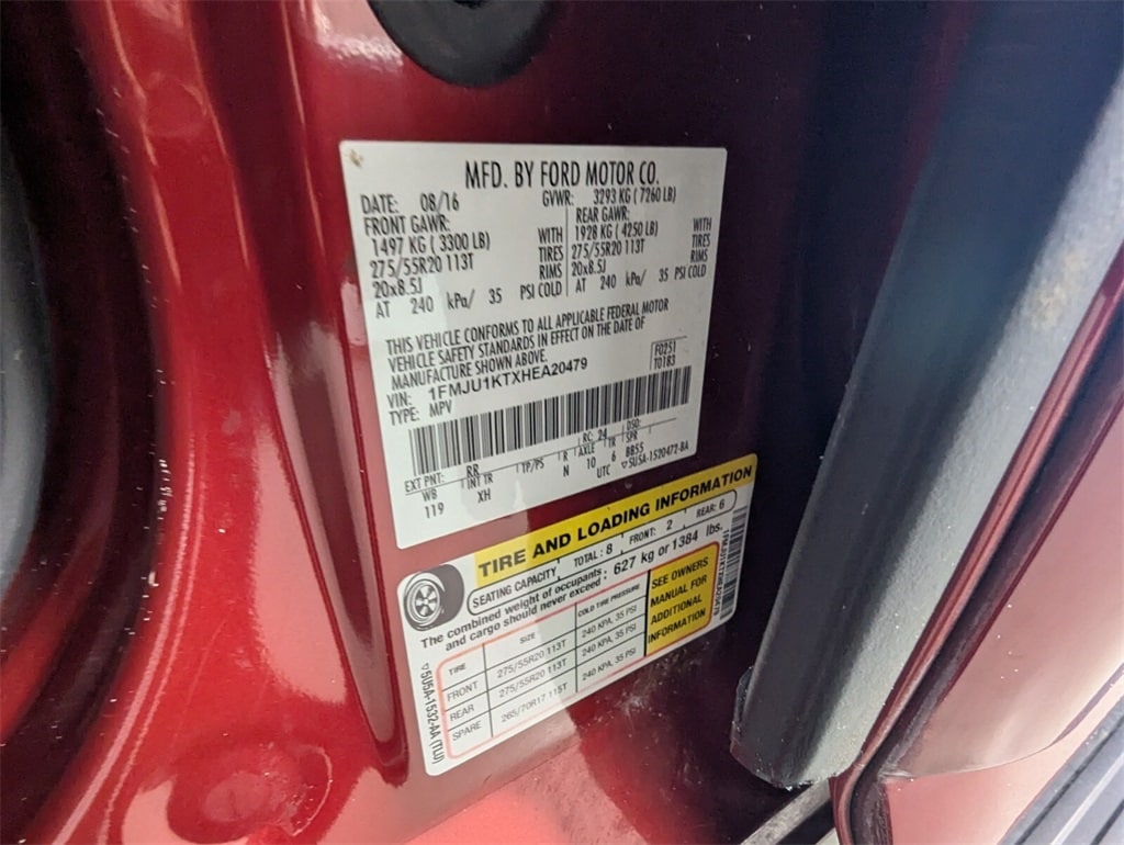 2017 Ford Expedition Limited Beautifully finished in Ruby Red with Ebony Leather interior. EcoBoost 3.5L V6 GTDi DOHC 24V Twin Turbocharged 4D Sport Utility RWD 6-Speed Automatic 12 Speakers, 20" Polished Aluminum Wheels, 3.15 Axle Ratio, 3rd row seats: split-bench, 4-Wheel Disc Brakes, ABS brakes, Adjustable pedals, Air Conditioning, Alloy wheels, AM/FM radio: SiriusXM, Auto-dimming door mirrors, Auto-dimming Rear-View mirror, Automatic temperature control, Black Roof Rack, Brake assist, Bumpers: body-color, CD player, Compass, Delay-off headlights, Driver door bin, Driver vanity mirror, Dual front impact airbags, Dual front side impact airbags, Electronic Stability Control, Emergency communication system: 911 Assist, Equipment Group 301A, Exterior Parking Camera Rear, Four wheel independent suspension, Front anti-roll bar, Front Bucket Seats, Front Center Armrest, Front dual zone A/C, Front fog lights, Front reading lights, Fully automatic headlights, Garage door transmitter, GVWR: 7,260 lbs Payload Package, Heated & Cooled Perforated Leather Fr Bucket Seats, Heated door mirrors, Heated front seats, Heated rear seats, Illuminated entry, Leather Shift Knob, Leather steering wheel, Limited Appearance Package, Low tire pressure warning, Magnetic Grille, Magnetic Mirror Cap, Memory seat, Occupant sensing airbag, Outside temperature display, Overhead airbag, Overhead console, Panic alarm, Passenger door bin, Passenger vanity mirror, Pedal memory, Power door mirrors, Power driver seat, Power Liftgate, Power Moonroof, Power passenger seat, Power steering, Power windows, Power-Deployable Running Boards, Radio data system, Radio: Premium Sony Sound System w/Single-Disc/MP3, Rain sensing wipers, Rear air conditioning, Rear anti-roll bar, Rear audio controls, Rear reading lights, Rear window defroster, Rear window wiper, Remote keyless entry, Roof rack, Security system, SiriusXM Satellite Radio, Speed control, Speed-sensing steering, Speed-Sensitive Wipers, Split folding rear seat, Steering wheel mounted audio controls, SYNC 3 Communications & Entertainment System, Tachometer, Telescoping steering wheel, Tilt steering wheel, Traction control, Trip computer, Turn signal indicator mirrors, Variably intermittent wipers, Ventilated front seats, Voice-Activated Touch-Screen Navigation System, Voltmeter, Wheels: 20" Magnetic Painted. Priced below KBB Fair Purchase Price!