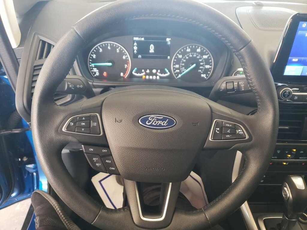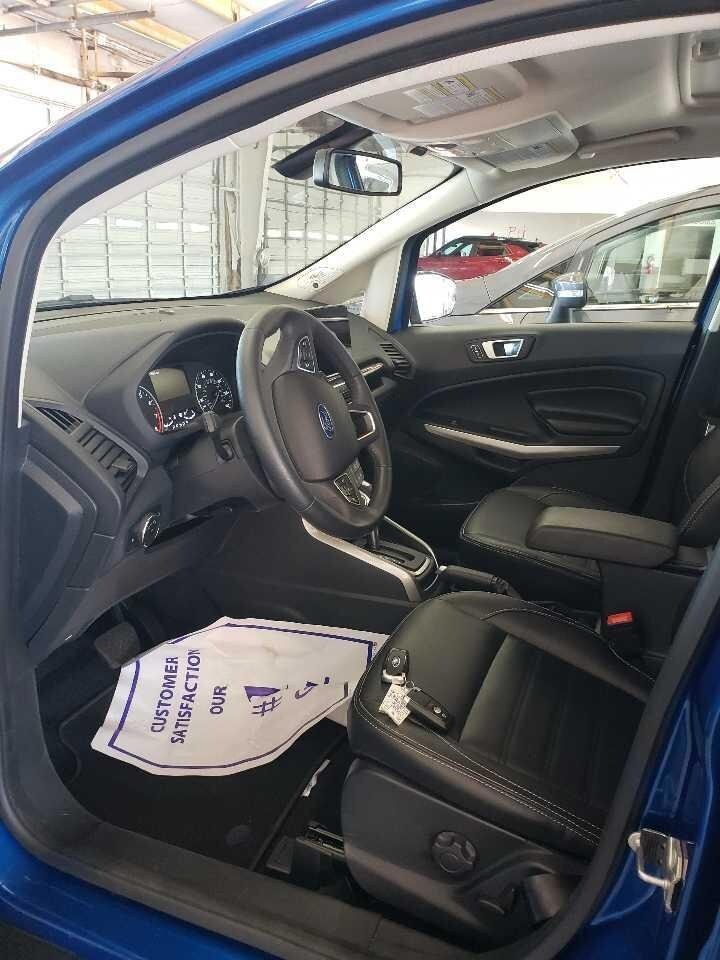 This EcoSport is well equipped with Equipment Group 400A, Interior Protection Package (Cargo Mat and Front & Rear Floor Liners), 10 Speakers, 3.44 Axle Ratio, 4-Wheel Disc Brakes, ABS brakes, ActiveX Seating Material Heated Front Bucket Seats, Air Conditioning, Alloy wheels, AM/FM radio: SiriusXM, Auto-dimming Rear-View mirror, Automatic temperature control, Brake assist, Bumpers: body-color, Compass, Delay-off headlights, Driver door bin, Driver vanity mirror, Dual front impact airbags, Dual front side impact airbags, Electronic Stability Control, Emergency communication system: SYNC 3 911 Assist, Exterior Parking Camera Rear, Front anti-roll bar, Front Bucket Seats, Front Center Armrest, Front fog lights, Front reading lights, Front wheel independent suspension, Fully automatic headlights, Heated door mirrors, Heated front seats, Heated steering wheel, Illuminated entry, Knee airbag, Leather Shift Knob, Leather steering wheel, Low tire pressure warning, Navigation System/ GPS, Occupant sensing airbag, Outside temperature display, Overhead airbag, Overhead console, Panic alarm, Passenger door bin, Passenger vanity mirror, Power door mirrors, Power driver seat, Power moonroof, Power steering, Power windows, Radio data system, Radio: AM/FM/MP3 Stereo, Rain sensing wipers, Rear Parking Sensors, Rear seat center armrest, Rear side impact airbag, Rear window defroster, Rear window wiper, Remote keyless entry, Roof rack: rails only, Security system, SiriusXM Radio, SiriusXM Traffic & Travel Link, Speed control, Speed-sensing steering, Split folding rear seat, Steering wheel mounted audio controls, SYNC 3 Communications & Entertainment System, Tachometer, Telescoping steering wheel, Tilt steering wheel, Traction control, Trip computer, Turn signal indicator mirrors, Variably intermittent wipers, and Wheels: 17" Premium Dark Stainless-Painted.