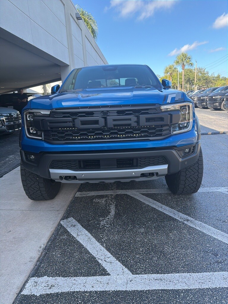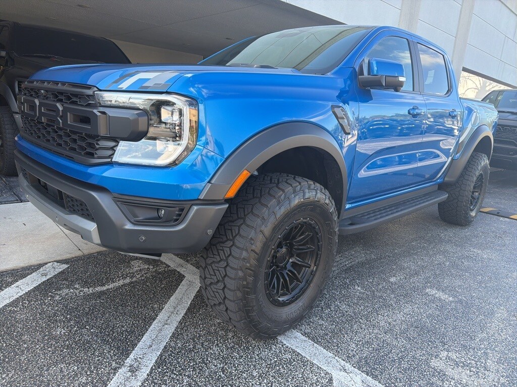 Recent Arrival! CARFAX One-Owner. Priced below KBB Fair Purchase Price! Blue Metallic 2024 Ford Ranger Raptor Raptor 4WD 3.0L EcoBoost V6 4D Crew Cab Odometer is 7776 miles below market average!