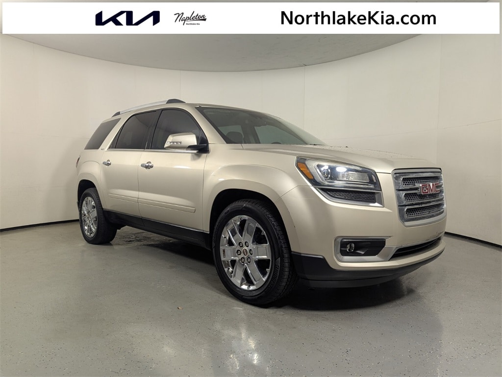 2017 GMC Acadia Limited Limited Beautifully finished in Sparkling Silver Metallic with Dark Cashmere Leather interior. 3.6L V6 SIDI 4D Sport Utility FWD 6-Speed Automatic 10 Speakers, 1st & 2nd Row All-Weather Floor Mats, 2-Position Memory For Driver's Seat Adjuster, 3.16 Axle Ratio, 3rd row seats: split-bench, 4-Wheel Disc Brakes, 7-Passenger Seating (2-2-3 Seating Configuration), 8-Way Power Driver Seat w/Memory, 8-Way Power Passenger Seat Adjuster, ABS brakes, Air Conditioning, Alloy wheels, AM/FM radio: SiriusXM, Auto-dimming door mirrors, Auto-dimming Rear-View mirror, Automatic temperature control, Body-Color Bodyside Moldings, Bodyside moldings, Bose Premium 10-Speaker Audio System, Brake assist, Bumpers: body-color, CD player, Compass, Delay-off headlights, Driver door bin, Driver vanity mirror, Dual front impact airbags, Dual front side impact airbags, Electronic Cruise Control w/Set & Resume Speed, Electronic Stability Control, Emergency communication system: OnStar Guidance, Exterior Parking Camera Rear, Four wheel independent suspension, Front anti-roll bar, Front Bucket Seats, Front Center Armrest w/Storage, Front dual zone A/C, Front fog lights, Front Halogen Projector Beam Fog Lamps, Front reading lights, Fully automatic headlights, Garage door transmitter, Heads-Up Display, Heated door mirrors, Heated Driver & Front Passenger Seats, Heated front seats, Heated Leather Wrapped Steering Wheel, Heated Power-Adjustable Outside Mirrors, Heated steering wheel, Heavy-Duty Cooling System, High-Intensity Discharge Headlights, Illuminated entry, Inside Rear-View Auto-Dimming Mirror, Leather Shift Knob, Leather-Appointed Seat Trim, Leather-Wrapped Steering Wheel, Low tire pressure warning, Memory seat, Navigation System, NavTraffic, Occupant sensing airbag, Outside temperature display, Overhead airbag, Overhead console, Panic alarm, Passenger door bin, Passenger vanity mirror, Power door mirrors, Power driver seat, Power Liftgate, Power passenger seat, Power Rear Liftgate Body, Power steering, Power windows, Power Windows w/Driver Express-Up & -Down, Preferred Equipment Group 4SB, Radio data system, Radio: Color Touch Navigation w/IntelliLink, Rear air conditioning, Rear anti-roll bar, Rear audio controls, Rear Audio System Controls, Rear Parking Sensors, Rear reading lights, Rear window defroster, Rear window wiper, Remote keyless entry, Remote Vehicle Start, Roof rack: rails only, Security system, Side Blind Zone Alert & Rear Cross Traffic Alert, Single Outlet Exhaust, SiriusXM Satellite Radio, Speed control, Speed-sensing steering, Spoiler, Steering Wheel Mounted Audio Controls, Steering wheel mounted audio controls, Tachometer, Telescoping steering wheel, Tilt & Telescopic Steering Column, Tilt steering wheel, Traction control, Trailer Hitch, Trailering Equipment, Tri-Zone Automatic Climate Control, Trip computer, Turn signal indicator mirrors, Universal Home Remote, Variable Effort Power Steering, Variably intermittent wipers, Voltmeter, Wheels: 20" x 7.5" Chrome-Clad Aluminum (4). CARFAX One-Owner. Priced below KBB Fair Purchase Price!