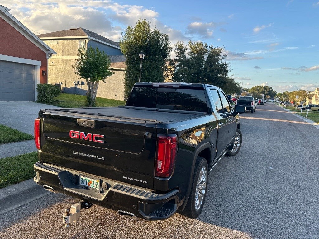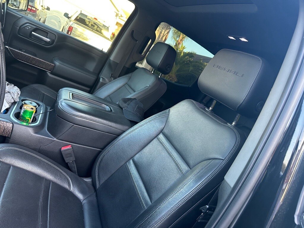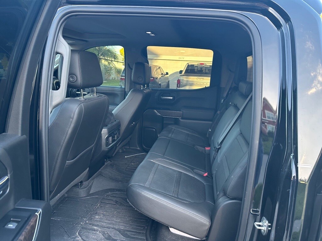 This Sierra 1500 is well equipped with Denali Ultimate Package (GMC MultiPro Power Steps, Power Sunroof, and Trailer Tire Pressure Monitor System), Driver Alert Package I (Lane Change Alert w/Side Blind Zone Alert, Perimeter Lighting, Rear Cross Traffic Alert, and Ultrasonic Front & Rear Park Assist), Driver Alert Package II (Following Distance Indicator, Forward Collision Alert, Front Pedestrian Braking, IntelliBeam Automatic High Beam On/Off, Lane Keep Assist w/Lane Departure Warning, and Low Speed Forward Automatic Braking), Preferred Equipment Group 5SA (12-Volt Rear Auxiliary Power Outlet, 120-Volt Bed Mounted Power Outlet, 120-Volt Instrument Panel Power Outlet, 170 Amp Alternator, 2 USB Ports, 2 USB Ports (1st Row), Auxiliary External Transmission Oil Cooler, Chrome Assist Steps, Chrome Recovery Hooks, Color-Keyed Carpeting Floor Covering, Compass, Deep-Tinted Glass, Electric Rear-Window Defogger, Electrical Lock Control Steering Column, Floor Mounted Console, GMC 4G LTE, GMC Connected Access, HD Radio, HD Rear Vision Camera, Heated 2nd Row Outboard Seats, Heated Driver & Front Passenger Seating, Heavy-Duty Rear Locking Differential, High-Capacity Air Filter, Hill Descent Control, Hitch Guidance, Hitch Guidance w/Hitch View, In-Vehicle Trailering App, Integrated Trailer Brake Controller, Keyless Open & Start, LED Cargo Area Lighting, Manual Tilt-Wheel & Telescoping Steering Column, OnStar & GMC Connected Services Capable, Power Door Locks, Power Front Passenger Windows w/Express Up/Down, Power Front Windows w/Driver Express Up/Down, Power Rear Windows w/Express Down, Power Sliding Rear Window w/Rear Defogger, Rear Dual USB Charging-Only Ports, Rear Wheelhouse Liners, Remote Vehicle Starter System, Safety Alert Seat, Signature Denali Grille, Spray-On Pickup Bed Liner w/Denali Logo, Steering Wheel Audio Controls, Theft Deterrent System (Unauthorized Entry), Universal Home Remote, Ventilated Driver & Front Passenger Seats, and Wireless Charging), Technology Package (HD Surround Vision, Multi-Color 15" Diagonal Head-Up Display, and Rear Camera Mirror), Trailering Package, 10-Speed Automatic, 4WD, Jet Black Leather, 10-Way Power Driver Seat Adjuster w/Lumbar, 10-Way Power Passenger Seat Adjuster w/Lumbar, 3.23 Rear Axle Ratio, 4-Wheel Disc Brakes, 7 Speakers, ABS brakes, Adaptive Ride Control Suspension, Adaptive suspension, Air Conditioning, Alloy wheels, AM/FM radio: SiriusXM, Apple CarPlay/Android Auto, Auto-dimming door mirrors, Auto-dimming Rear-View mirror, Automatic temperature control, Brake assist, Bumpers: body-color, Delay-off headlights, Driver door bin, Driver Memory, Driver vanity mirror, Dual front impact airbags, Dual front side impact airbags, Electronic Stability Control, Forge Perforated Leather-Appointed Seat Trim, Front anti-roll bar, Front Bucket Seats, Front Center Armrest, Front dual zone A/C, Front fog lights, Front reading lights, Front wheel independent suspension, Fully automatic headlights, Garage door transmitter, Genuine wood console insert, Genuine wood door panel insert, Heated door mirrors, Heated front seats, Heated rear seats, Heated steering wheel, Illuminated entry, Low tire pressure warning, Memory seat, Navigation System/ GPS, Occupant sensing airbag, Outside temperature display, Overhead airbag, Overhead console, Panic alarm, Passenger door bin, Passenger vanity mirror, Power door mirrors, Power driver seat, Power passenger seat, Power steering, Power windows, Premium audio system: GMC Infotainment System, Premium Bose 7-Speaker Sound System, Radio data system, Radio: Premium GMC Infotainment Sys w/Navigation, Rear reading lights, Rear seat center armrest, Rear step bumper, Rear window defroster, Remote keyless entry, Security system, SiriusXM Radio,