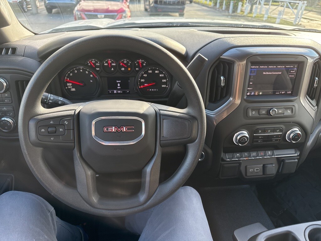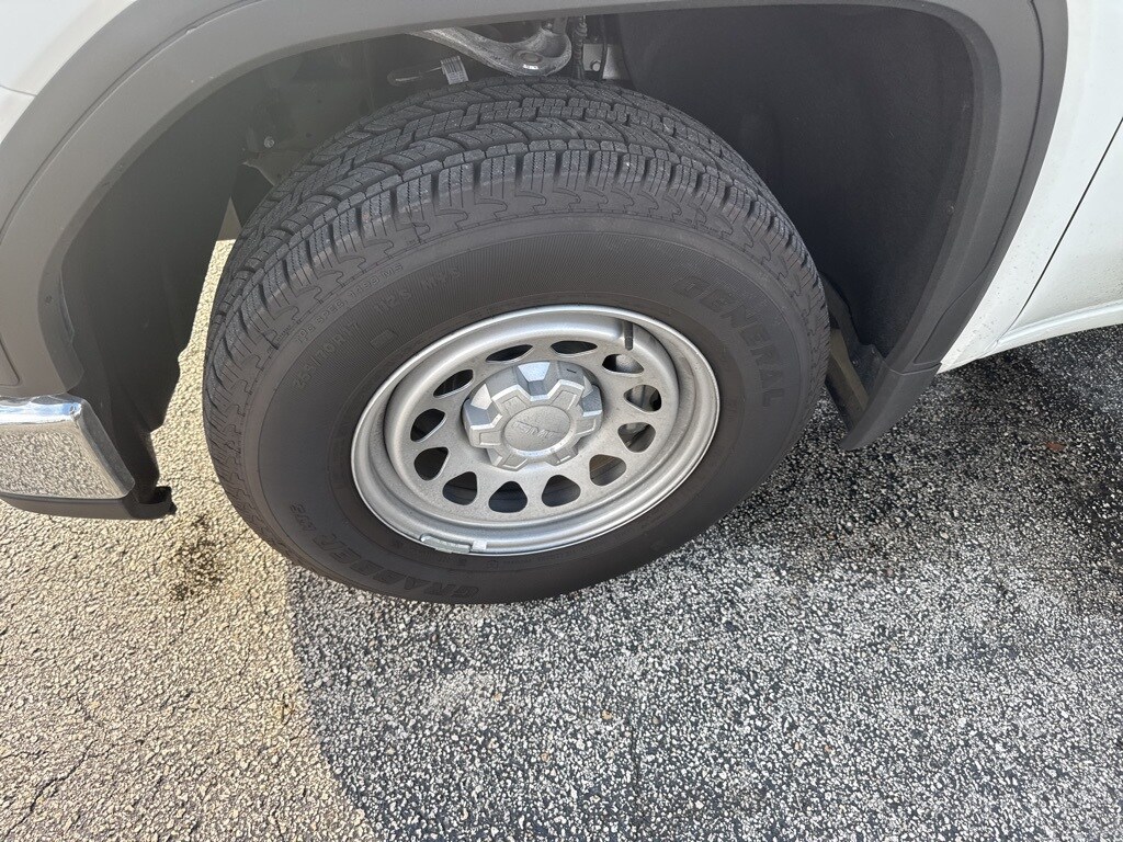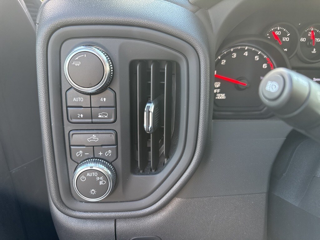 This Sierra 1500 is well equipped with Convenience Package (Deep-Tinted Glass, Electric Rear-Window Defogger, EZ Lift Power Lock & Release Tailgate, and LED Cargo Area Lighting), Preferred Equipment Group 1SA (2 Charge/Data USB Ports, 220 Amp Alternator, Chrome Header w/Flat Black Grille Insert Bars, Front Frame-Mounted Black Recovery Hooks, HD Rear Vision Camera, OnStar Services Capable, Power Door Locks, Power Front Windows w/Driver Express Up/Down, Power Front Windows w/Passenger Express Down, Push Button Start, Remote Keyless Entry, Solar Absorbing Tinted Glass, and Wi-Fi Hotspot Capable), Pro Value Package, Standard Suspension Package, Trailering Package (Hitch Guidance), 8-Speed Automatic, 4WD, Black Cloth, 10-Way Power Driver Seat Adjuster w/Lumbar, 120-Volt Bed Mounted Power Outlet, 120-Volt Interior Power Outlet, 2 Speakers, 2-Speaker Audio System Feature, 3.42 Rear Axle Ratio, 4-Way Manual Driver Seat Adjuster, 4-Way Manual Passenger Seat Adjuster, 4-Wheel Disc Brakes, ABS brakes, Air Conditioning, AM/FM radio, Apple CarPlay/Android Auto, Auto High-beam Headlights, Auto-Locking Rear Differential, Automatic Emergency Braking, Brake assist, Buckle to Drive, Bumpers: chrome, Compass, Delay-off headlights, Driver door bin, Dual front impact airbags, Dual front side impact airbags, Electronic Stability Control, Emergency communication system: OnStar, Following Distance Indicator, Forward Collision Alert, Front 40/20/40 Split-Bench Seat, Front anti-roll bar, Front Center Armrest w/Storage, Front Pedestrian Braking, Front reading lights, Front wheel independent suspension, Fully automatic headlights, Heated door mirrors, Illuminated entry, IntelliBeam Automatic High Beam On/Off, Lane Keep Assist w/Lane Departure Warning, Low tire pressure warning, Occupant sensing airbag, Outside temperature display, Overhead airbag, Overhead console, Panic alarm, Passenger door bin, Passenger vanity mirror, Power door mirrors, Power steering, Power windows, Radio data system, Radio: GMC Infotainment Audio System, Rear reading lights, Rear step bumper, Remote keyless entry, Speed control, Speed-sensing steering, Tachometer, Tilt steering wheel, Traction control, Trip computer, Variably intermittent wipers, Vinyl Seat Trim, Voltmeter, Wheels: 17" x 8" Silver Painted Steel, and Wireless Apple CarPlay/Wireless Android Auto.