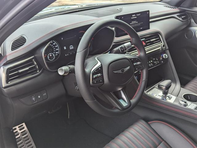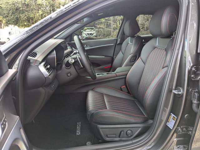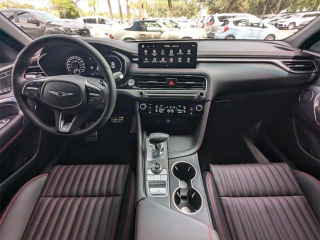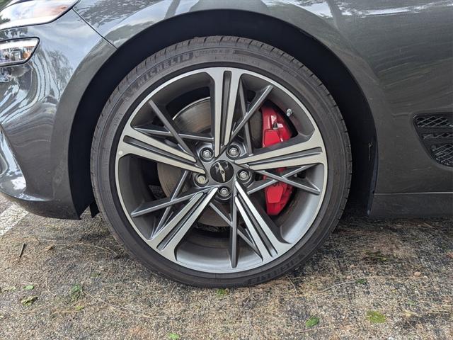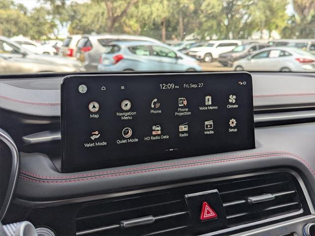 Features: Sport Prestige Package (4-Way Power Lumbar Front Passenger Seat, Acoustic Front Door Glass, Alloy Pedals, Dark Chrome Grille & Daylight Opening Trim, Forward & Reverse Parking Distance Warning, Front Passenger Seat Walk-In Device, Integrated Memory System (IMS), Leather Seating Surfaces, Option Group 02, Power Folding ECM Outside Mirrors, Power Telescoping Steering Wheel, Radio: AM/FM/SiriusXM/HD Lexicon Prem Audio System, Rain-Sensing Wipers, Sport Aluminum Trim, Ventilated Front Seats, Wheels: 19" x 8.0J Fr & 19" x 8.5J Rr Sport Alloy, Wide Sunroof, and Wireless Phone Charger), 4-Wheel Disc Brakes, 6 Speakers, ABS brakes, Air Conditioning, Alloy wheels, AM/FM radio: SiriusXM, Android Auto & Apple CarPlay, Anti-whiplash front head restraints, Auto High-beam Headlights, Auto-dimming Rear-View mirror, Automatic temperature control, Brake assist, Bumper Applique, Bumpers: body-color, Delay-off headlights, Driver door bin, Driver vanity mirror, Dual front impact airbags, Dual front side impact airbags, Electronic Stability Control, Emergency communication system: Genesis Connected Services, Exterior Parking Camera Rear, First Aid Kit, Four wheel independent suspension, Front anti-roll bar, Front Bucket Seats, Front Center Armrest, Front dual zone A/C, Front reading lights, Fully automatic headlights, Garage door transmitter: HomeLink, Heated door mirrors, Heated front seats, Heated Multi-Adjustable Front Bucket Seats, Illuminated entry, Knee airbag, Leatherette Seating Surfaces, Low tire pressure warning, Navigation System, Occupant sensing airbag, Outside temperature display, Overhead airbag, Overhead console, Panic alarm, Passenger door bin, Passenger vanity mirror, Power door mirrors, Power driver seat, Power passenger seat, Power steering, Power windows, Radio: AM/FM/SiriusXM/HD Audio System, Rear anti-roll bar, Rear reading lights, Rear seat center armrest, Rear side impact airbag, Rear window defroster, Remote keyless entry, Reversible Cargo Tray, Security system, Speed control, Speed-Sensitive Wipers, Split folding rear seat, Steering wheel mounted audio controls, Tachometer, Telescoping steering wheel, Traction control, Trip computer, Turn signal indicator mirrors, Variably intermittent wipers, Wheel Locks, and Wheels: 19" x 8.0J Fr & 19" x 8.5J Rr Alloy.