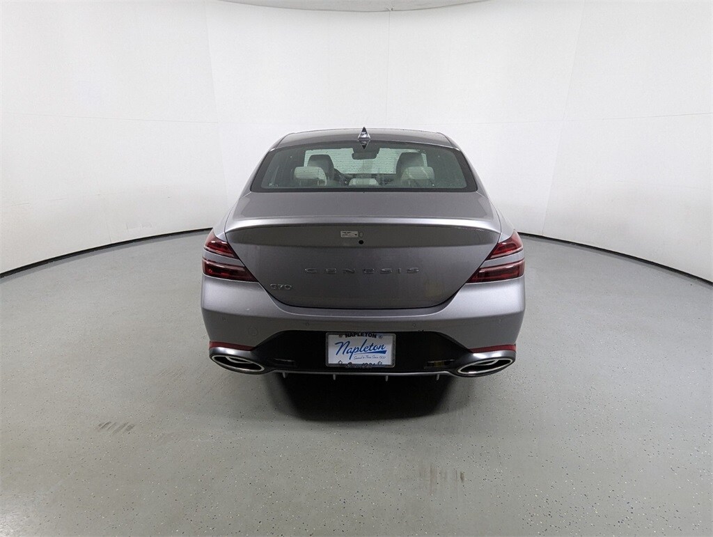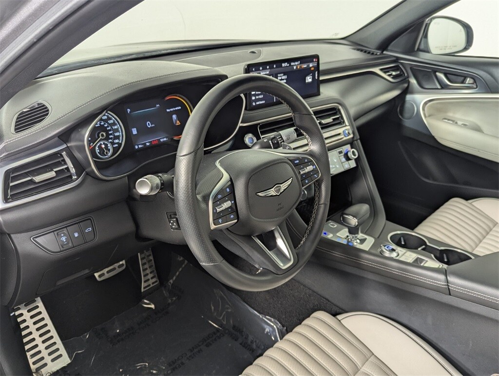 Features: Sport Prestige Package (4-Way Power Lumbar Front Passenger Seat, Acoustic Front Door Glass, Alloy Pedals, Dark Chrome Grille & Daylight Opening Trim, Forward & Reverse Parking Distance Warning, Front Passenger Seat Walk-In Device, Integrated Memory System (IMS), Leather Seating Surfaces, Option Group 02, Power Folding ECM Outside Mirrors, Power Telescoping Steering Wheel, Radio: AM/FM/SiriusXM/HD Lexicon Prem Audio System, Rain-Sensing Wipers, Sport Aluminum Trim, Ventilated Front Seats, Wheels: 19" x 8.0J Fr & 19" x 8.5J Rr Sport Alloy, Wide Sunroof, and Wireless Phone Charger), G70 2.5T, 4D Sedan, I4, 8-Speed Automatic, RWD, Savile Silver, Fog Gray 2-Tone Leather, 4-Wheel Disc Brakes, 6 Speakers, ABS brakes, Air Conditioning, Alloy wheels, AM/FM radio: SiriusXM, Android Auto & Apple CarPlay, Anti-whiplash front head restraints, Auto High-beam Headlights, Auto-dimming Rear-View mirror, Automatic temperature control, Brake assist, Bumpers: body-color, Delay-off headlights, Driver door bin, Driver vanity mirror, Dual front impact airbags, Dual front side impact airbags, Electronic Stability Control, Emergency communication system: Genesis Connected Services, Exterior Parking Camera Rear, Four wheel independent suspension, Front anti-roll bar, Front Bucket Seats, Front Center Armrest, Front dual zone A/C, Front reading lights, Fully automatic headlights, Garage door transmitter: HomeLink, Heated door mirrors, Heated front seats, Heated Multi-Adjustable Front Bucket Seats, Illuminated Door Scuff Plates, Illuminated entry, Knee airbag, Leatherette Seating Surfaces, Low tire pressure warning, Navigation System, Occupant sensing airbag, Outside temperature display, Overhead airbag, Overhead console, Panic alarm, Passenger door bin, Passenger vanity mirror, Power door mirrors, Power driver seat, Power passenger seat, Power steering, Power windows, Radio: AM/FM/SiriusXM/HD Audio System, Rear anti-roll bar, Rear reading lights, Rear seat center armrest, Rear side impact airbag, Rear window defroster, Remote keyless entry, Security system, Speed control, Speed-Sensitive Wipers, Split folding rear seat, Steering wheel mounted audio controls, Tachometer, Telescoping steering wheel, Traction control, Trip computer, Turn signal indicator mirrors, Variably intermittent wipers, and Wheels: 19" x 8.0J Fr & 19" x 8.5J Rr Alloy.