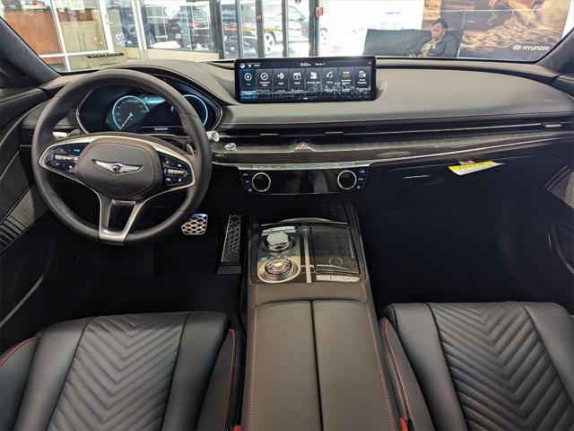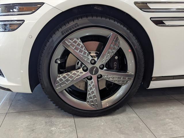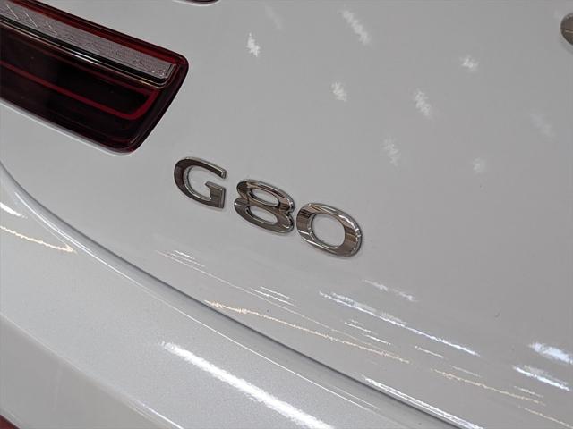 Features: Sport Prestige Package (12.3" 3D Digital Instrument Cluster, 3-Zone Climate Control, Advanced Rear Occupant Alert, Blind-Spot View Monitor, Carbon Fiber Trim, Driver Ergo Motion Seat, Driver Seat Power Bolster & Cushion Extension, Electronically Controlled Suspension, Forward Attention Warning, Front Passenger Seat Walk-In Device, Genesis Digital Key, Head-Up Display, Microfiber Suede Headliner & Pillars, Nappa Leather Seating Surfaces, Power Rear Sunshades, Radio: AM/FM/HD/SiriusXM Lexicon Audio System, Rear Wheel Steering, Remote Smart Parking Assist, Reverse Parking Collision - Avoidance Assist, Surround View Monitor, Wheels: 20"x8.5J Fr & 20"x9.5J Rr Sport Alloy, and Wireless Phone Charger), G80 3.5T, 4D Sedan, 3.5L V6 PDI Turbocharged DOHC 24V LEV3-ULEV70 375hp, 8-Speed Automatic, AWD, Uyuni White, Obsidian Black W/Red Leather, 12 Speakers, 4-Wheel Disc Brakes, ABS brakes, Adaptive suspension, Air Conditioning, All Season Fitted Liners, Alloy wheels, AM/FM radio: SiriusXM, Android Auto & Apple CarPlay, Anti-whiplash front head restraints, Auto High-beam Headlights, Auto tilt-away steering wheel, Auto-dimming door mirrors, Auto-dimming Rear-View mirror, Automatic temperature control, Bumpers: body-color, Compass, Delay-off headlights, Driver door bin, Driver vanity mirror, Dual front impact airbags, Dual front side impact airbags, Electronic Stability Control, Emergency communication system: Genesis Connected Services, Exterior Parking Camera Rear, First Aid Kit, Four wheel independent suspension, Front anti-roll bar, Front Bucket Seats, Front Center Armrest, Front dual zone A/C, Front reading lights, Fully automatic headlights, Garage door transmitter: HomeLink, Heated & Ventilated Front Bucket Seats, Heated door mirrors, Heated front seats, Heated rear seats, Heated steering wheel, Illuminated entry, Knee airbag, Leather Seating Surfaces, Leather steering wheel, Low tire pressure warning, Memory seat, Navigation System, Occupant sensing airbag, Outside temperature display, Overhead airbag, Overhead console, Panic alarm, Passenger door bin, Passenger vanity mirror, Power door mirrors, Power driver seat, Power moonroof, Power passenger seat, Power steering, Power windows, Radio data system, Radio: AM/FM/HD/SiriusXM Audio System, Rain sensing wipers, Rear anti-roll bar, Rear reading lights, Rear seat center armrest, Rear side impact airbag, Rear window defroster, Remote keyless entry, Security system, Speed control, Speed-sensing steering, Speed-Sensitive Wipers, Steering wheel memory, Steering wheel mounted audio controls, Tachometer, Telescoping steering wheel, Tilt steering wheel, Traction control, Trip computer, Turn signal indicator mirrors, Variably intermittent wipers, Ventilated front seats, and Wheels: 19"x8.5J Fr & 19"x9.5J Rr Sport Alloy.