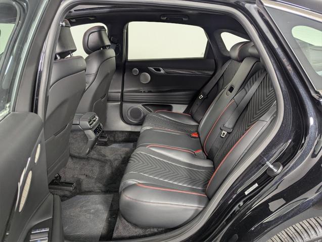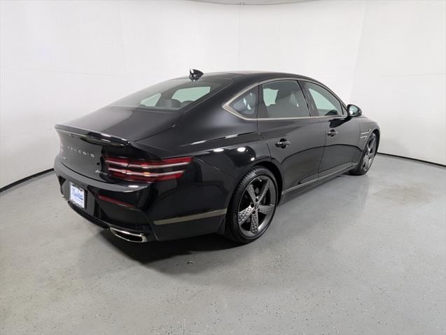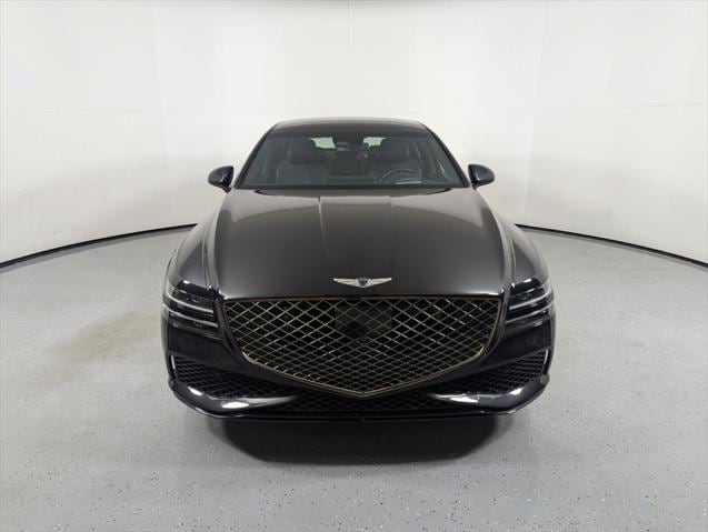 Features: Sport Prestige Package (12.3" 3D Digital Instrument Cluster, 3-Zone Climate Control, Advanced Rear Occupant Alert, Blind-Spot View Monitor, Carbon Fiber Trim, Driver Ergo Motion Seat, Driver Seat Power Bolster & Cushion Extension, Electronically Controlled Suspension, Forward Attention Warning, Front Passenger Seat Walk-In Device, Genesis Digital Key, Head-Up Display, Microfiber Suede Headliner & Pillars, Nappa Leather Seating Surfaces, Power Rear Sunshades, Radio: AM/FM/HD/SiriusXM Lexicon Audio System, Rear Wheel Steering, Remote Smart Parking Assist, Reverse Parking Collision - Avoidance Assist, Surround View Monitor, Wheels: 20"x8.5J Fr & 20"x9.5J Rr Sport Alloy, and Wireless Phone Charger), G80 3.5T, 4D Sedan, 3.5L V6 PDI Turbocharged DOHC 24V LEV3-ULEV70 375hp, 8-Speed Automatic, AWD, Vik Black, Obsidian Black W/Red Leather, 12 Speakers, 4-Wheel Disc Brakes, ABS brakes, Adaptive suspension, Air Conditioning, Alloy wheels, AM/FM radio: SiriusXM, Android Auto & Apple CarPlay, Anti-whiplash front head restraints, Auto High-beam Headlights, Auto tilt-away steering wheel, Auto-dimming door mirrors, Auto-dimming Rear-View mirror, Automatic temperature control, Bumpers: body-color, Compass, Delay-off headlights, Driver door bin, Driver vanity mirror, Dual front impact airbags, Dual front side impact airbags, Electronic Stability Control, Emergency communication system: Genesis Connected Services, Exterior Parking Camera Rear, First Aid Kit, Four wheel independent suspension, Front anti-roll bar, Front Bucket Seats, Front Center Armrest, Front dual zone A/C, Front reading lights, Fully automatic headlights, Garage door transmitter: HomeLink, Heated & Ventilated Front Bucket Seats, Heated door mirrors, Heated front seats, Heated rear seats, Heated steering wheel, Illuminated Door Scuff Plates, Illuminated entry, Knee airbag, Leather Seating Surfaces, Leather steering wheel, Low tire pressure warning, Memory seat, Mudguards, Navigation System, Occupant sensing airbag, Outside temperature display, Overhead airbag, Overhead console, Panic alarm, Passenger door bin, Passenger vanity mirror, Power door mirrors, Power driver seat, Power moonroof, Power passenger seat, Power steering, Power windows, Radio data system, Radio: AM/FM/HD/SiriusXM Audio System, Rain sensing wipers, Rear anti-roll bar, Rear reading lights, Rear seat center armrest, Rear side impact airbag, Rear window defroster, Remote keyless entry, Reversible Cargo Tray, Security system, Speed control, Speed-sensing steering, Speed-Sensitive Wipers, Steering wheel memory, Steering wheel mounted audio controls, Tachometer, Telescoping steering wheel, Tilt steering wheel, Traction control, Trip computer, Turn signal indicator mirrors, Variably intermittent wipers, Ventilated front seats, Wheel Locks, and Wheels: 19"x8.5J Fr & 19"x9.5J Rr Sport Alloy.
