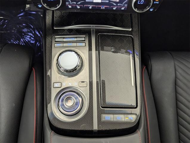 Features: Sport Prestige Package (12.3" 3D Digital Instrument Cluster, 3-Zone Climate Control, Advanced Rear Occupant Alert, Blind-Spot View Monitor, Carbon Fiber Trim, Driver Ergo Motion Seat, Driver Seat Power Bolster & Cushion Extension, Electronically Controlled Suspension, Forward Attention Warning, Front Passenger Seat Walk-In Device, Genesis Digital Key, Head-Up Display, Microfiber Suede Headliner & Pillars, Nappa Leather Seating Surfaces, Option Group 04, Option Group 05, Power Rear Sunshades, Radio: AM/FM/HD/SiriusXM Lexicon Audio System, Rear Wheel Steering, Remote Smart Parking Assist, Reverse Parking Collision - Avoidance Assist, Surround View Monitor, Wheels: 20"x8.5J Fr & 20"x9.5J Rr Sport Alloy, and Wireless Phone Charger), 12 Speakers, 4-Wheel Disc Brakes, ABS brakes, Adaptive suspension, Air Conditioning, Alloy wheels, AM/FM radio: SiriusXM, Android Auto & Apple CarPlay, Anti-whiplash front head restraints, Auto High-beam Headlights, Auto tilt-away steering wheel, Auto-dimming door mirrors, Auto-dimming Rear-View mirror, Automatic temperature control, Bumpers: body-color, Compass, Delay-off headlights, Driver door bin, Driver vanity mirror, Dual front impact airbags, Dual front side impact airbags, Electronic Stability Control, Emergency communication system: Genesis Connected Services, Exterior Parking Camera Rear, First Aid Kit, Four wheel independent suspension, Front anti-roll bar, Front Bucket Seats, Front Center Armrest, Front dual zone A/C, Front reading lights, Fully automatic headlights, Garage door transmitter: HomeLink, Heated & Ventilated Front Bucket Seats, Heated door mirrors, Heated front seats, Heated rear seats, Heated steering wheel, Illuminated entry, Knee airbag, Leather Seating Surfaces, Leather steering wheel, Low tire pressure warning, Memory seat, Navigation System, Occupant sensing airbag, Outside temperature display, Overhead airbag, Overhead console, Panic alarm, Passenger door bin, Passenger vanity mirror, Power door mirrors, Power driver seat, Power moonroof, Power passenger seat, Power steering, Power windows, Radio data system, Radio: AM/FM/HD/SiriusXM Audio System, Rain sensing wipers, Rear anti-roll bar, Rear Bumper Applique, Rear reading lights, Rear seat center armrest, Rear side impact airbag, Rear window defroster, Remote keyless entry, Reversible Cargo Tray, Security system, Speed control, Speed-sensing steering, Speed-Sensitive Wipers, Steering wheel memory, Steering wheel mounted audio controls, Tachometer, Telescoping steering wheel, Tilt steering wheel, Traction control, Trip computer, Turn signal indicator mirrors, Variably intermittent wipers, Ventilated front seats, Wheel Locks, and Wheels: 19"x8.5J Fr & 19"x9.5J Rr Sport Alloy.