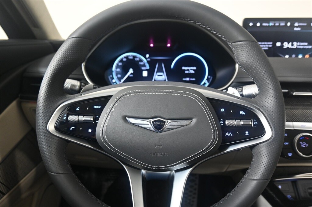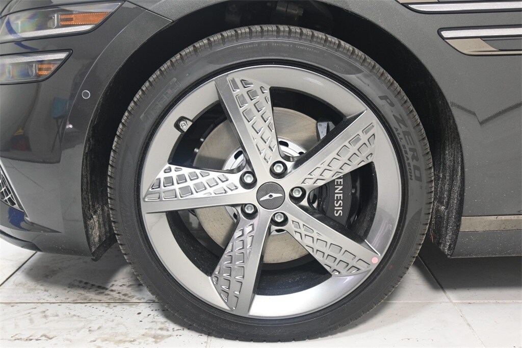Features: Sport Prestige Package (12.3" 3D Digital Instrument Cluster, 3-Zone Climate Control, Advanced Rear Occupant Alert, Blind-Spot View Monitor, Carbon Fiber Trim, Driver Ergo Motion Seat, Driver Seat Power Bolster & Cushion Extension, Electronically Controlled Suspension, Forward Attention Warning, Front Passenger Seat Walk-In Device, Genesis Digital Key, Head-Up Display, Microfiber Suede Headliner & Pillars, Nappa Leather Seating Surfaces, Power Rear Sunshades, Radio: AM/FM/HD/SiriusXM Lexicon Audio System, Rear Wheel Steering, Remote Smart Parking Assist, Reverse Parking Collision - Avoidance Assist, Surround View Monitor, Wheels: 20"x8.5J Fr & 20"x9.5J Rr Sport Alloy, and Wireless Phone Charger), 12 Speakers, 4-Wheel Disc Brakes, ABS brakes, Adaptive suspension, Air Conditioning, Alloy wheels, AM/FM radio: SiriusXM, Android Auto & Apple CarPlay, Anti-whiplash front head restraints, Auto High-beam Headlights, Auto tilt-away steering wheel, Auto-dimming door mirrors, Auto-dimming Rear-View mirror, Automatic temperature control, Bumpers: body-color, Compass, Delay-off headlights, Driver door bin, Driver vanity mirror, Dual front impact airbags, Dual front side impact airbags, Electronic Stability Control, Emergency communication system: Genesis Connected Services, Exterior Parking Camera Rear, First Aid Kit, Four wheel independent suspension, Front anti-roll bar, Front Bucket Seats, Front Center Armrest, Front dual zone A/C, Front reading lights, Fully automatic headlights, Garage door transmitter: HomeLink, Heated & Ventilated Front Bucket Seats, Heated door mirrors, Heated front seats, Heated rear seats, Heated steering wheel, Illuminated entry, Knee airbag, Leather Seating Surfaces, Leather steering wheel, Low tire pressure warning, Memory seat, Navigation System, Occupant sensing airbag, Outside temperature display, Overhead airbag, Overhead console, Panic alarm, Passenger door bin, Passenger vanity mirror, Power door mirrors, Power driver seat, Power moonroof, Power passenger seat, Power steering, Power windows, Radio data system, Radio: AM/FM/HD/SiriusXM Audio System, Rain sensing wipers, Rear anti-roll bar, Rear Bumper Applique, Rear reading lights, Rear seat center armrest, Rear side impact airbag, Rear window defroster, Remote keyless entry, Roadside Assistance Kit, Security system, Speed control, Speed-sensing steering, Speed-Sensitive Wipers, Steering wheel memory, Steering wheel mounted audio controls, Tachometer, Telescoping steering wheel, Tilt steering wheel, Traction control, Trip computer, Turn signal indicator mirrors, Variably intermittent wipers, Ventilated front seats, and Wheels: 19"x8.5J Fr & 19"x9.5J Rr Sport Alloy.