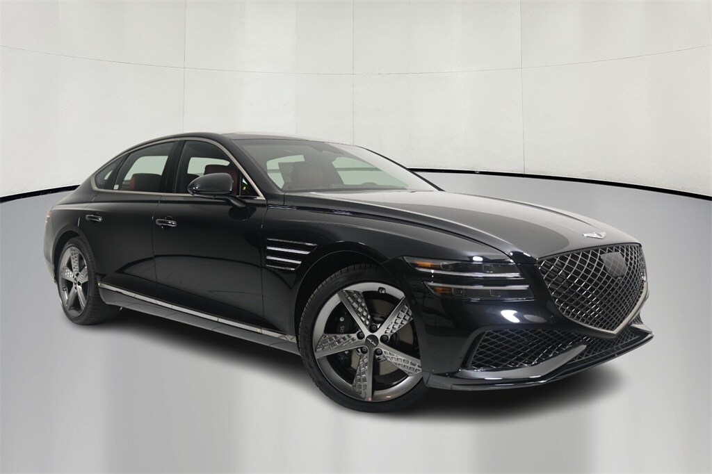 Features: Sport Prestige Package (12.3" 3D Digital Instrument Cluster, 3-Zone Climate Control, Advanced Rear Occupant Alert, Blind-Spot View Monitor, Carbon Fiber Trim, Driver Ergo Motion Seat, Driver Seat Power Bolster & Cushion Extension, Electronically Controlled Suspension, Forward Attention Warning, Front Passenger Seat Walk-In Device, Genesis Digital Key, Head-Up Display, Microfiber Suede Headliner & Pillars, Nappa Leather Seating Surfaces, Power Rear Sunshades, Radio: AM/FM/HD/SiriusXM Lexicon Audio System, Rear Wheel Steering, Remote Smart Parking Assist, Reverse Parking Collision - Avoidance Assist, Surround View Monitor, Wheels: 20"x8.5J Fr & 20"x9.5J Rr Sport Alloy, and Wireless Phone Charger), 12 Speakers, 4-Wheel Disc Brakes, ABS brakes, Adaptive suspension, Air Conditioning, Alloy wheels, AM/FM radio: SiriusXM, Android Auto & Apple CarPlay, Anti-whiplash front head restraints, Auto High-beam Headlights, Auto tilt-away steering wheel, Auto-dimming door mirrors, Auto-dimming Rear-View mirror, Automatic temperature control, Bumpers: body-color, Compass, Delay-off headlights, Driver door bin, Driver vanity mirror, Dual front impact airbags, Dual front side impact airbags, Electronic Stability Control, Emergency communication system: Genesis Connected Services, Exterior Parking Camera Rear, First Aid Kit, Four wheel independent suspension, Front anti-roll bar, Front Bucket Seats, Front Center Armrest, Front dual zone A/C, Front reading lights, Fully automatic headlights, Garage door transmitter: HomeLink, Heated & Ventilated Front Bucket Seats, Heated door mirrors, Heated front seats, Heated rear seats, Heated steering wheel, Illuminated entry, Knee airbag, Leather Seating Surfaces, Leather steering wheel, Low tire pressure warning, Memory seat, Navigation System, Occupant sensing airbag, Outside temperature display, Overhead airbag, Overhead console, Panic alarm, Passenger door bin, Passenger vanity mirror, Power door mirrors, Power driver seat, Power moonroof, Power passenger seat, Power steering, Power windows, Radio data system, Radio: AM/FM/HD/SiriusXM Audio System, Rain sensing wipers, Rear anti-roll bar, Rear reading lights, Rear seat center armrest, Rear side impact airbag, Rear window defroster, Remote keyless entry, Roadside Assistance Kit, Security system, Speed control, Speed-sensing steering, Speed-Sensitive Wipers, Steering wheel memory, Steering wheel mounted audio controls, Tachometer, Telescoping steering wheel, Tilt steering wheel, Traction control, Trip computer, Turn signal indicator mirrors, Variably intermittent wipers, Ventilated front seats, and Wheels: 19"x8.5J Fr & 19"x9.5J Rr Sport Alloy.