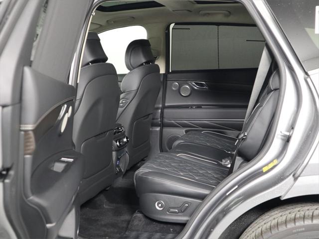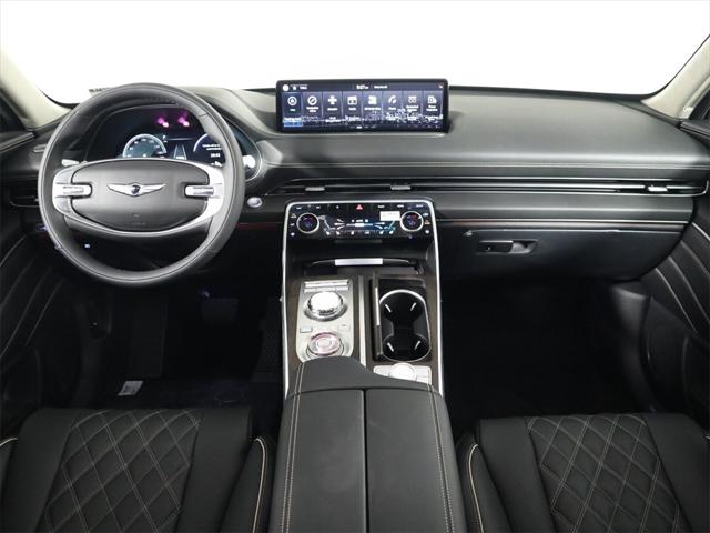 Features: Prestige Package (3-Zone Climate Control, Blind-Spot View Monitor, Ergo Motion Driver Seat, Head-Up Display, Heated 2nd Row Seats, Option Group 06, Power Cushion Extension & Bolster, Radio: AM/FM/SiriusXM/HD Lexicon Prem Audio System, Remote Smart Parking Assist, Reverse Parking Collision-Avoidance Assist, and Surround View Monitor), GV80 3.5T, 4D Sport Utility, 3.5L DOHC, 8-Speed Automatic, AWD, Savile Silver, Black/Black Leather, 12 Speakers, 12.3" 3D Digital Instrument Cluster, 2nd Row Vanity Mirrors, 3.909 Axle Ratio, 4-Wheel Disc Brakes, ABS brakes, Active Noise Control, Adaptive suspension, Air Conditioning, Alloy wheels, AM/FM radio: SiriusXM, Android Auto & Apple CarPlay, Anti-whiplash front head restraints, Auto High-beam Headlights, Auto tilt-away steering wheel, Auto-dimming door mirrors, Auto-dimming Rear-View mirror, Automatic temperature control, Brake assist, Bumpers: body-color, Compass, Delay-off headlights, Driver door bin, Driver vanity mirror, Dual front impact airbags, Dual front side impact airbags, Electronic Limited Slip Differential, Electronic Stability Control, Emergency communication system: Genesis Connected Services, Exterior Parking Camera Rear, First Aid Kit, Forward Attention Warning, Four wheel independent suspension, Front anti-roll bar, Front Bucket Seats, Front Center Armrest, Front dual zone A/C, Front reading lights, Fully automatic headlights, Garage door transmitter: HomeLink, Genuine wood console insert, Genuine wood dashboard insert, Genuine wood door panel insert, Heated & Ventilated Front Bucket Seats, Heated door mirrors, Heated front seats, Heated steering wheel, Illuminated entry, Knee airbag, Leather steering wheel, Leatherette Seating Surfaces, Low tire pressure warning, Memory seat, Nappa Leather Seating Surfaces, Navigation System, Occupant sensing airbag, Outside temperature display, Overhead airbag, Overhead console, Panic alarm, Passenger door bin, Passenger vanity mirror, Power 2nd Row Outboard Seats, Power Door Closure, Power door mirrors, Power driver seat, Power Liftgate, Power moonroof, Power passenger seat, Power Rear Door Shades, Power steering, Power windows, Radio data system, Radio:14.5" Navigation System w/AM/FM/HD Radio, Rain sensing wipers, Rear air conditioning, Rear anti-roll bar, Rear Bumper Applique, Rear reading lights, Rear seat center armrest, Rear side impact airbag, Rear window defroster, Rear window wiper, Remote keyless entry, Security system, Speed control, Speed-sensing steering, Speed-Sensitive Wipers, Split folding rear seat, Spoiler, Steering wheel memory, Steering wheel mounted audio controls, Suede Headliner, Tachometer, Telescoping steering wheel, Tilt steering wheel, Tow Hitch, Traction control, Trip computer, Turn signal indicator mirrors, Variably intermittent wipers, Ventilated 2nd Row Outboard Seats, Ventilated front seats, Wheels: 20" x 8.5J Medium Metallic Gray Alloy, and Wheels: 22" x 9.5J Alloy.