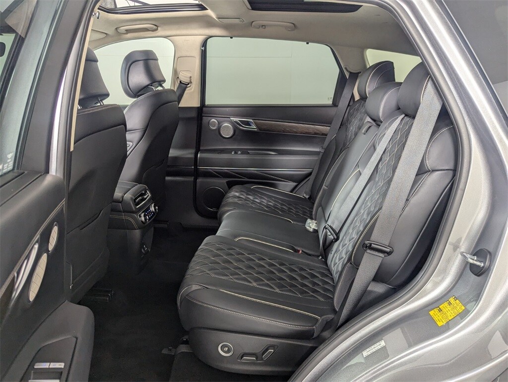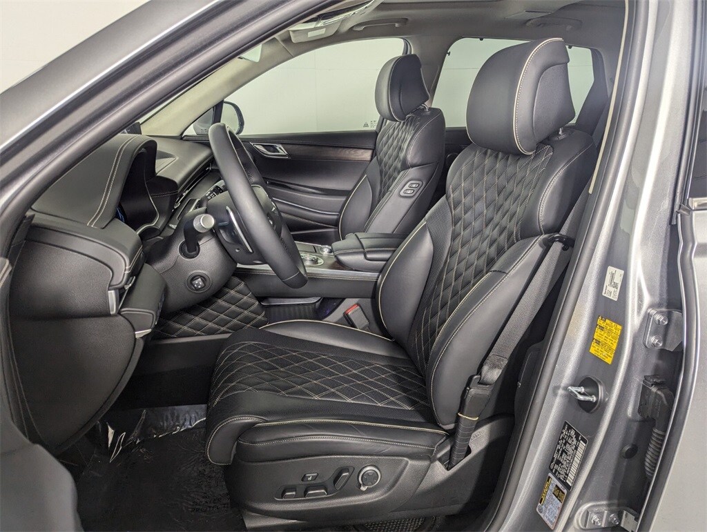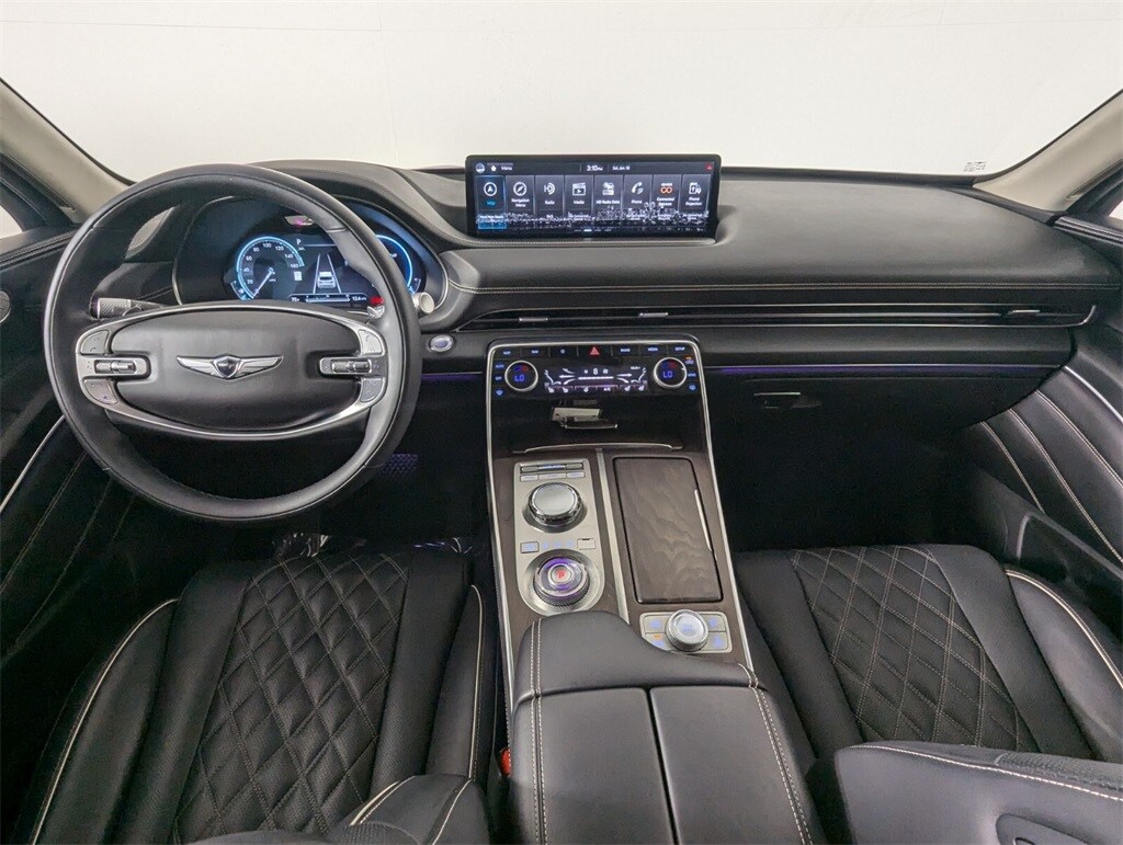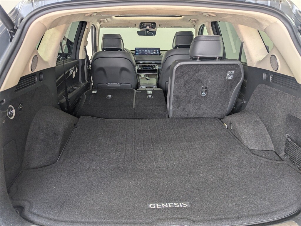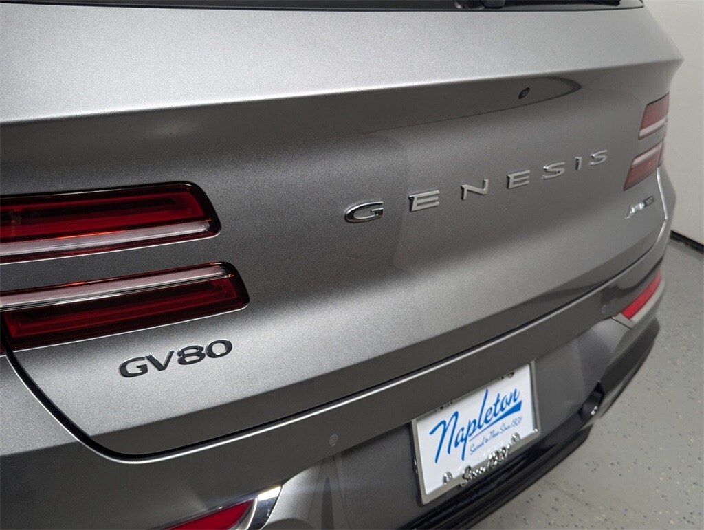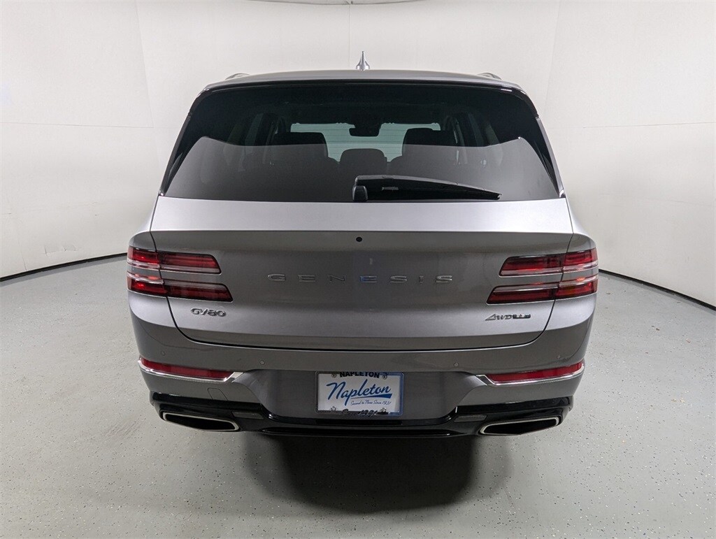 Features: Prestige Package (3-Zone Climate Control, Blind-Spot View Monitor, Ergo Motion Driver Seat, Head-Up Display, Heated 2nd Row Seats, Option Group 06, Power Cushion Extension & Bolster, Radio: AM/FM/SiriusXM/HD Lexicon Prem Audio System, Remote Smart Parking Assist, Reverse Parking Collision-Avoidance Assist, and Surround View Monitor), GV80 3.5T, 4D Sport Utility, 3.5L DOHC, 8-Speed Automatic, AWD, Savile Silver, Black/Black Leather, 12 Speakers, 12.3" 3D Digital Instrument Cluster, 2nd Row Vanity Mirrors, 3.909 Axle Ratio, 4-Wheel Disc Brakes, ABS brakes, Active Noise Control, Adaptive suspension, Air Conditioning, Alloy wheels, AM/FM radio: SiriusXM, Android Auto & Apple CarPlay, Anti-whiplash front head restraints, Auto High-beam Headlights, Auto tilt-away steering wheel, Auto-dimming door mirrors, Auto-dimming Rear-View mirror, Automatic temperature control, Brake assist, Bumpers: body-color, Compass, Delay-off headlights, Driver door bin, Driver vanity mirror, Dual front impact airbags, Dual front side impact airbags, Electronic Limited Slip Differential, Electronic Stability Control, Emergency communication system: Genesis Connected Services, Exterior Parking Camera Rear, Forward Attention Warning, Four wheel independent suspension, Front anti-roll bar, Front Bucket Seats, Front Center Armrest, Front dual zone A/C, Front reading lights, Fully automatic headlights, Garage door transmitter: HomeLink, Genuine wood console insert, Genuine wood dashboard insert, Genuine wood door panel insert, Heated & Ventilated Front Bucket Seats, Heated door mirrors, Heated front seats, Heated steering wheel, Illuminated entry, Knee airbag, Leather steering wheel, Leatherette Seating Surfaces, Low tire pressure warning, Memory seat, Mudguards, Nappa Leather Seating Surfaces, Navigation System, Occupant sensing airbag, Outside temperature display, Overhead airbag, Overhead console, Panic alarm, Passenger door bin, Passenger vanity mirror, Power 2nd Row Outboard Seats, Power Door Closure, Power door mirrors, Power driver seat, Power Liftgate, Power moonroof, Power passenger seat, Power Rear Door Shades, Power steering, Power windows, Radio data system, Radio:14.5" Navigation System w/AM/FM/HD Radio, Rain sensing wipers, Rear air conditioning, Rear anti-roll bar, Rear reading lights, Rear seat center armrest, Rear side impact airbag, Rear window defroster, Rear window wiper, Remote keyless entry, Reversible Cargo Tray, Security system, Speed control, Speed-sensing steering, Speed-Sensitive Wipers, Split folding rear seat, Spoiler, Steering wheel memory, Steering wheel mounted audio controls, Suede Headliner, Tachometer, Telescoping steering wheel, Tilt steering wheel, Traction control, Trip computer, Turn signal indicator mirrors, Variably intermittent wipers, Ventilated 2nd Row Outboard Seats, Ventilated front seats, Wheel Locks, Wheels: 20" x 8.5J Medium Metallic Gray Alloy, and Wheels: 22" x 9.5J Alloy.