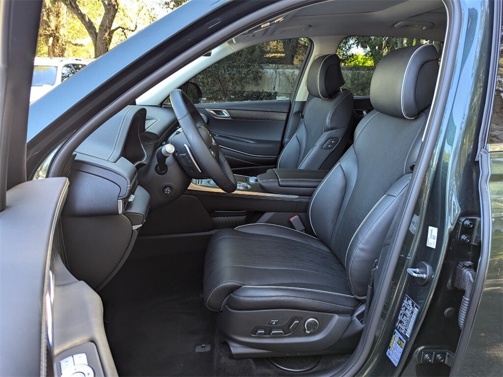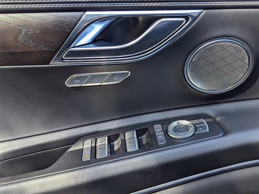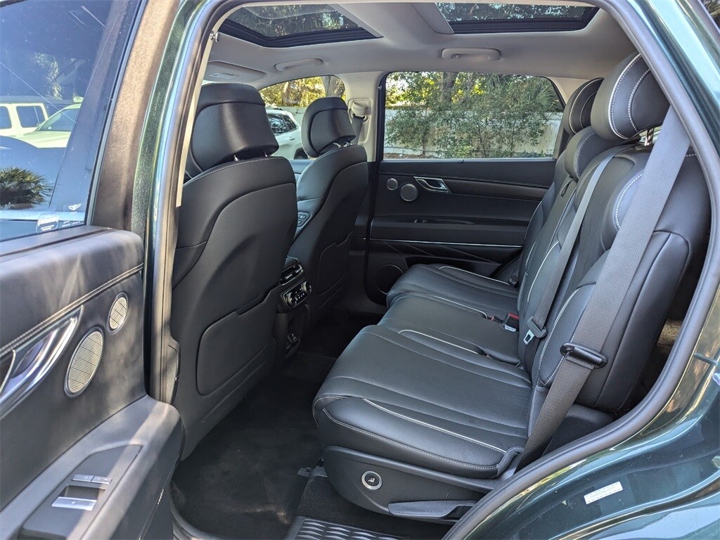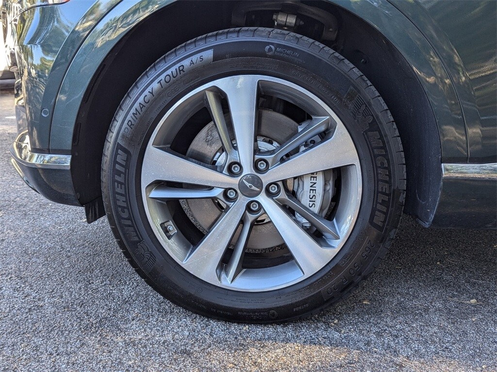 Features: Advanced Package (3-Zone Climate Control, Blind-Spot View Monitor, Ergo Motion Driver Seat, Head-Up Display, Heated 2nd Row Seats, Option Group 06, Power Cushion Extension & Bolster, Radio: AM/FM/SiriusXM/HD Lexicon Prem Audio System, Remote Smart Parking Assist, Reverse Parking Collision-Avoidance Assist, and Surround View Monitor), 12 Speakers, 3.909 Axle Ratio, 4-Wheel Disc Brakes, ABS brakes, Adaptive suspension, Air Conditioning, Alloy wheels, AM/FM radio: SiriusXM, Android Auto & Apple CarPlay, Anti-whiplash front head restraints, Auto High-beam Headlights, Auto tilt-away steering wheel, Auto-dimming door mirrors, Auto-dimming Rear-View mirror, Automatic temperature control, Brake assist, Bumpers: body-color, Compass, Delay-off headlights, Driver door bin, Driver vanity mirror, Dual front impact airbags, Dual front side impact airbags, Electronic Stability Control, Emergency communication system: Genesis Connected Services, Exterior Parking Camera Rear, First Aid Kit, Four wheel independent suspension, Front anti-roll bar, Front Bucket Seats, Front Center Armrest, Front dual zone A/C, Front reading lights, Fully automatic headlights, Garage door transmitter: HomeLink, Genuine wood console insert, Genuine wood dashboard insert, Genuine wood door panel insert, Heated & Ventilated Front Bucket Seats, Heated door mirrors, Heated front seats, Heated steering wheel, Illuminated entry, Knee airbag, Leather Seating Surfaces, Leather steering wheel, Leatherette Seating Surfaces, Low tire pressure warning, Memory seat, Navigation System, Occupant sensing airbag, Outside temperature display, Overhead airbag, Overhead console, Panic alarm, Passenger door bin, Passenger vanity mirror, Power door mirrors, Power driver seat, Power Folding 3rd Row Seat, Power Liftgate, Power moonroof, Power passenger seat, Power steering, Power windows, Radio data system, Radio:14.5" Navigation System w/AM/FM/HD Radio, Rain sensing wipers, Rear air conditioning, Rear anti-roll bar, Rear reading lights, Rear seat center armrest, Rear side impact airbag, Rear window defroster, Rear window wiper, Remote keyless entry, Security system, Speed control, Speed-sensing steering, Speed-Sensitive Wipers, Split folding rear seat, Spoiler, Steering wheel memory, Steering wheel mounted audio controls, Tachometer, Telescoping steering wheel, Tilt steering wheel, Traction control, Trip computer, Turn signal indicator mirrors, Variably intermittent wipers, Ventilated front seats, and Wheels: 20" x 8.5J Medium Metallic Gray Alloy.