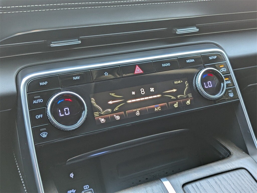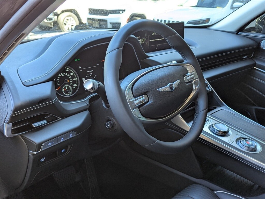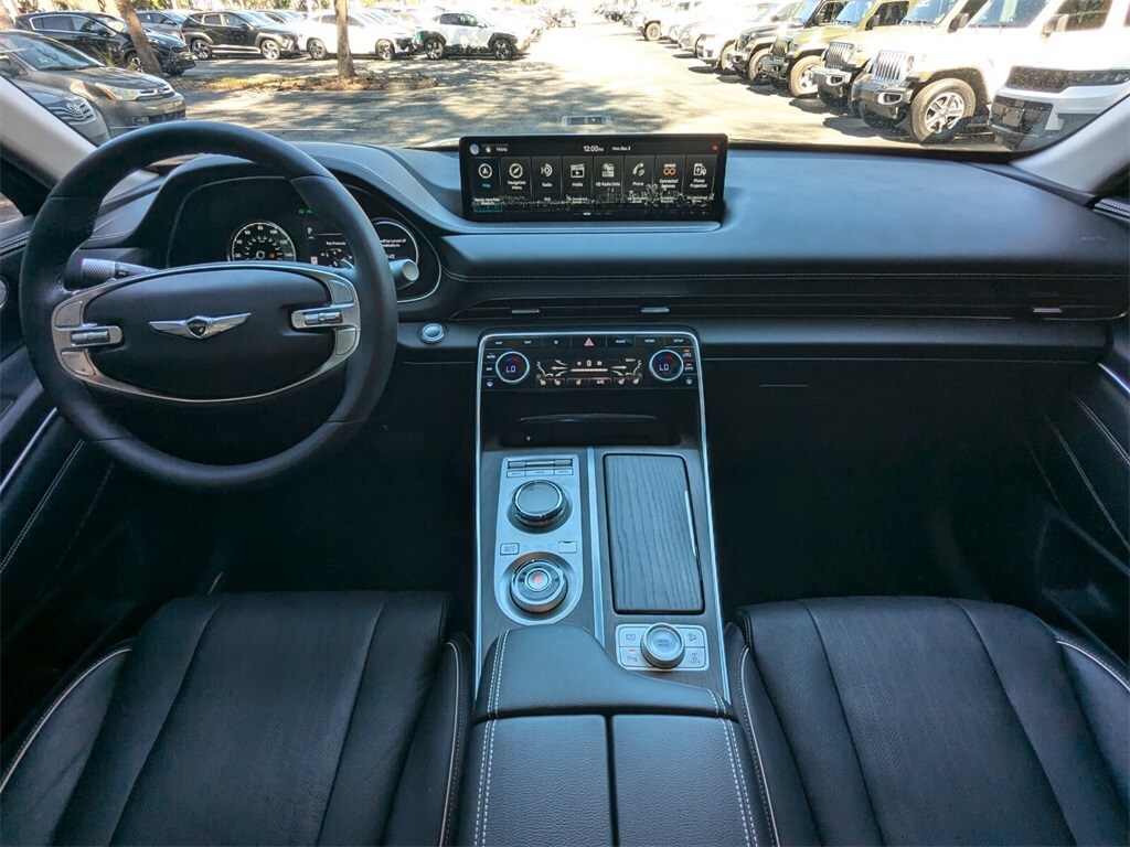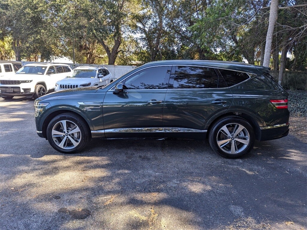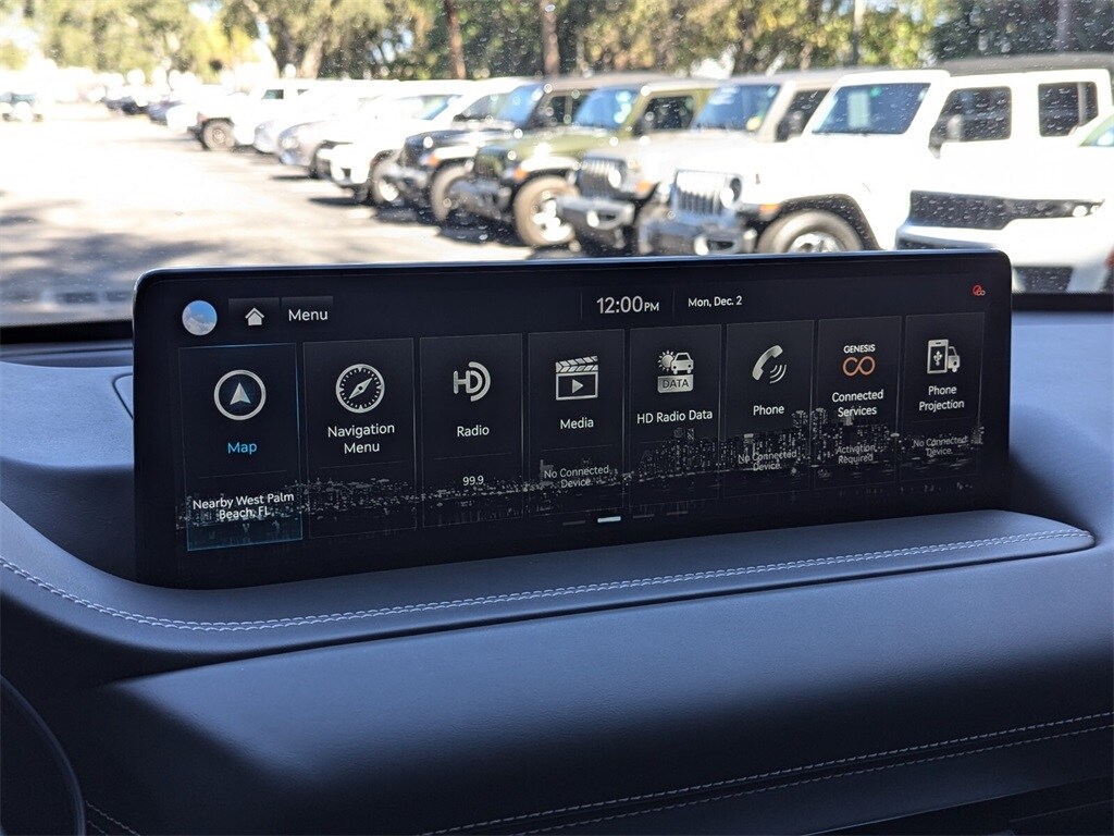 Features: Advanced Package (3-Zone Climate Control, Blind-Spot View Monitor, Ergo Motion Driver Seat, Head-Up Display, Heated 2nd Row Seats, Option Group 06, Power Cushion Extension & Bolster, Radio: AM/FM/SiriusXM/HD Lexicon Prem Audio System, Remote Smart Parking Assist, Reverse Parking Collision-Avoidance Assist, and Surround View Monitor), 12 Speakers, 3.909 Axle Ratio, 4-Wheel Disc Brakes, ABS brakes, Adaptive suspension, Air Conditioning, Alloy wheels, AM/FM radio: SiriusXM, Android Auto & Apple CarPlay, Anti-whiplash front head restraints, Auto High-beam Headlights, Auto tilt-away steering wheel, Auto-dimming door mirrors, Auto-dimming Rear-View mirror, Automatic temperature control, Brake assist, Bumpers: body-color, Compass, Delay-off headlights, Driver door bin, Driver vanity mirror, Dual front impact airbags, Dual front side impact airbags, Electronic Stability Control, Emergency communication system: Genesis Connected Services, Exterior Parking Camera Rear, First Aid Kit, Four wheel independent suspension, Front anti-roll bar, Front Bucket Seats, Front Center Armrest, Front dual zone A/C, Front reading lights, Fully automatic headlights, Garage door transmitter: HomeLink, Genuine wood console insert, Genuine wood dashboard insert, Genuine wood door panel insert, Heated & Ventilated Front Bucket Seats, Heated door mirrors, Heated front seats, Heated steering wheel, Illuminated entry, Knee airbag, Leather Seating Surfaces, Leather steering wheel, Leatherette Seating Surfaces, Low tire pressure warning, Memory seat, Navigation System, Occupant sensing airbag, Outside temperature display, Overhead airbag, Overhead console, Panic alarm, Passenger door bin, Passenger vanity mirror, Power door mirrors, Power driver seat, Power Folding 3rd Row Seat, Power Liftgate, Power moonroof, Power passenger seat, Power steering, Power windows, Radio data system, Radio:14.5" Navigation System w/AM/FM/HD Radio, Rain sensing wipers, Rear air conditioning, Rear anti-roll bar, Rear reading lights, Rear seat center armrest, Rear side impact airbag, Rear window defroster, Rear window wiper, Remote keyless entry, Security system, Speed control, Speed-sensing steering, Speed-Sensitive Wipers, Split folding rear seat, Spoiler, Steering wheel memory, Steering wheel mounted audio controls, Tachometer, Telescoping steering wheel, Tilt steering wheel, Traction control, Trip computer, Turn signal indicator mirrors, Variably intermittent wipers, Ventilated front seats, and Wheels: 20" x 8.5J Medium Metallic Gray Alloy.