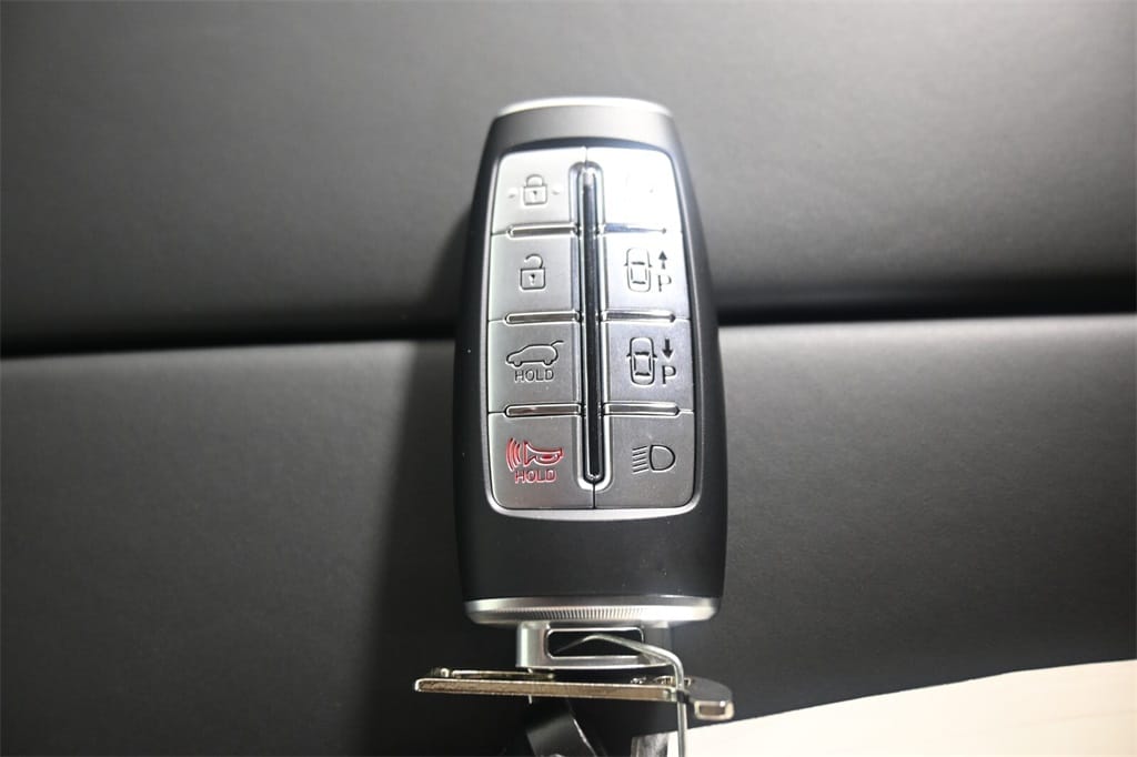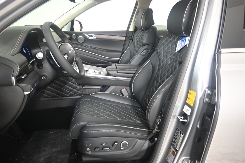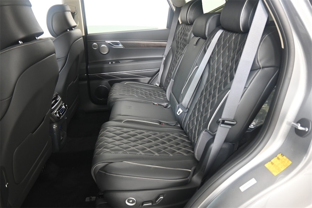 Features: Prestige Package (3-Zone Climate Control, Blind-Spot View Monitor, Ergo Motion Driver Seat, Head-Up Display, Heated 2nd Row Seats, Option Group 06, Power Cushion Extension & Bolster, Radio: AM/FM/SiriusXM/HD Lexicon Prem Audio System, Remote Smart Parking Assist, Reverse Parking Collision-Avoidance Assist, and Surround View Monitor), 12 Speakers, 12.3" 3D Digital Instrument Cluster, 2nd Row Vanity Mirrors, 3.909 Axle Ratio, 4-Wheel Disc Brakes, ABS brakes, Active Noise Control, Adaptive suspension, Air Conditioning, Alloy wheels, AM/FM radio: SiriusXM, Android Auto & Apple CarPlay, Anti-whiplash front head restraints, Auto High-beam Headlights, Auto tilt-away steering wheel, Auto-dimming door mirrors, Auto-dimming Rear-View mirror, Automatic temperature control, Brake assist, Bumpers: body-color, Compass, Delay-off headlights, Driver door bin, Driver vanity mirror, Dual front impact airbags, Dual front side impact airbags, Electronic Limited Slip Differential, Electronic Stability Control, Emergency communication system: Genesis Connected Services, Exterior Parking Camera Rear, First Aid Kit, Forward Attention Warning, Four wheel independent suspension, Front anti-roll bar, Front Bucket Seats, Front Center Armrest, Front dual zone A/C, Front reading lights, Fully automatic headlights, Garage door transmitter: HomeLink, Genuine wood console insert, Genuine wood dashboard insert, Genuine wood door panel insert, Heated & Ventilated Front Bucket Seats, Heated door mirrors, Heated front seats, Heated steering wheel, Illuminated entry, Knee airbag, Leather Seating Surfaces, Leather steering wheel, Leatherette Seating Surfaces, Low tire pressure warning, Memory seat, Nappa Leather Seating Surfaces, Navigation System, Occupant sensing airbag, Outside temperature display, Overhead airbag, Overhead console, Panic alarm, Passenger door bin, Passenger vanity mirror, Power 2nd Row Outboard Seats, Power Door Closure, Power door mirrors, Power driver seat, Power Folding 3rd Row Seat, Power Liftgate, Power moonroof, Power passenger seat, Power Rear Door Shades, Power steering, Power windows, Radio data system, Radio:14.5" Navigation System w/AM/FM/HD Radio, Rain sensing wipers, Rear air conditioning, Rear anti-roll bar, Rear Bumper Applique, Rear reading lights, Rear seat center armrest, Rear side impact airbag, Rear window defroster, Rear window wiper, Remote keyless entry, Seatback Cargo Mat, Security system, Speed control, Speed-sensing steering, Speed-Sensitive Wipers, Split folding rear seat, Spoiler, Steering wheel memory, Steering wheel mounted audio controls, Suede Headliner, Tachometer, Telescoping steering wheel, Tilt steering wheel, Tow Hitch, Traction control, Trip computer, Turn signal indicator mirrors, Variably intermittent wipers, Ventilated 2nd Row Outboard Seats, Ventilated front seats, Wheels: 20" x 8.5J Medium Metallic Gray Alloy, and Wheels: 22" x 9.5J Alloy.