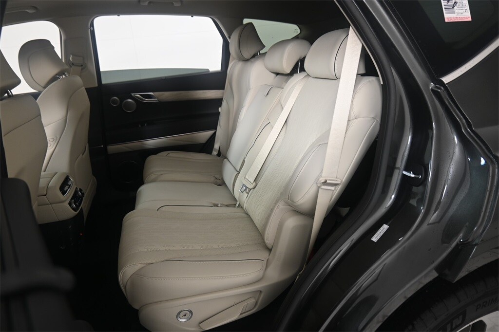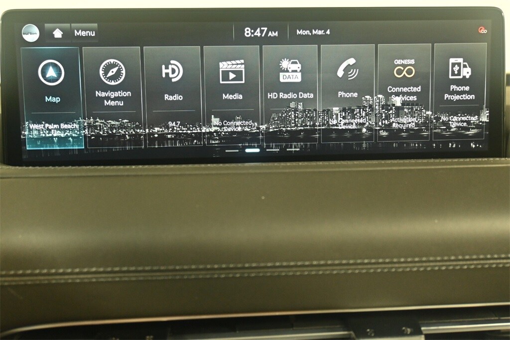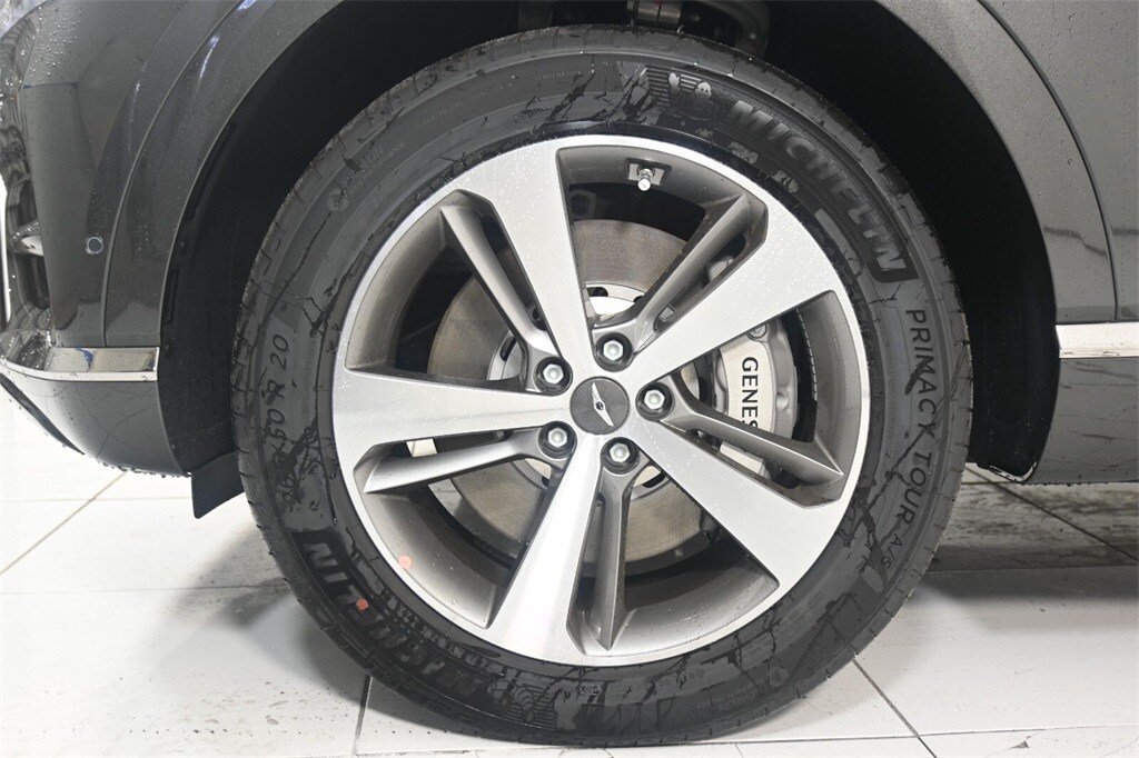Features: Advanced Package (3-Zone Climate Control, Blind-Spot View Monitor, Ergo Motion Driver Seat, Head-Up Display, Heated 2nd Row Seats, Option Group 06, Power Cushion Extension & Bolster, Radio: AM/FM/SiriusXM/HD Lexicon Prem Audio System, Remote Smart Parking Assist, Reverse Parking Collision-Avoidance Assist, and Surround View Monitor), 12 Speakers, 3.909 Axle Ratio, 4-Wheel Disc Brakes, ABS brakes, Adaptive suspension, Air Conditioning, Alloy wheels, AM/FM radio: SiriusXM, Android Auto & Apple CarPlay, Anti-whiplash front head restraints, Auto High-beam Headlights, Auto tilt-away steering wheel, Auto-dimming door mirrors, Auto-dimming Rear-View mirror, Automatic temperature control, Brake assist, Bumpers: body-color, Compass, Delay-off headlights, Driver door bin, Driver vanity mirror, Dual front impact airbags, Dual front side impact airbags, Electronic Stability Control, Emergency communication system: Genesis Connected Services, Exterior Parking Camera Rear, First Aid Kit, Four wheel independent suspension, Front anti-roll bar, Front Bucket Seats, Front Center Armrest, Front dual zone A/C, Front reading lights, Fully automatic headlights, Garage door transmitter: HomeLink, Genuine wood console insert, Genuine wood dashboard insert, Genuine wood door panel insert, Heated & Ventilated Front Bucket Seats, Heated door mirrors, Heated front seats, Heated steering wheel, Illuminated entry, Knee airbag, Leather Seating Surfaces, Leather steering wheel, Leatherette Seating Surfaces, Low tire pressure warning, Memory seat, Nappa Leather Seating Surfaces, Navigation System, Occupant sensing airbag, Outside temperature display, Overhead airbag, Overhead console, Panic alarm, Passenger door bin, Passenger vanity mirror, Power door mirrors, Power driver seat, Power Folding 3rd Row Seat, Power Liftgate, Power moonroof, Power passenger seat, Power steering, Power windows, Radio data system, Radio:14.5" Navigation System w/AM/FM/HD Radio, Rain sensing wipers, Rear air conditioning, Rear anti-roll bar, Rear reading lights, Rear seat center armrest, Rear side impact airbag, Rear window defroster, Rear window wiper, Remote keyless entry, Security system, Speed control, Speed-sensing steering, Speed-Sensitive Wipers, Split folding rear seat, Spoiler, Steering wheel memory, Steering wheel mounted audio controls, Tachometer, Telescoping steering wheel, Tilt steering wheel, Tow Hitch, Traction control, Trip computer, Turn signal indicator mirrors, Variably intermittent wipers, Ventilated front seats, and Wheels: 20" x 8.5J Medium Metallic Gray Alloy.