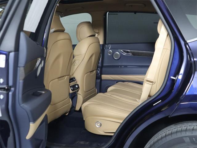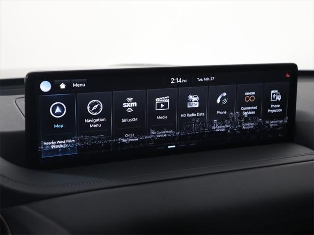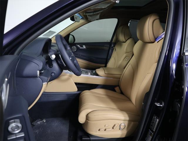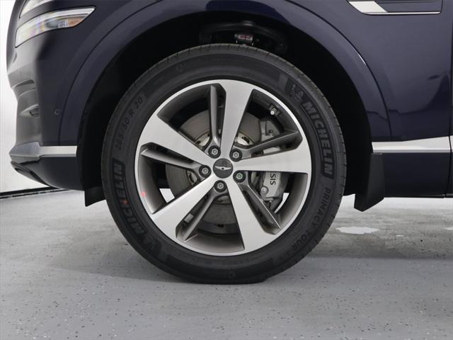 Features: Advanced Package (3-Zone Climate Control, Blind-Spot View Monitor, Ergo Motion Driver Seat, Head-Up Display, Heated 2nd Row Seats, Option Group 06, Power Cushion Extension & Bolster, Radio: AM/FM/SiriusXM/HD Lexicon Prem Audio System, Remote Smart Parking Assist, Reverse Parking Collision-Avoidance Assist, and Surround View Monitor), GV80 3.5T, 4D Sport Utility, 3.5L DOHC, 8-Speed Automatic, AWD, Capri Blue, Ultramarine Blue/Dune Leather, 12 Speakers, 3.909 Axle Ratio, 4-Wheel Disc Brakes, ABS brakes, Adaptive suspension, Air Conditioning, Alloy wheels, AM/FM radio: SiriusXM, Android Auto & Apple CarPlay, Anti-whiplash front head restraints, Auto High-beam Headlights, Auto tilt-away steering wheel, Auto-dimming door mirrors, Auto-dimming Rear-View mirror, Automatic temperature control, Brake assist, Bumpers: body-color, Compass, Delay-off headlights, Driver door bin, Driver vanity mirror, Dual front impact airbags, Dual front side impact airbags, Electronic Stability Control, Emergency communication system: Genesis Connected Services, Exterior Parking Camera Rear, First Aid Kit, Four wheel independent suspension, Front anti-roll bar, Front Bucket Seats, Front Center Armrest, Front dual zone A/C, Front reading lights, Fully automatic headlights, Garage door transmitter: HomeLink, Genuine wood console insert, Genuine wood dashboard insert, Genuine wood door panel insert, Heated & Ventilated Front Bucket Seats, Heated door mirrors, Heated front seats, Heated steering wheel, Illuminated entry, Knee airbag, Leather steering wheel, Leatherette Seating Surfaces, Low tire pressure warning, Memory seat, Mudguards, Navigation System, Occupant sensing airbag, Outside temperature display, Overhead airbag, Overhead console, Panic alarm, Passenger door bin, Passenger vanity mirror, Power door mirrors, Power driver seat, Power Liftgate, Power moonroof, Power passenger seat, Power steering, Power windows, Radio data system, Radio:14.5" Navigation System w/AM/FM/HD Radio, Rain sensing wipers, Rear air conditioning, Rear anti-roll bar, Rear Bumper Applique, Rear reading lights, Rear seat center armrest, Rear side impact airbag, Rear window defroster, Rear window wiper, Remote keyless entry, Roadside Assistance Kit, Seatback Cargo Mat, Security system, Speed control, Speed-sensing steering, Speed-Sensitive Wipers, Split folding rear seat, Spoiler, Steering wheel memory, Steering wheel mounted audio controls, Tachometer, Telescoping steering wheel, Tilt steering wheel, Traction control, Trip computer, Turn signal indicator mirrors, Variably intermittent wipers, Ventilated front seats, and Wheels: 20" x 8.5J Medium Metallic Gray Alloy.