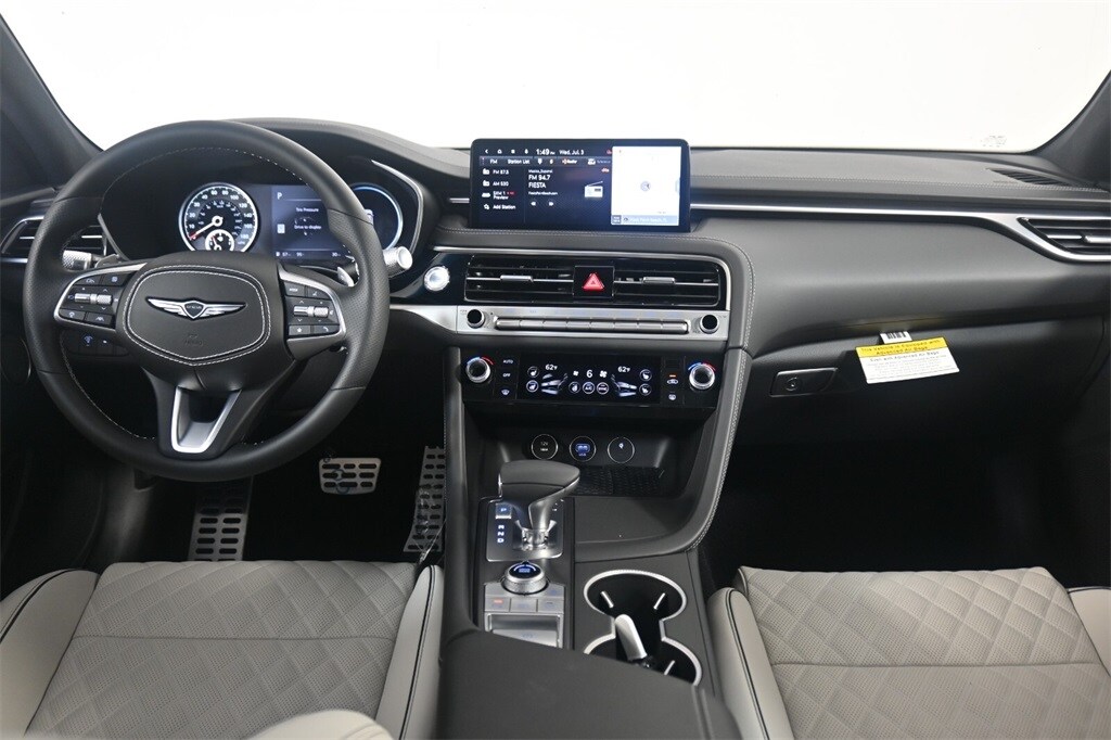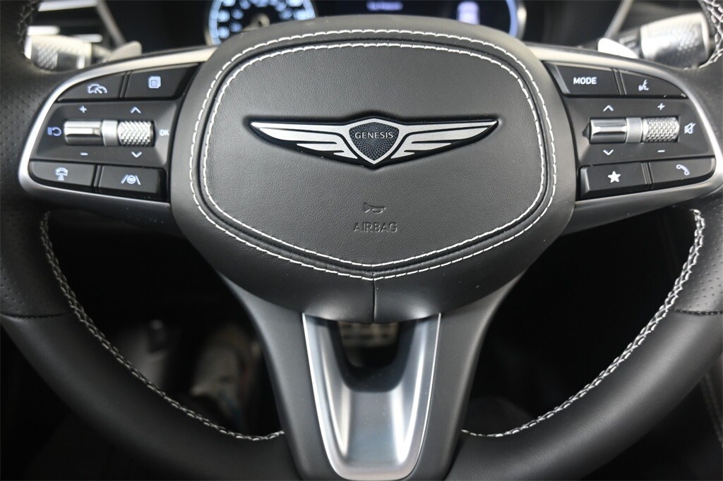 Features: Sport Prestige Package, 15 Speakers, 4-Wheel Disc Brakes, ABS brakes, Air Conditioning, Alloy wheels, AM/FM radio: SiriusXM, Android Auto & Apple CarPlay, Anti-whiplash front head restraints, Auto High-beam Headlights, Auto-dimming door mirrors, Auto-dimming Rear-View mirror, Automatic temperature control, Brake assist, Bumpers: body-color, Delay-off headlights, Driver door bin, Driver vanity mirror, Dual front impact airbags, Dual front side impact airbags, Electronic Stability Control, Emergency communication system: Genesis Connected Services, Exterior Parking Camera Rear, First Aid Kit, Four wheel independent suspension, Front anti-roll bar, Front Bucket Seats, Front Center Armrest, Front dual zone A/C, Front reading lights, Fully automatic headlights, Garage door transmitter: HomeLink, Heated door mirrors, Heated front seats, Htd & Ventilated Multi-Adjustable Fr Bucket Seats, Illuminated entry, Knee airbag, Leather Seating Surfaces, Low tire pressure warning, Memory seat, Mudguards, Navigation System, Occupant sensing airbag, Outside temperature display, Overhead airbag, Overhead console, Panic alarm, Passenger door bin, Passenger vanity mirror, Power door mirrors, Power driver seat, Power moonroof, Power passenger seat, Power steering, Power windows, Radio: AM/FM/SiriusXM/HD Lexicon Prem Audio System, Rain sensing wipers, Rear anti-roll bar, Rear reading lights, Rear seat center armrest, Rear side impact airbag, Rear window defroster, Remote keyless entry, Reversible Cargo Tray, Security system, Speed control, Speed-sensing steering, Speed-Sensitive Wipers, Split folding rear seat, Steering wheel memory, Steering wheel mounted audio controls, Tachometer, Telescoping steering wheel, Traction control, Trip computer, Turn signal indicator mirrors, Variably intermittent wipers, Ventilated front seats, and Wheels: 19" x 8.0J Fr & 19" x 8.5J Rr Sport Alloy.