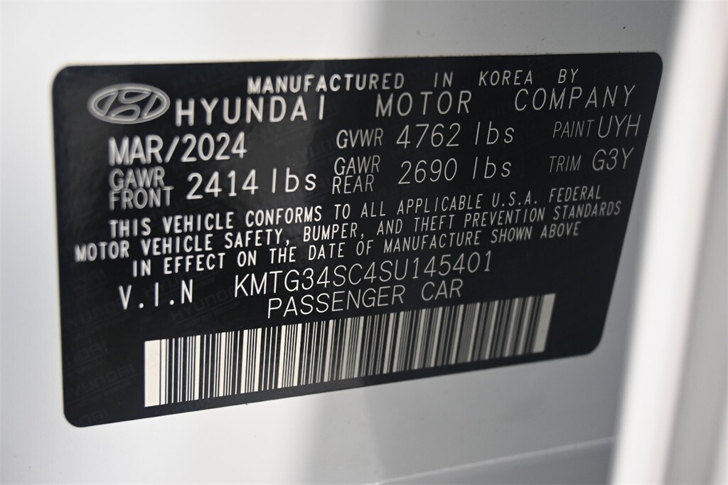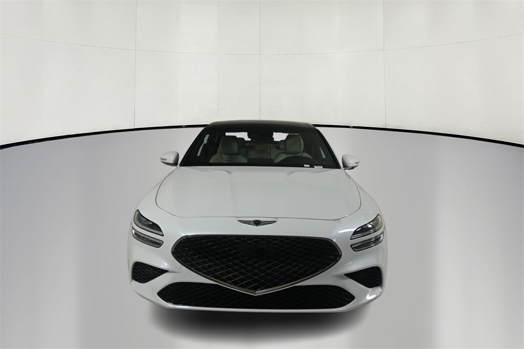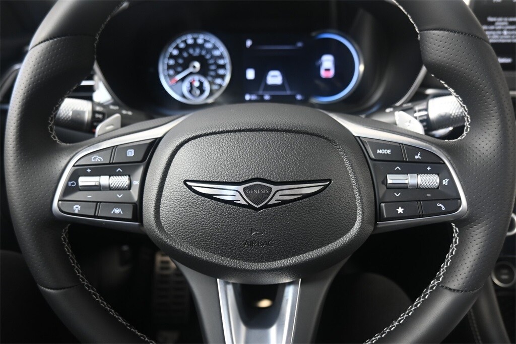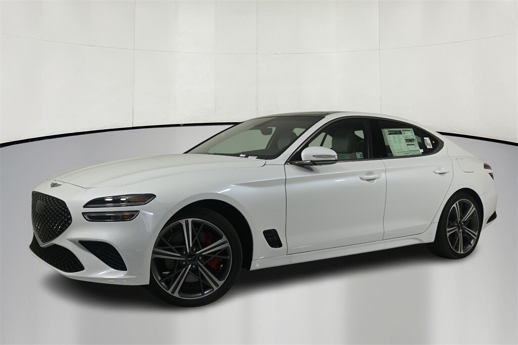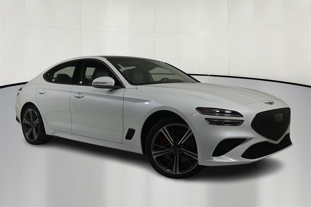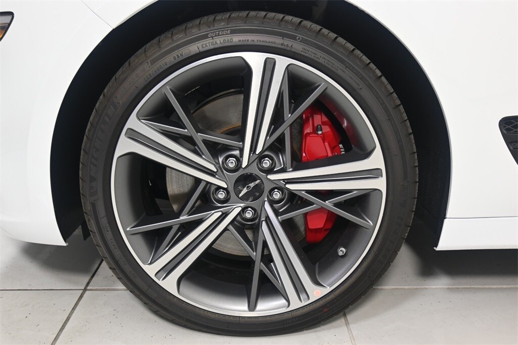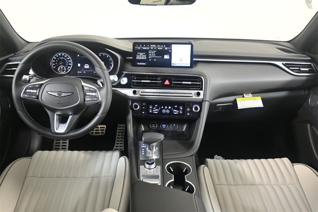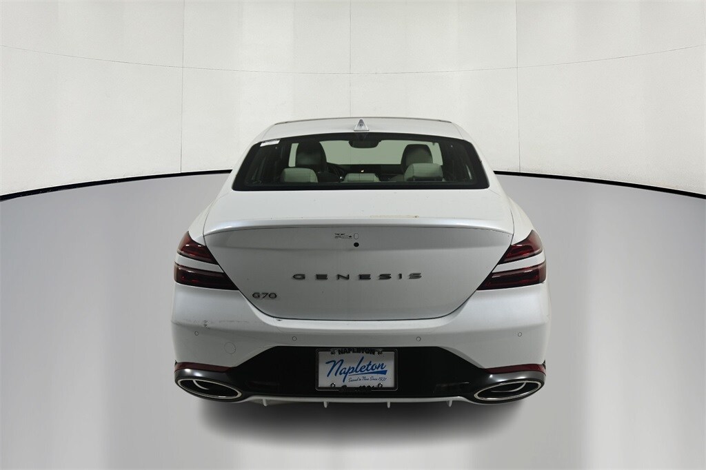 This G70 is well equipped with Sport Prestige Package (12-Way Power Front Passenger Seat, Acoustic Front Door Glass, Alloy Pedals, Dark Chrome Grille & Daylight Opening Trim, Forward & Reverse Parking Distance Warning, Front Passenger Seat Walk-In Device, Integrated Memory System (IMS), Leather Seating Surfaces, Option Group 02, Power Folding ECM Outside Mirrors, Power Telescoping Steering Wheel, Radio: AM/FM/SiriusXM/HD Lexicon Prem Audio System, Rain-Sensing Wipers, Sport Aluminum Trim, Ventilated Front Seats, Wheels: 19" x 8.0J Fr & 19" x 8.5J Rr Sport Alloy, Wide Sunroof, and Wireless Phone Charger), 4-Wheel Disc Brakes, 6 Speakers, ABS brakes, Air Conditioning, Alloy wheels, AM/FM radio: SiriusXM, Android Auto & Apple CarPlay, Anti-whiplash front head restraints, Auto High-beam Headlights, Auto-dimming Rear-View mirror, Automatic temperature control, Brake assist, Bumper Applique, Bumpers: body-color, Delay-off headlights, Driver door bin, Driver vanity mirror, Dual front impact airbags, Dual front side impact airbags, Electronic Stability Control, Emergency communication system: Genesis Connected Services, Exterior Parking Camera Rear, Four wheel independent suspension, Front anti-roll bar, Front Bucket Seats, Front Center Armrest, Front dual zone A/C, Front reading lights, Fully automatic headlights, Garage door transmitter: HomeLink, Heated door mirrors, Heated front seats, Heated Multi-Adjustable Front Bucket Seats, Illuminated Door Scuff Plates, Illuminated entry, Knee airbag, Leatherette Seating Surfaces, Low tire pressure warning, Navigation System, Occupant sensing airbag, Outside temperature display, Overhead airbag, Overhead console, Panic alarm, Passenger door bin, Passenger vanity mirror, Power door mirrors, Power driver seat, Power passenger seat, Power steering, Power windows, Radio: AM/FM/SiriusXM/HD Audio System, Rear anti-roll bar, Rear reading lights, Rear seat center armrest, Rear side impact airbag, Rear window defroster, Remote keyless entry, Reversible Cargo Tray, Security system, Speed control, Speed-Sensitive Wipers, Split folding rear seat, Steering wheel mounted audio controls, Tachometer, Telescoping steering wheel, Traction control, Trip computer, Turn signal indicator mirrors, Variably intermittent wipers, and Wheels: 19" x 8.0J Fr & 19" x 8.5J Rr Alloy.