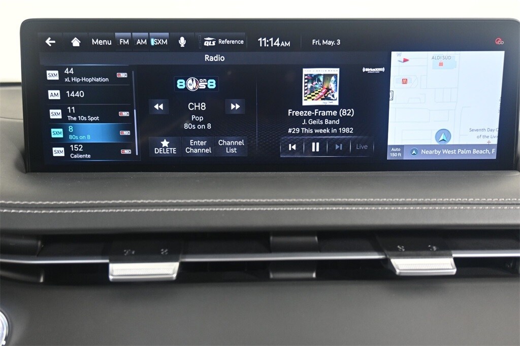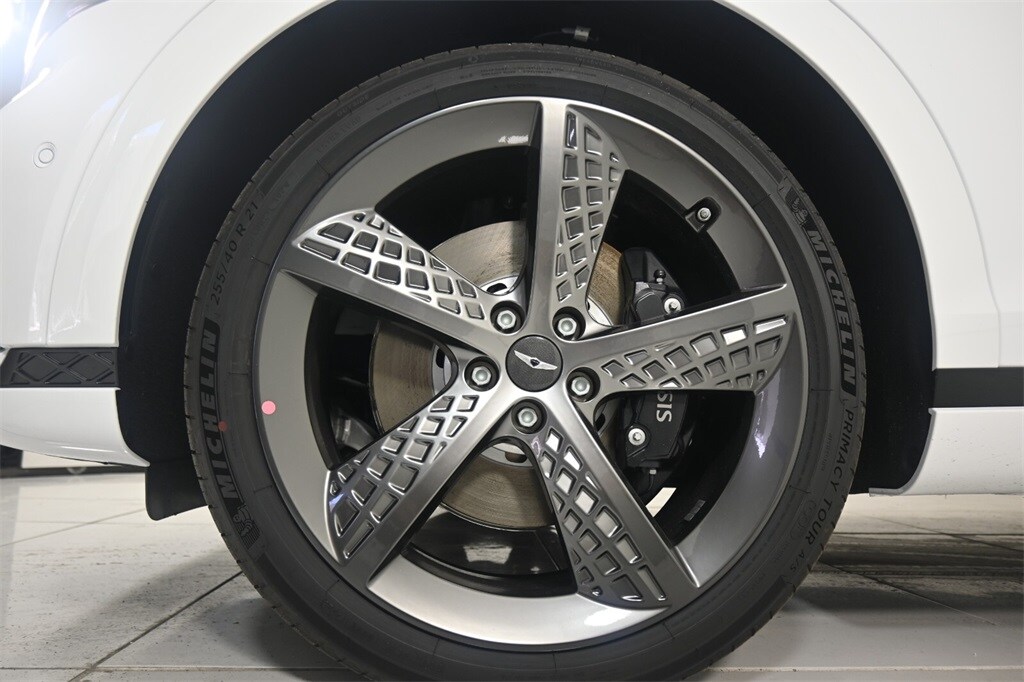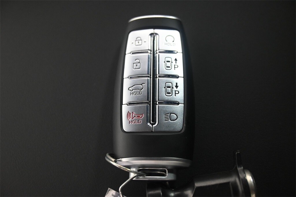 Features: Sport Appearance, Sport Prestige Package (12.3" 3D Digital Instrument Cluster, 2nd Row 110V AC Power Outlet, 3-Zone Climate Control, 4-Way Power Lumbar Front Passenger Seat, Adjustable Interior Ambient Lighting, Advanced Rear Occupant Alert, Alloy Pedals, Aluminum Trim w/Haptic Carbon Pattern, Blind-Spot View Monitor, Ergo Motion Seat, Forward Attention Warning, Forward/Reverse Parking Distance Warning, Genesis Digital Key, Heated Steering Wheel, Integrated Memory System (IMS), Leather Seating Surfaces w/Mesh Insert, Leatherette Wrapped Upper Instrument Panel, Lexicon Premium Audio, Manual Rear Door Shades, Passenger Walk-In Device, Power Driver Seat Bolster & Cushion Extension, Power Folding ECM Mirrors w/Genesis Logo Lamp, Power Telescoping Steering Wheel, Power Tilt & Slide Panoramic Sunroof, Remote Smart Parking Assist, Reverse Parking Collision-Avoidance Assist, Surround View Monitor, Ventilated Front Seats, and Wheels: 21" Dark Sputtering Sport Alloy), 4-Wheel Disc Brakes, 9 Speakers, ABS brakes, Air Conditioning, Alloy wheels, Aluminum Trim w/Spin Brushed Pattern, AM/FM radio: SiriusXM, Android Auto & Apple CarPlay, Anti-whiplash front head restraints, Auto High-beam Headlights, Auto-dimming Rear-View mirror, Automatic temperature control, Brake assist, Bumpers: body-color, Cargo Cover, Cargo Net, Delay-off headlights, Driver door bin, Driver vanity mirror, Dual front impact airbags, Dual front side impact airbags, Electronic Stability Control, Emergency communication system: Genesis Connected Services, Exterior Parking Camera Rear, First Aid Kit, Four wheel independent suspension, Front anti-roll bar, Front Bucket Seats, Front Center Armrest w/Storage, Front dual zone A/C, Front reading lights, Fully automatic headlights, Garage door transmitter: HomeLink, Heated door mirrors, Heated Front Bucket Seats, Heated front seats, Illuminated entry, Knee airbag, Leather Seating Surfaces, Leather steering wheel, Leatherette Seating Surfaces, Low tire pressure warning, Navigation System, Occupant sensing airbag, Outside temperature display, Overhead airbag, Overhead console, Panic alarm, Passenger door bin, Passenger vanity mirror, Power door mirrors, Power driver seat, Power Liftgate, Power passenger seat, Power steering, Power windows, Radio: 14.5" Navigation System w/AM/FM/HD Radio, Rain sensing wipers, Rear anti-roll bar, Rear Parking Sensors, Rear reading lights, Rear seat center armrest, Rear window defroster, Rear window wiper, Remote keyless entry, Roadside Assistance Kit, Security system, Speed control, Speed-sensing steering, Speed-Sensitive Wipers, Split folding rear seat, Spoiler, Steering wheel mounted audio controls, Tachometer, Telescoping steering wheel, Tow Hitch, Traction control, Trip computer, Turn signal indicator mirrors, Variably intermittent wipers, Wave Line Backlit Trim, and Wheels: 19" Dark Hyper Silver Alloy.