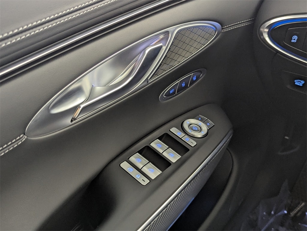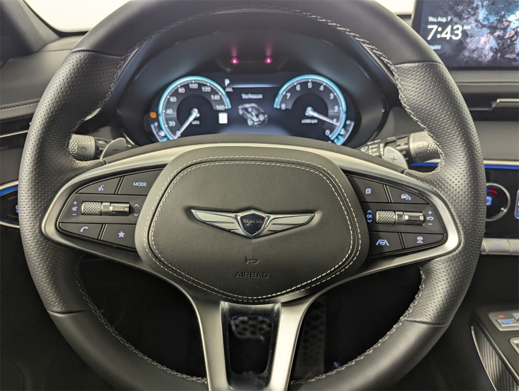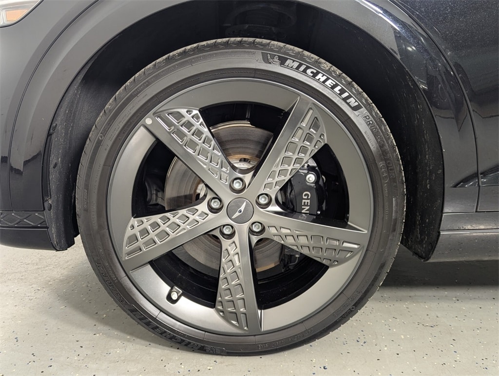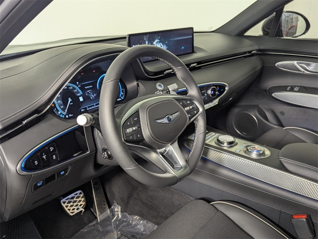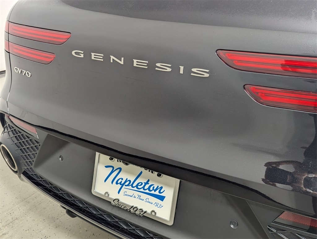 Features: Sport Appearance, Sport Prestige Package (12.3" 3D Digital Instrument Cluster, 2nd Row 110V AC Power Outlet, 3-Zone Climate Control, 4-Way Power Lumbar Front Passenger Seat, Adjustable Interior Ambient Lighting, Advanced Rear Occupant Alert, Alloy Pedals, Aluminum Trim w/Haptic Carbon Pattern, Blind-Spot View Monitor, Ergo Motion Seat, Forward Attention Warning, Forward/Reverse Parking Distance Warning, Genesis Digital Key, Heated Steering Wheel, Integrated Memory System (IMS), Leather Seating Surfaces w/Mesh Insert, Leatherette Wrapped Upper Instrument Panel, Lexicon Premium Audio, Manual Rear Door Shades, Passenger Walk-In Device, Power Driver Seat Bolster & Cushion Extension, Power Folding ECM Mirrors w/Genesis Logo Lamp, Power Telescoping Steering Wheel, Power Tilt & Slide Panoramic Sunroof, Remote Smart Parking Assist, Reverse Parking Collision-Avoidance Assist, Surround View Monitor, Ventilated Front Seats, and Wheels: 21" Dark Sputtering Sport Alloy), GV70 2.5T, 4D Sport Utility, 2.5L DOHC, 8-Speed Automatic with SHIFTRONIC, AWD, Vik Black, Black/Black Leather, 4-Wheel Disc Brakes, 9 Speakers, ABS brakes, Air Conditioning, Alloy wheels, Aluminum Trim w/Spin Brushed Pattern, AM/FM radio: SiriusXM, Android Auto & Apple CarPlay, Anti-whiplash front head restraints, Auto High-beam Headlights, Auto-dimming Rear-View mirror, Automatic temperature control, Brake assist, Bumpers: body-color, Cargo Cover, Cargo Net, Delay-off headlights, Driver door bin, Driver vanity mirror, Dual front impact airbags, Dual front side impact airbags, Electronic Stability Control, Emergency communication system: Genesis Connected Services, Exterior Parking Camera Rear, Four wheel independent suspension, Front anti-roll bar, Front Bucket Seats, Front Center Armrest w/Storage, Front dual zone A/C, Front reading lights, Fully automatic headlights, Garage door transmitter: HomeLink, Heated door mirrors, Heated Front Bucket Seats, Heated front seats, Illuminated Door Scuff Plates, Illuminated entry, Knee airbag, Leather Seating Surfaces, Leather steering wheel, Leatherette Seating Surfaces, Low tire pressure warning, Navigation System, Occupant sensing airbag, Outside temperature display, Overhead airbag, Overhead console, Panic alarm, Passenger door bin, Passenger vanity mirror, Power door mirrors, Power driver seat, Power Liftgate, Power passenger seat, Power steering, Power windows, Radio: 14.5" Navigation System w/AM/FM/HD Radio, Rain sensing wipers, Rear anti-roll bar, Rear Parking Sensors, Rear reading lights, Rear seat center armrest, Rear window defroster, Rear window wiper, Remote keyless entry, Reversible Cargo Tray, Security system, Speed control, Speed-sensing steering, Speed-Sensitive Wipers, Split folding rear seat, Spoiler, Steering wheel mounted audio controls, Tachometer, Telescoping steering wheel, Traction control, Trip computer, Turn signal indicator mirrors, Variably intermittent wipers, Wave Line Backlit Trim, and Wheels: 19" Dark Hyper Silver Alloy.