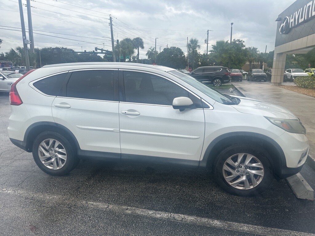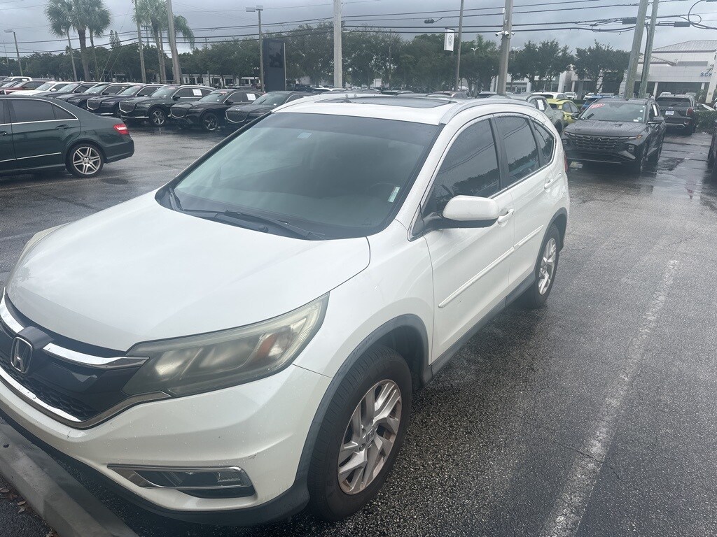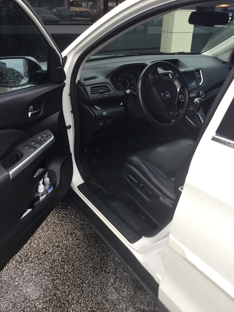 Features: CR-V EX-L, 4D Sport Utility, 2.4L I4 DOHC 16V i-VTEC, CVT, AWD, White Diamond Pearl, Black w/Leather Seat Trim, 17" Alloy Wheels, 4-Wheel Disc Brakes, 5.048 Axle Ratio, 7 Speakers, ABS brakes, Air Conditioning, Alloy wheels, AM/FM radio: SiriusXM, Auto-dimming Rear-View mirror, Automatic temperature control, Brake assist, Bumpers: body-color, CD player, Compass, Delay-off headlights, Driver door bin, Driver vanity mirror, Dual front impact airbags, Dual front side impact airbags, Electronic Stability Control, Exterior Parking Camera Rear, Four wheel independent suspension, Front anti-roll bar, Front Bucket Seats, Front Center Armrest, Front dual zone A/C, Front fog lights, Front reading lights, Heated door mirrors, Heated Front Bucket Seats, Heated front seats, Illuminated entry, Leather Seat Trim, Leather Shift Knob, Low tire pressure warning, Occupant sensing airbag, Outside temperature display, Overhead airbag, Overhead console, Panic alarm, Passenger door bin, Passenger vanity mirror, Power door mirrors, Power driver seat, Power moonroof, Power steering, Power windows, Radio data system, Radio: AM/FM/CD/SiriusXM Audio System, Rear anti-roll bar, Rear seat center armrest, Rear window defroster, Rear window wiper, Remote keyless entry, Roof rack: rails only, Security system, Speed control, Speed-sensing steering, Speed-Sensitive Wipers, Split folding rear seat, Steering wheel mounted audio controls, Tachometer, Telescoping steering wheel, Tilt steering wheel, Traction control, Trip computer, and Variably intermittent wipers.