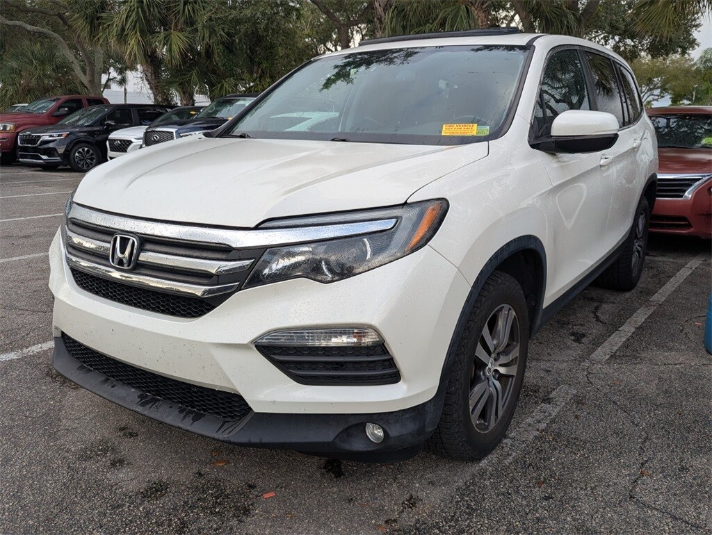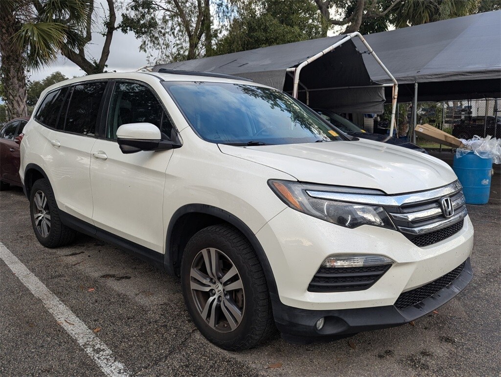 2018 Honda Pilot EX-L Beautifully finished in with Leather interior. 3.5L V6 24V SOHC i-VTEC 4D Sport Utility AWD 6-Speed Automatic AWD, 18" Alloy Wheels, 3rd row seats: split-bench, 4-Wheel Disc Brakes, 4.25 Axle Ratio, 7 Speakers, ABS brakes, Air Conditioning, Alloy wheels, AM/FM radio: SiriusXM, Apple CarPlay/Android Auto, Auto-dimming Rear-View mirror, Automatic temperature control, Brake assist, Bumpers: body-color, Compass, Delay-off headlights, Driver door bin, Driver vanity mirror, Dual front impact airbags, Dual front side impact airbags, Electronic Stability Control, Exterior Parking Camera Rear, Four wheel independent suspension, Front anti-roll bar, Front Bucket Seats, Front Center Armrest, Front dual zone A/C, Front fog lights, Front reading lights, Fully automatic headlights, Garage door transmitter: HomeLink, Heated door mirrors, Heated Front Bucket Seats, Heated front seats, Illuminated entry, Leather Shift Knob, Leather-Trimmed Seats, Low tire pressure warning, Occupant sensing airbag, Outside temperature display, Overhead airbag, Overhead console, Panic alarm, Passenger door bin, Passenger vanity mirror, Power door mirrors, Power driver seat, Power Liftgate, Power moonroof, Power passenger seat, Power steering, Power windows, Radio data system, Radio: AM/FM Audio System, Rear air conditioning, Rear anti-roll bar, Rear reading lights, Rear seat center armrest, Rear window defroster, Rear window wiper, Remote keyless entry, Security system, SiriusXM Radio, Speed control, Speed-sensing steering, Speed-Sensitive Wipers, Split folding rear seat, Spoiler, Steering wheel mounted audio controls, Tachometer, Telescoping steering wheel, Tilt steering wheel, Traction control, Trip computer, Variably intermittent wipers, AWD. Clean CARFAX. 18/26 City/Highway MPG