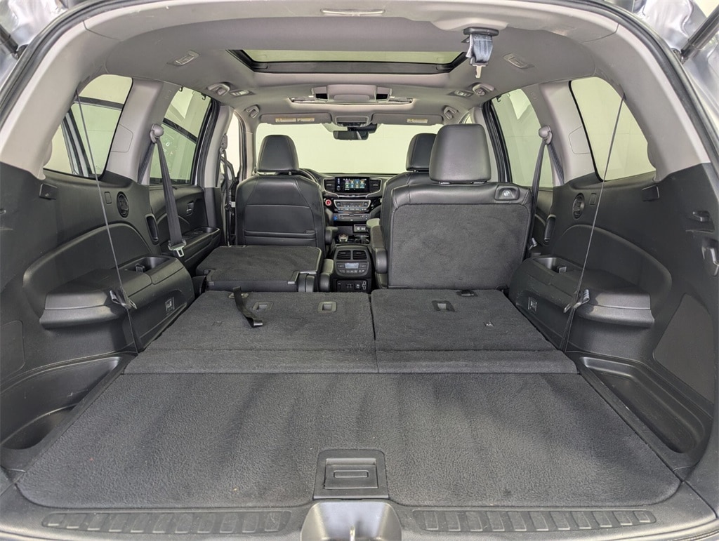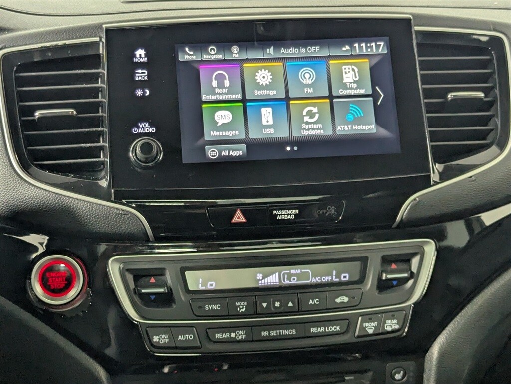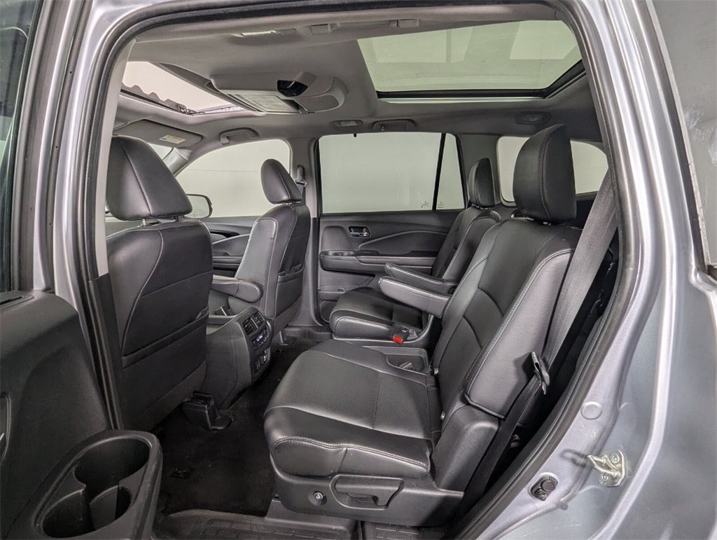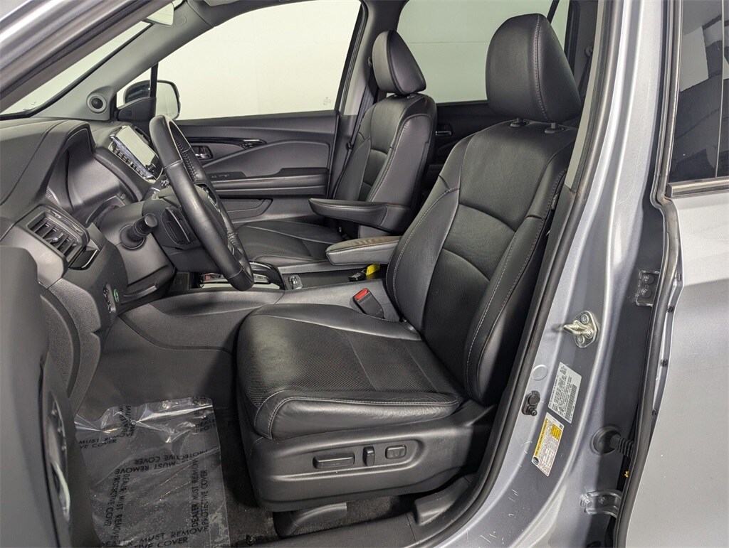 This Pilot is well equipped with Pilot Elite, 3.5L V6 24V SOHC i-VTEC, AWD, Apple CarPlay/Android Auto, Exterior Parking Camera Rear, Heated & Ventilated Front Bucket Seats, Honda Satellite-Linked Navigation System, Power Liftgate, Power moonroof, 10 Speakers, 3rd row seats: split-bench, 4-Wheel Disc Brakes, 4.33 Axle Ratio, A/V remote: CabinControl, ABS brakes, Air Conditioning, Alloy wheels, AM/FM radio: SiriusXM, Auto High-beam Headlights, Auto-dimming door mirrors, Auto-dimming Rear-View mirror, Automatic temperature control, Blind Spot Information (BSI) System warning, Brake assist, Bumpers: body-color, Compass, Delay-off headlights, Driver door bin, Driver vanity mirror, Dual front impact airbags, Dual front side impact airbags, Electronic Stability Control, Emergency communication system: HondaLink, Forward collision: Collision Mitigation Braking System (CMBS) + FCW mitigation, Four wheel independent suspension, Front anti-roll bar, Front Bucket Seats, Front Center Armrest, Front dual zone A/C, Front fog lights, Front reading lights, Fully automatic headlights, Garage door transmitter: HomeLink, Headphones, Heated door mirrors, Heated front seats, Heated rear seats, Heated steering wheel, Illuminated entry, Lane departure: Lane Keeping Assist System (LKAS) active, Low tire pressure warning, Memory seat, Navigation system: Honda Satellite-Linked Navigation System, Occupant sensing airbag, Outside temperature display, Overhead airbag, Overhead console, Panic alarm, Passenger door bin, Passenger vanity mirror, Perforated Leather Seat Trim, Power door mirrors, Power driver seat, Power passenger seat, Power steering, Power windows, Radio data system, Radio: 590-Watt Premium Audio System, Rain sensing wipers, Rear air conditioning, Rear anti-roll bar, Rear audio controls, Rear reading lights, Rear window defroster, Rear window wiper, Reclining 3rd row seat, Remote keyless entry, Roof rack: rails only, Security system, Speed control, Speed-sensing steering, Speed-Sensitive Wipers, Split folding rear seat, Spoiler, Steering wheel mounted audio controls, Tachometer, Telescoping steering wheel, Tilt steering wheel, Traction control, Trip computer, Turn signal indicator mirrors, Variably intermittent wipers, Ventilated front seats, and Wheels: 20" Machine-Finished Alloy.