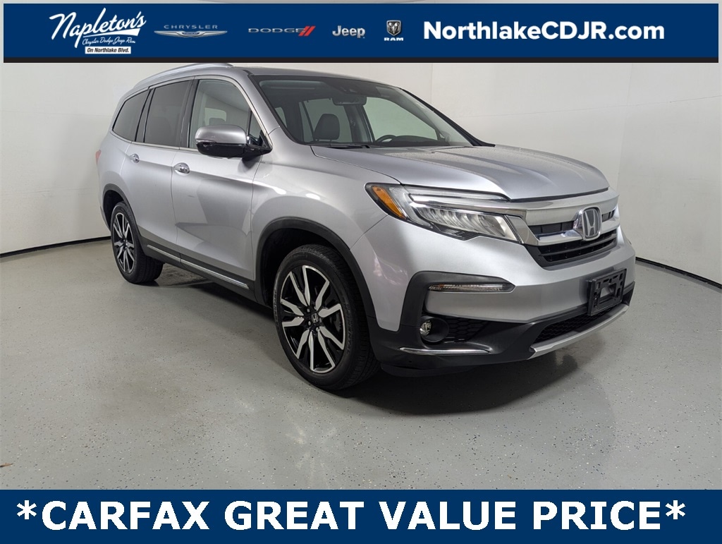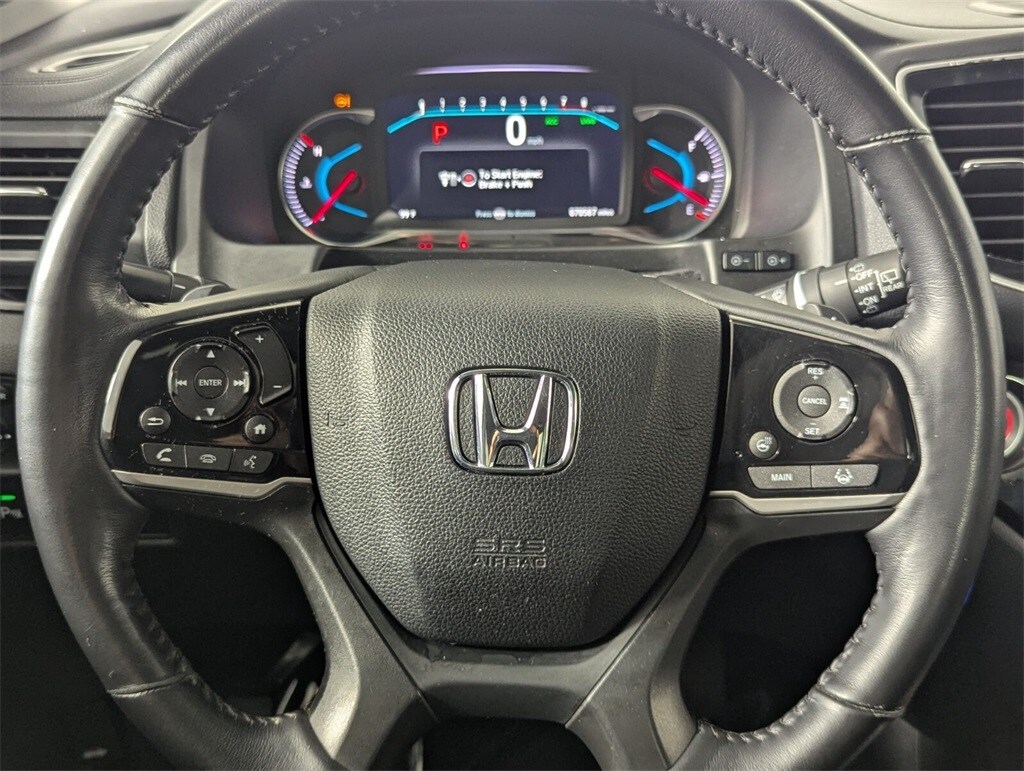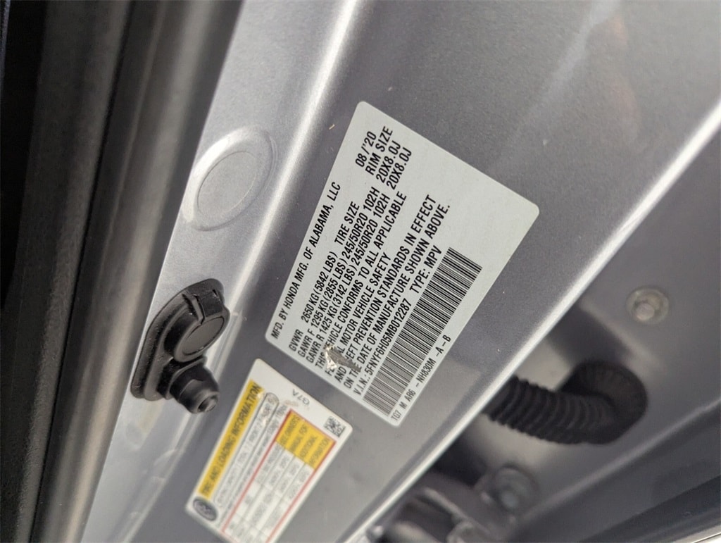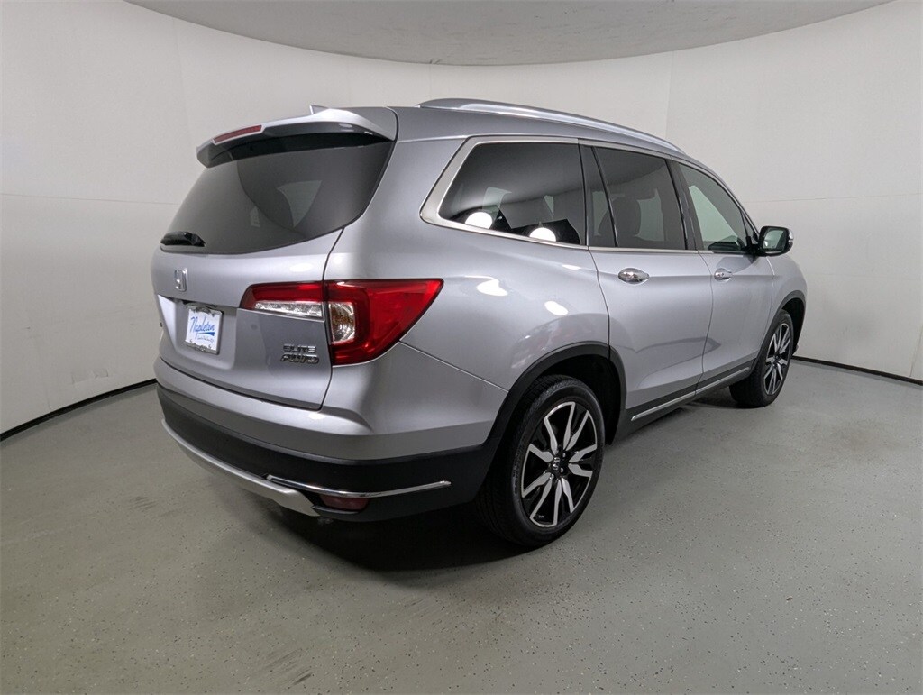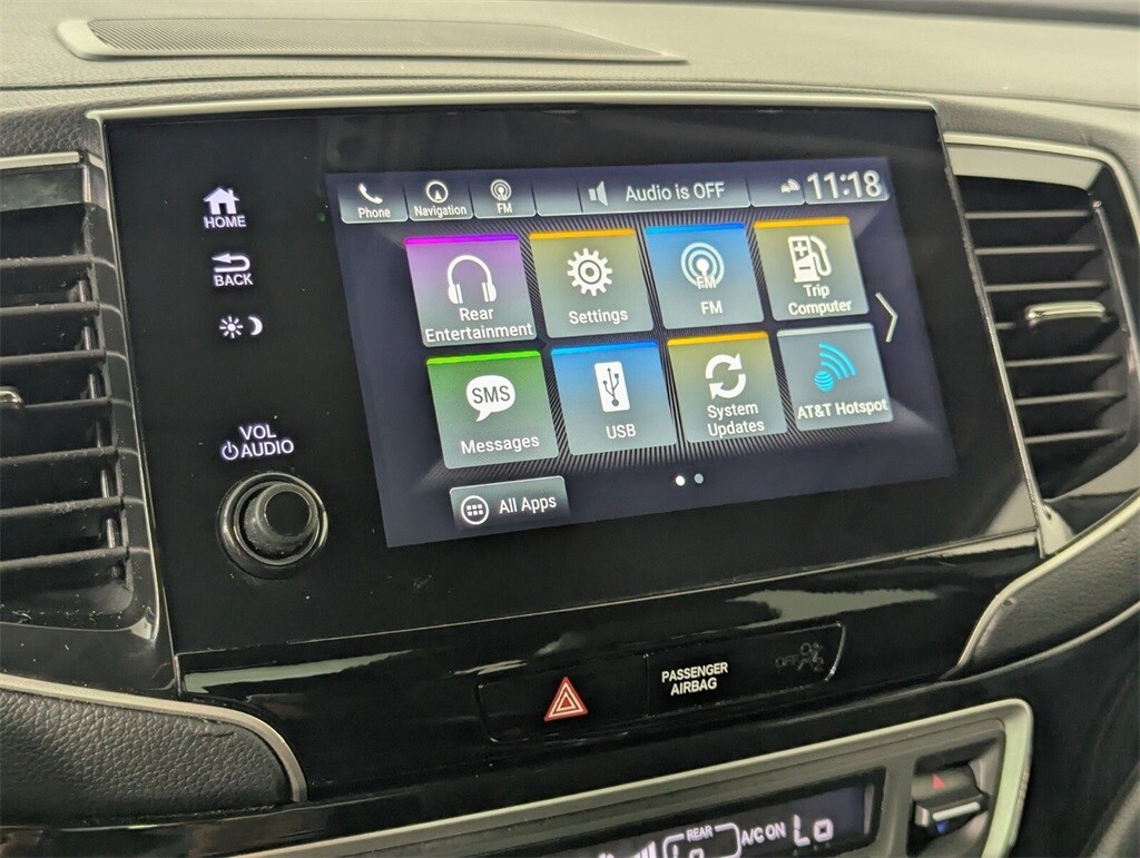 This Pilot is well equipped with Pilot Elite, 3.5L V6 24V SOHC i-VTEC, AWD, Apple CarPlay/Android Auto, Exterior Parking Camera Rear, Heated & Ventilated Front Bucket Seats, Honda Satellite-Linked Navigation System, Power Liftgate, Power moonroof, 10 Speakers, 3rd row seats: split-bench, 4-Wheel Disc Brakes, 4.33 Axle Ratio, A/V remote: CabinControl, ABS brakes, Air Conditioning, Alloy wheels, AM/FM radio: SiriusXM, Auto High-beam Headlights, Auto-dimming door mirrors, Auto-dimming Rear-View mirror, Automatic temperature control, Blind Spot Information (BSI) System warning, Brake assist, Bumpers: body-color, Compass, Delay-off headlights, Driver door bin, Driver vanity mirror, Dual front impact airbags, Dual front side impact airbags, Electronic Stability Control, Emergency communication system: HondaLink, Forward collision: Collision Mitigation Braking System (CMBS) + FCW mitigation, Four wheel independent suspension, Front anti-roll bar, Front Bucket Seats, Front Center Armrest, Front dual zone A/C, Front fog lights, Front reading lights, Fully automatic headlights, Garage door transmitter: HomeLink, Headphones, Heated door mirrors, Heated front seats, Heated rear seats, Heated steering wheel, Illuminated entry, Lane departure: Lane Keeping Assist System (LKAS) active, Low tire pressure warning, Memory seat, Navigation system: Honda Satellite-Linked Navigation System, Occupant sensing airbag, Outside temperature display, Overhead airbag, Overhead console, Panic alarm, Passenger door bin, Passenger vanity mirror, Perforated Leather Seat Trim, Power door mirrors, Power driver seat, Power passenger seat, Power steering, Power windows, Radio data system, Radio: 590-Watt Premium Audio System, Rain sensing wipers, Rear air conditioning, Rear anti-roll bar, Rear audio controls, Rear reading lights, Rear window defroster, Rear window wiper, Reclining 3rd row seat, Remote keyless entry, Roof rack: rails only, Security system, Speed control, Speed-sensing steering, Speed-Sensitive Wipers, Split folding rear seat, Spoiler, Steering wheel mounted audio controls, Tachometer, Telescoping steering wheel, Tilt steering wheel, Traction control, Trip computer, Turn signal indicator mirrors, Variably intermittent wipers, Ventilated front seats, and Wheels: 20" Machine-Finished Alloy.