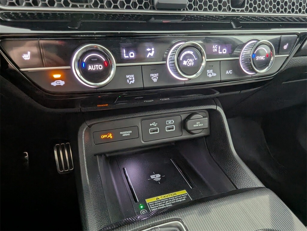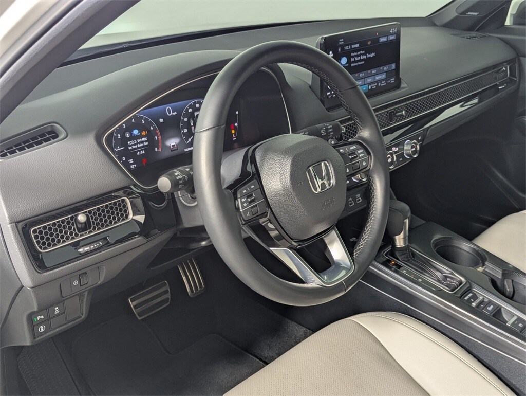 This Civic is well equipped with Gray Leather, 12 Speakers, 18" Alloy Wheels, 4-Wheel Disc Brakes, ABS brakes, Adaptive Cruise Control: Adaptive Cruise Control (ACC) with Low-Speed Follow, Air Conditioning, Alloy wheels, AM/FM radio: SiriusXM, Apple CarPlay/Android Auto, Auto High-beam Headlights, Auto-dimming Rear-View mirror, Automatic temperature control, Blind Spot Information (BSI) System warning, Brake assist, Bumpers: body-color, Compass, Delay-off headlights, Driver door bin, Driver vanity mirror, Dual front impact airbags, Dual front side impact airbags, Electronic Stability Control, Emergency communication system: HondaLink, Exterior Parking Camera Rear, Four wheel independent suspension, Front anti-roll bar, Front Bucket Seats, Front Center Armrest, Front dual zone A/C, Front fog lights, Front reading lights, Fully automatic headlights, Garage door transmitter: HomeLink, Heated door mirrors, Heated Front Bucket Seats, Heated front seats, Illuminated entry, Knee airbag, Lane departure: Lane Keeping Assist System (LKAS) active, Leather Shift Knob, Leather steering wheel, Leather-Trimmed Seating Surfaces, Low tire pressure warning, Navigation system: Honda Satellite-Linked Navigation System, Occupant sensing airbag, Outside temperature display, Overhead airbag, Overhead console, Panic alarm, Passenger door bin, Passenger vanity mirror, Power door mirrors, Power driver seat, Power moonroof, Power passenger seat, Power steering, Power windows, Radio data system, Radio: BOSE Premium Audio System, Rain sensing wipers, Rear anti-roll bar, Rear seat center armrest, Rear side impact airbag, Rear window defroster, Rear window wiper, Remote keyless entry, Security system, Speed control, Speed-sensing steering, Split folding rear seat, Steering wheel mounted audio controls, Tachometer, Telescoping steering wheel, Tilt steering wheel, Traction control, Trip computer, Turn signal indicator mirrors, Variably intermittent wipers, and Voltmeter.