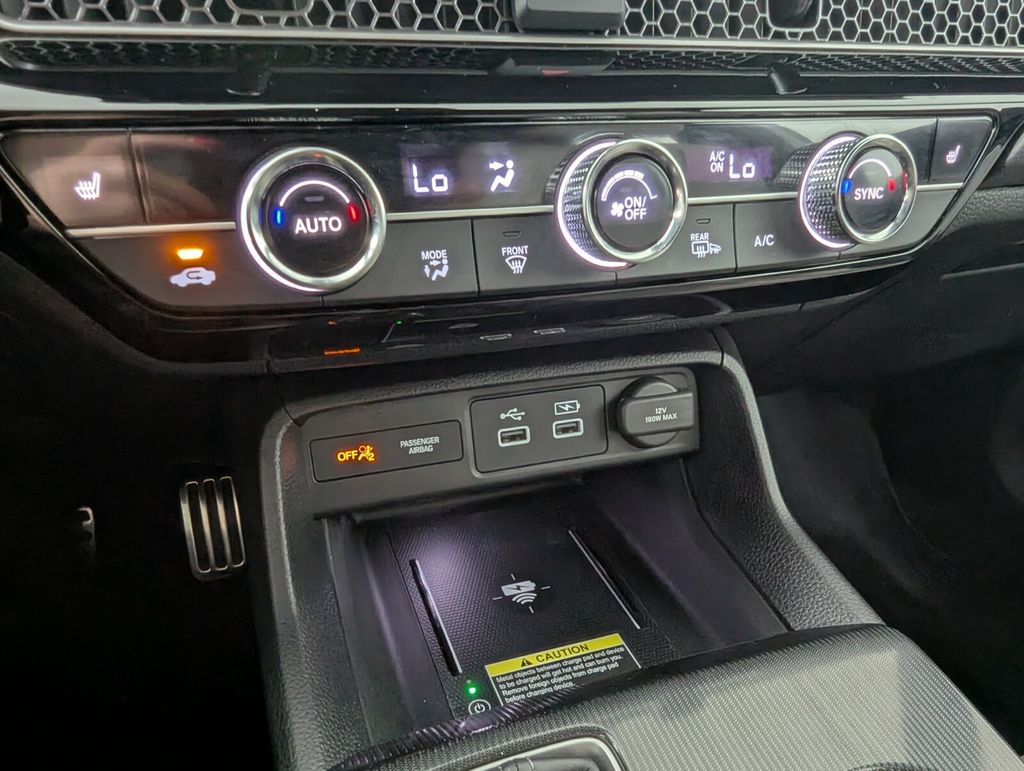 This Civic is well equipped with Gray Leather, Apple CarPlay/Android Auto, Navigation system: Honda Satellite-Linked Navigation System, 12 Speakers, 18" Alloy Wheels, 4-Wheel Disc Brakes, ABS brakes, Adaptive Cruise Control: Adaptive Cruise Control (ACC) with Low-Speed Follow, Air Conditioning, Alloy wheels, AM/FM radio: SiriusXM, Auto High-beam Headlights, Auto-dimming Rear-View mirror, Automatic temperature control, Blind Spot Information (BSI) System warning, Brake assist, Bumpers: body-color, Compass, Delay-off headlights, Driver door bin, Driver vanity mirror, Dual front impact airbags, Dual front side impact airbags, Electronic Stability Control, Emergency communication system: HondaLink, Exterior Parking Camera Rear, Four wheel independent suspension, Front anti-roll bar, Front Bucket Seats, Front Center Armrest, Front dual zone A/C, Front fog lights, Front reading lights, Fully automatic headlights, Garage door transmitter: HomeLink, Heated door mirrors, Heated Front Bucket Seats, Heated front seats, Illuminated entry, Knee airbag, Lane departure: Lane Keeping Assist System (LKAS) active, Leather Shift Knob, Leather steering wheel, Leather-Trimmed Seating Surfaces, Low tire pressure warning, Occupant sensing airbag, Outside temperature display, Overhead airbag, Overhead console, Panic alarm, Passenger door bin, Passenger vanity mirror, Power door mirrors, Power driver seat, Power moonroof, Power passenger seat, Power steering, Power windows, Radio data system, Radio: BOSE Premium Audio System, Rain sensing wipers, Rear anti-roll bar, Rear seat center armrest, Rear side impact airbag, Rear window defroster, Rear window wiper, Remote keyless entry, Security system, Speed control, Speed-sensing steering, Split folding rear seat, Steering wheel mounted audio controls, Tachometer, Telescoping steering wheel, Tilt steering wheel, Traction control, Trip computer, Turn signal indicator mirrors, Variably intermittent wipers, and Voltmeter.