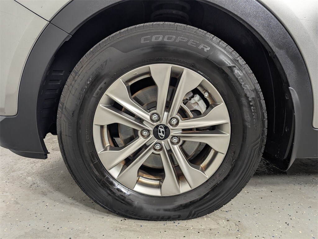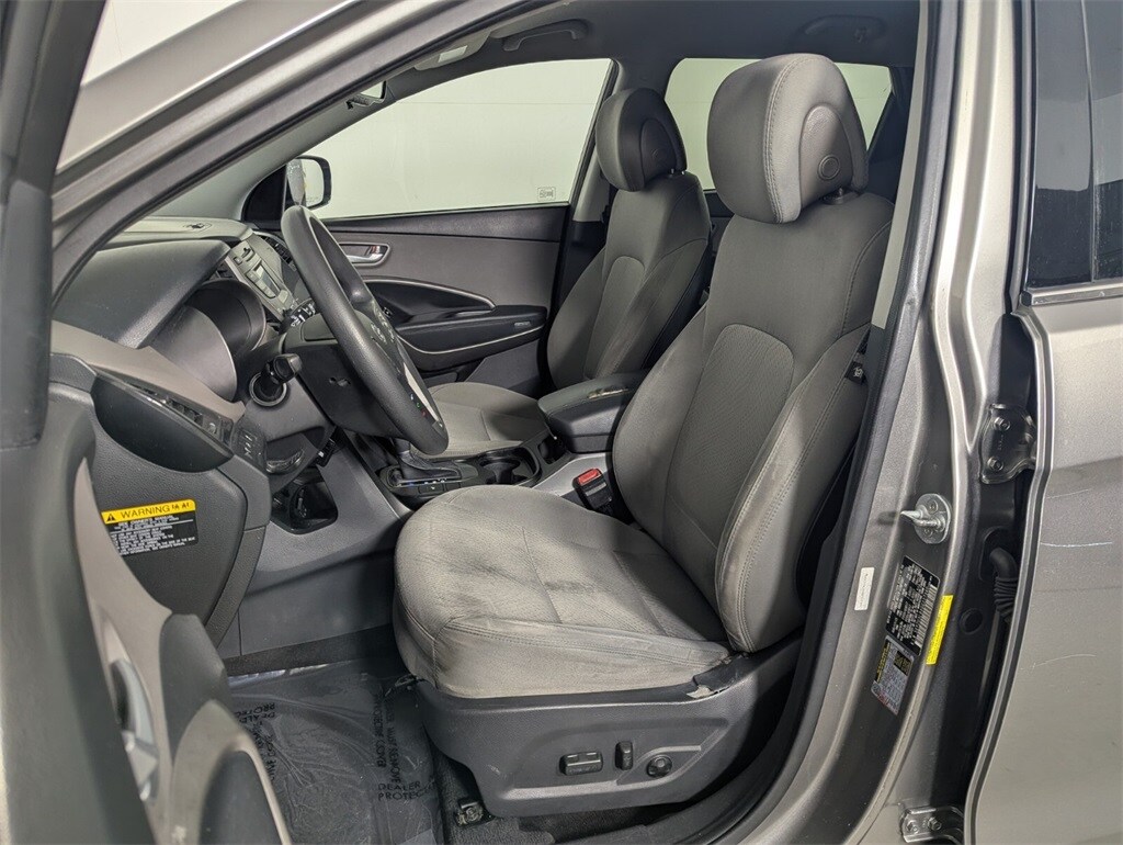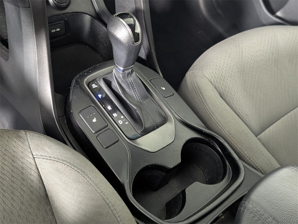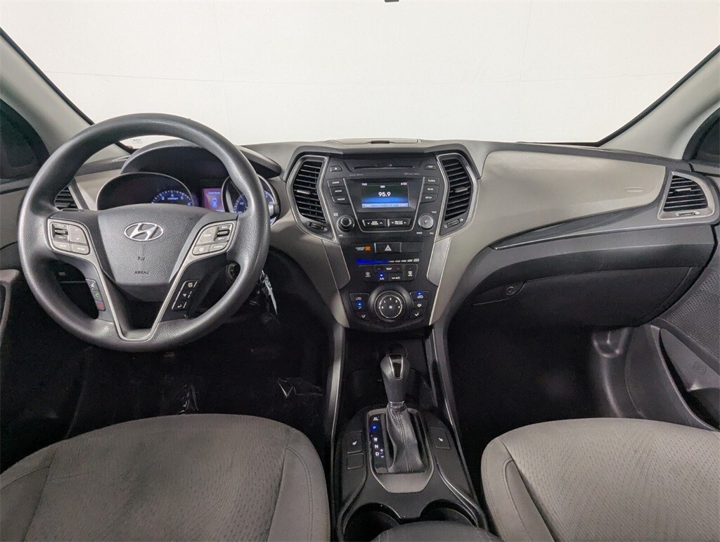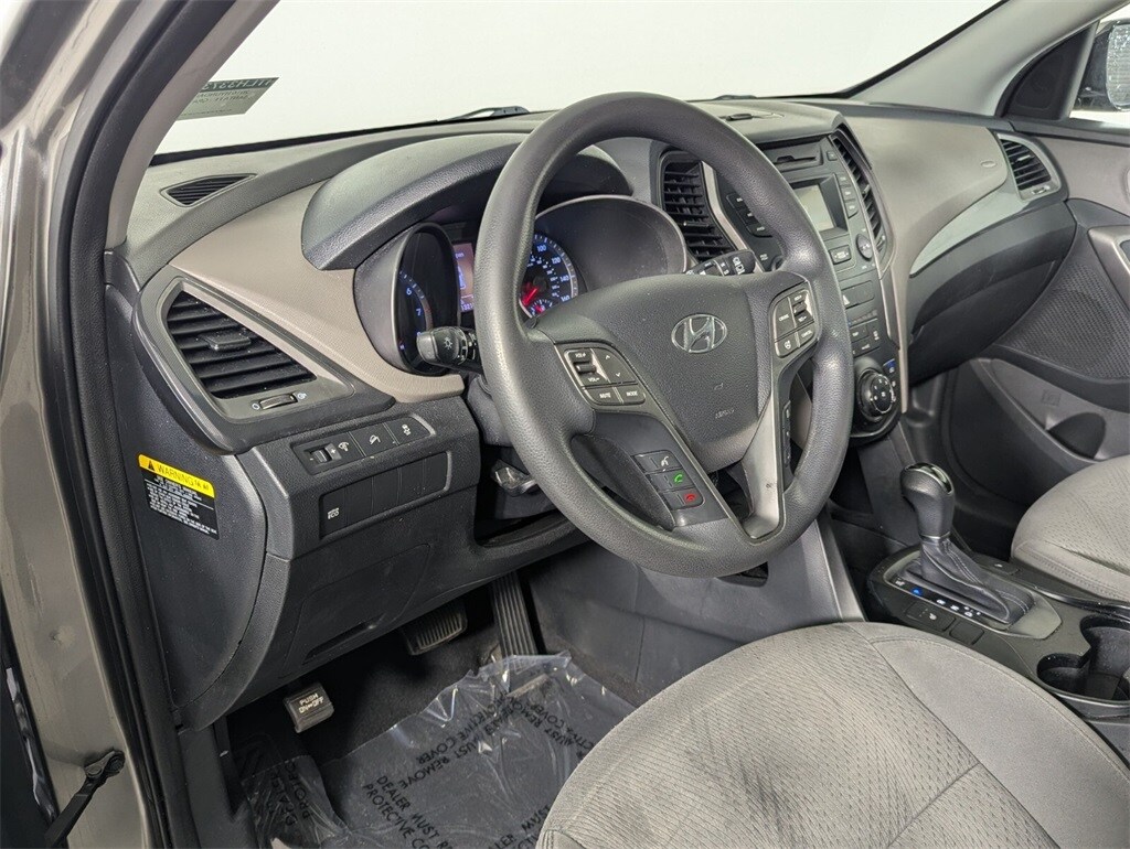 Features: Popular Equipment Package 02 (Automatic Headlight Control, Fog Lights, Heated Front Seats, Power Driver Seat w/4-Way Lumbar Control, Radio: AM/FM/CD/MP3/SiriusXM Audio System, Roof Side Rails, and Windshield Wiper De-Icer), Santa Fe Sport 2.4 Base, 4D Sport Utility, 2.4L I4 DGI DOHC 16V, 6-Speed Automatic with Shiftronic, FWD, Mineral Gray, Gray Cloth, 17" x 7" Aluminum Alloy Wheels, 4-Wheel Disc Brakes, 6 Speakers, ABS brakes, Air Conditioning, Alloy wheels, AM/FM radio: SiriusXM, Axle Ratio 3.648, Brake assist, Bumper Applique, Bumpers: body-color, Cargo Cover/Screen, Cargo Net, Cargo Tray, Carpeted Floor Mats, CD player, Driver door bin, Driver vanity mirror, Dual front impact airbags, Dual front side impact airbags, Electronic Stability Control, First Aid Kit, Four wheel independent suspension, Front anti-roll bar, Front Bucket Seats, Front Center Armrest, Front reading lights, Heated door mirrors, Illuminated entry, Knee airbag, Low tire pressure warning, Mudguards, Multi-Adjustable Bucket Seats, Occupant sensing airbag, Option Group 02, Outside temperature display, Overhead airbag, Overhead console, Panic alarm, Passenger door bin, Passenger vanity mirror, Power door mirrors, Power steering, Power windows, Radio: AM/FM/SiriusXM/CD/MP3 Audio System, Rear anti-roll bar, Rear seat center armrest, Rear window defroster, Rear window wiper, Remote keyless entry, Security system, Speed control, Speed-sensing steering, Split folding rear seat, Spoiler, Stain-Resistant Cloth Seating Surfaces, Steering wheel mounted audio controls, Tachometer, Telescoping steering wheel, Tilt steering wheel, Traction control, Trip computer, Variably intermittent wipers, and Wheel Locks.