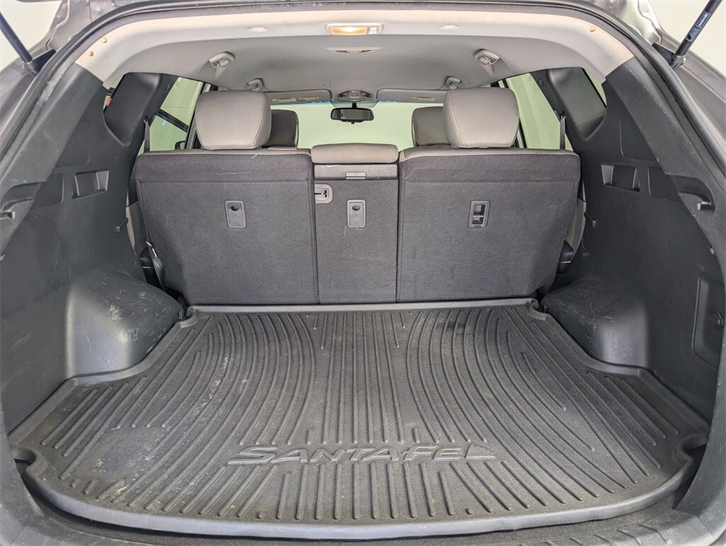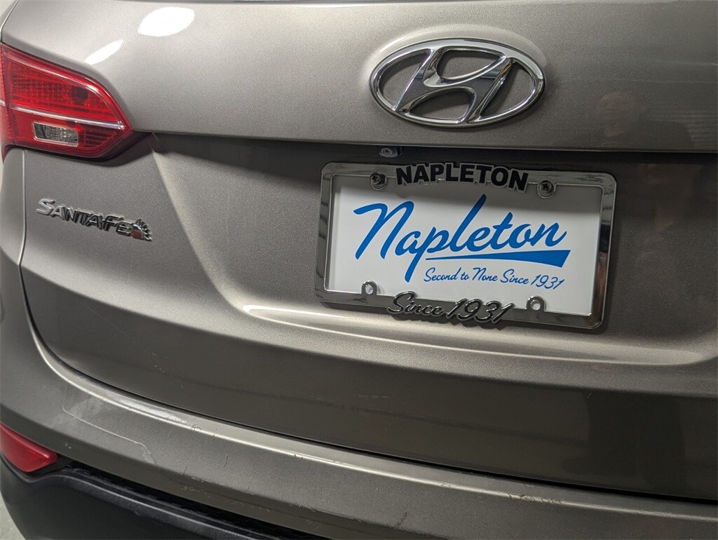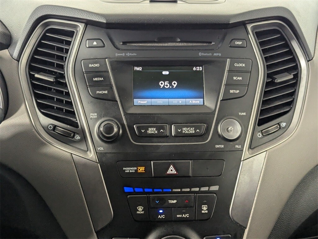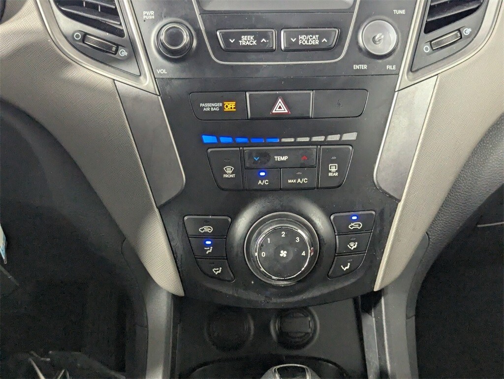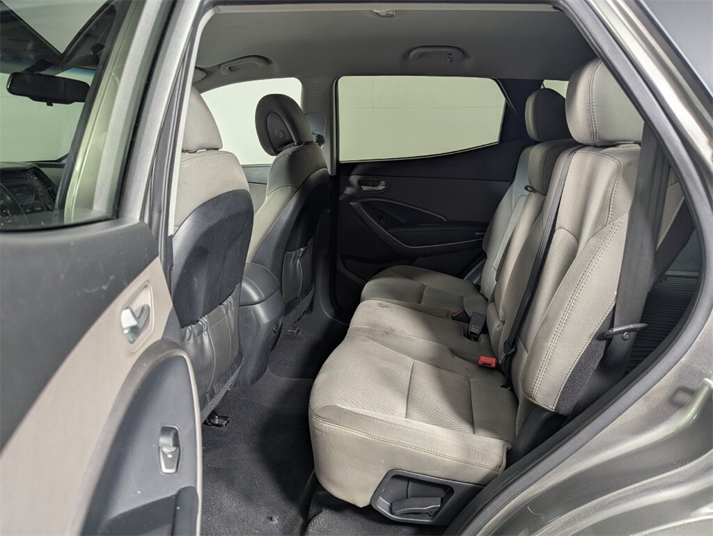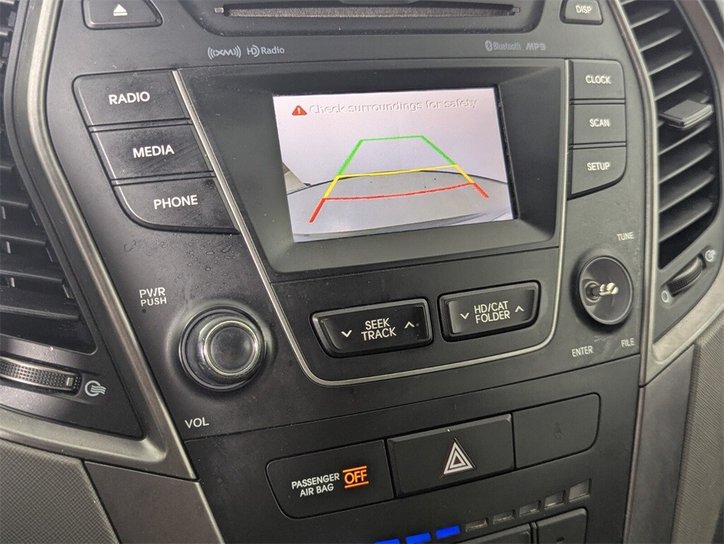 Features: Popular Equipment Package 02 (Automatic Headlight Control, Fog Lights, Heated Front Seats, Power Driver Seat w/4-Way Lumbar Control, Radio: AM/FM/CD/MP3/SiriusXM Audio System, Roof Side Rails, and Windshield Wiper De-Icer), Santa Fe Sport 2.4 Base, 4D Sport Utility, 2.4L I4 DGI DOHC 16V, 6-Speed Automatic with Shiftronic, FWD, Mineral Gray, Gray Cloth, 17" x 7" Aluminum Alloy Wheels, 4-Wheel Disc Brakes, 6 Speakers, ABS brakes, Air Conditioning, Alloy wheels, AM/FM radio: SiriusXM, Axle Ratio 3.648, Brake assist, Bumper Applique, Bumpers: body-color, Cargo Cover/Screen, Cargo Net, Cargo Tray, Carpeted Floor Mats, CD player, Driver door bin, Driver vanity mirror, Dual front impact airbags, Dual front side impact airbags, Electronic Stability Control, First Aid Kit, Four wheel independent suspension, Front anti-roll bar, Front Bucket Seats, Front Center Armrest, Front reading lights, Heated door mirrors, Illuminated entry, Knee airbag, Low tire pressure warning, Mudguards, Multi-Adjustable Bucket Seats, Occupant sensing airbag, Option Group 02, Outside temperature display, Overhead airbag, Overhead console, Panic alarm, Passenger door bin, Passenger vanity mirror, Power door mirrors, Power steering, Power windows, Radio: AM/FM/SiriusXM/CD/MP3 Audio System, Rear anti-roll bar, Rear seat center armrest, Rear window defroster, Rear window wiper, Remote keyless entry, Security system, Speed control, Speed-sensing steering, Split folding rear seat, Spoiler, Stain-Resistant Cloth Seating Surfaces, Steering wheel mounted audio controls, Tachometer, Telescoping steering wheel, Tilt steering wheel, Traction control, Trip computer, Variably intermittent wipers, and Wheel Locks.