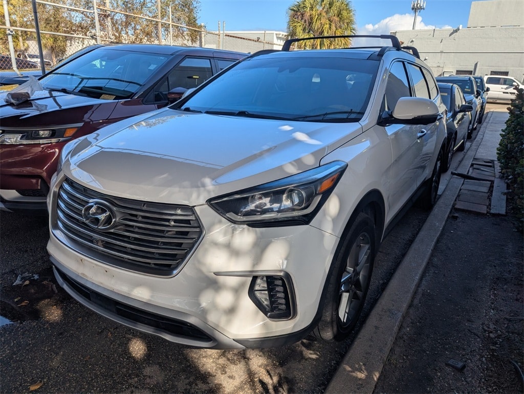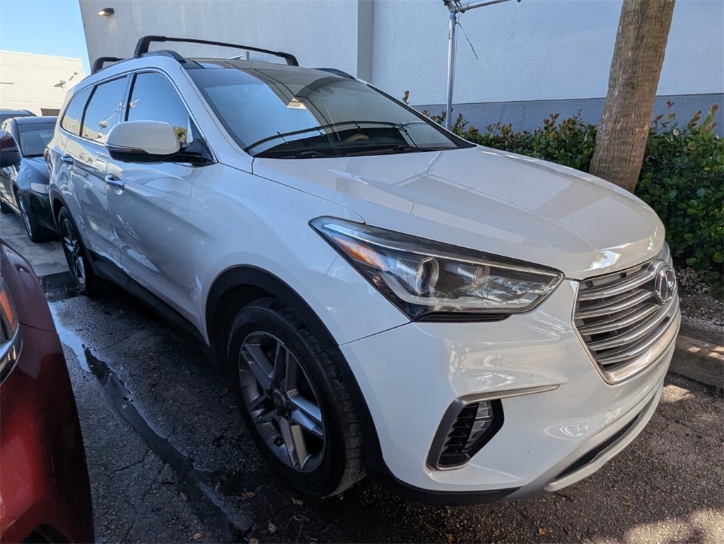 2017 Hyundai Santa Fe SE Ultimate Beautifully finished in Monaco White with Beige Leather interior. 3.3L V6 DGI DOHC 24V 4D Sport Utility FWD 6-Speed Automatic with Shiftronic **LOCAL TRADE**, **CLEAN CARFAX**, **MUST SEE TO APPRECIATE**, **EXTRA CLEAN**, Beige Leather, 12 Speakers, 19" x 7.5J Aluminum Alloy Wheels, 3.041 Axle Ratio, 3rd row seats: split-bench, 4-Wheel Disc Brakes, ABS brakes, Air Conditioning, Alloy wheels, AM/FM radio: SiriusXM, Android Auto, Auto-dimming Rear-View mirror, Automatic Emergency Braking, Automatic temperature control, Brake assist, Bumpers: body-color, Cargo Cover, Cargo Net, Cargo Tray, Carpeted Floor Mats, CD player, Compass, Delay-off headlights, Driver door bin, Driver vanity mirror, Dual front impact airbags, Dual front side impact airbags, Dynamic Bending Light, Electronic Parking Brake, Electronic Stability Control, Emergency communication system: Blue Link, Exterior Parking Camera Rear, First Aid Kit, Four wheel independent suspension, Front anti-roll bar, Front Bucket Seats, Front Center Armrest, Front dual zone A/C, Front fog lights, Front reading lights, Fully automatic headlights, Garage door transmitter: HomeLink, Heated & Ventilated Multi-Adjustable Bucket Seats, Heated door mirrors, Heated front seats, Heated rear seats, Heated steering wheel, High Beam Assist, High-Intensity Discharge Headlamps, Illuminated entry, Knee airbag, Lane Departure Warning System, Leather Seating Surfaces, Leather steering wheel, Low tire pressure warning, Memory seat, Navigation System, Occupant sensing airbag, Outside temperature display, Overhead airbag, Overhead console, Panic alarm, Passenger door bin, Passenger vanity mirror, Power door mirrors, Power driver seat, Power Liftgate, Power moonroof, Power passenger seat, Power steering, Power windows, Radio: AM/FM/SiriusXM/CD/HD/MP3 w/Navigation, Rear air conditioning, Rear anti-roll bar, Rear Parking Sensors, Rear seat center armrest, Rear window defroster, Rear window wiper, Remote keyless entry, Roof Rack Cross Bars, Roof rack: rails only, SE Ultimate Tech Package 03, Security system, Smart Cruise Control, Speed control, Speed-sensing steering, Split folding rear seat, Spoiler, Steering wheel mounted audio controls, Tachometer, Telescoping steering wheel, Tilt steering wheel, Traction control, Trip computer, Turn signal indicator mirrors, Variably intermittent wipers, Ventilated front seats, Beige Leather. Clean CARFAX. Priced below KBB Fair Purchase Price!