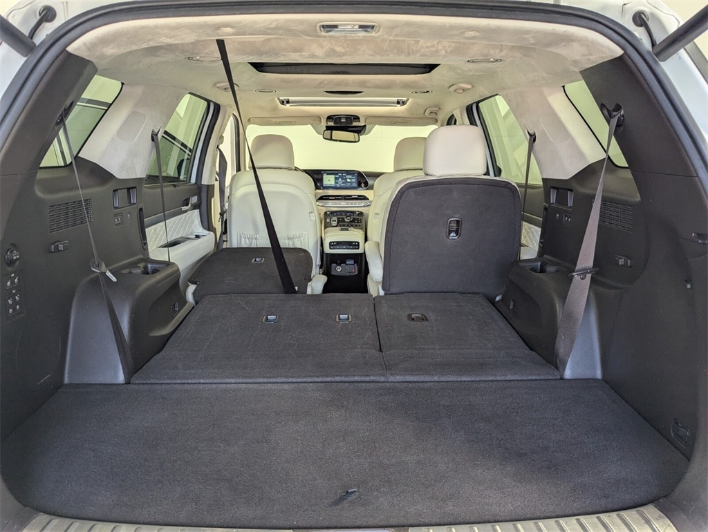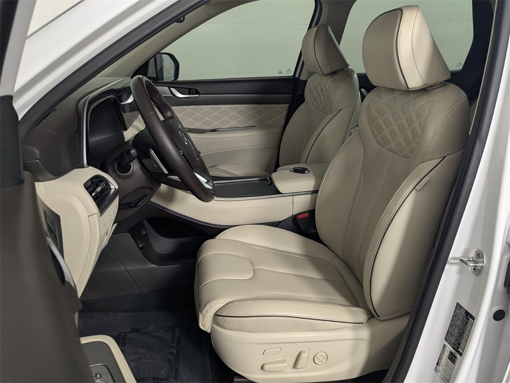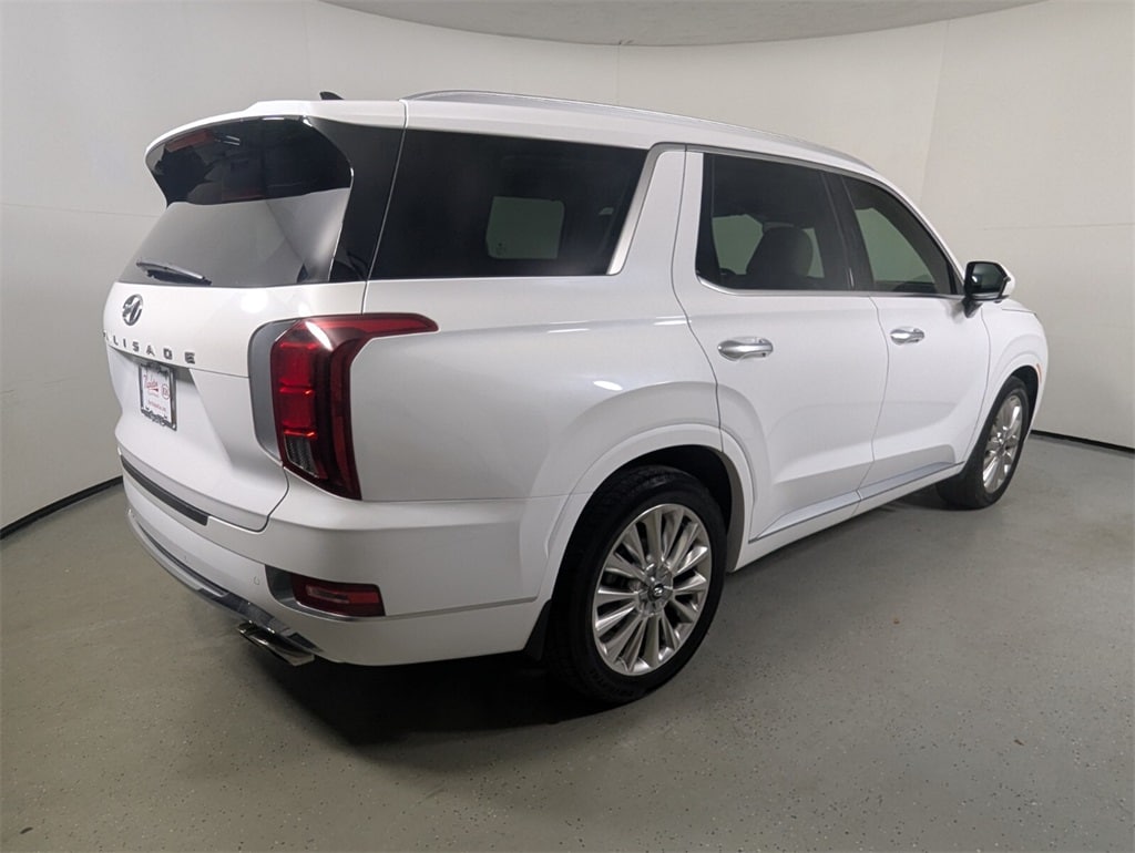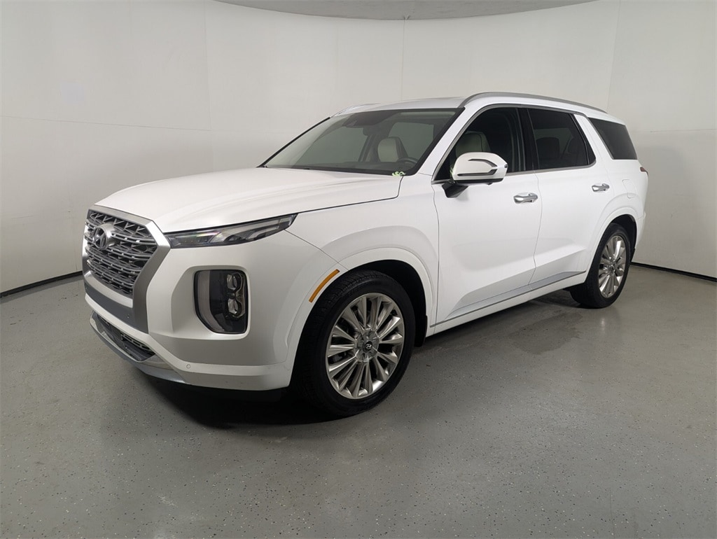 2020 Hyundai Palisade Limited Beautifully finished in Hyper White with Beige Leather interior. V6 4D Sport Utility FWD 8-Speed Automatic with SHIFTRONIC 12 Speakers, 3.648 Axle Ratio, 3rd row seats: split-bench, 4-Wheel Disc Brakes, ABS brakes, Air Conditioning, Alloy wheels, AM/FM radio: SiriusXM, Apple CarPlay & Android Auto, Auto High-beam Headlights, Auto-dimming Rear-View mirror, Auto-leveling suspension, Automatic temperature control, Brake assist, Bumper Applique, Bumpers: body-color, Cargo Cover/Screen, Cargo Net, Carpeted Floor Mats, Compass, Delay-off headlights, Driver door bin, Driver vanity mirror, Dual front impact airbags, Dual front side impact airbags, Electronic Stability Control, Emergency communication system, Four wheel independent suspension, Front anti-roll bar, Front Bucket Seats, Front Center Armrest, Front dual zone A/C, Front reading lights, Fully automatic headlights, Garage door transmitter: HomeLink, harman/kardon® Speakers, Heads-Up Display, Heated & Ventilated Front Bucket Seats, Heated door mirrors, Heated front seats, Heated rear seats, Heated steering wheel, Illuminated entry, Knee airbag, Low tire pressure warning, Memory seat, Mudguards, Navigation System, Occupant sensing airbag, Option Group 01, Outside temperature display, Overhead airbag, Overhead console, Panic alarm, Passenger door bin, Passenger vanity mirror, Power door mirrors, Power driver seat, Power Liftgate, Power moonroof, Power passenger seat, Power steering, Power windows, Premium Nappa Leather Seat Trim, Radio data system, Radio: AM/FM/MP3 Premium Audio System, Rain sensing wipers, Rear air conditioning, Rear anti-roll bar, Rear window defroster, Rear window wiper, Reclining 3rd row seat, Remote keyless entry, Security system, Speed control, Speed-sensing steering, Split folding rear seat, Spoiler, Steering wheel mounted audio controls, Tachometer, Telescoping steering wheel, Tilt steering wheel, Traction control, Trip computer, Turn signal indicator mirrors, Variably intermittent wipers, Ventilated front seats, Ventilated rear seats, Wheels: 20" x 7.5J 14-Spoke Premium Finish Alloy. 19/26 City/Highway MPG