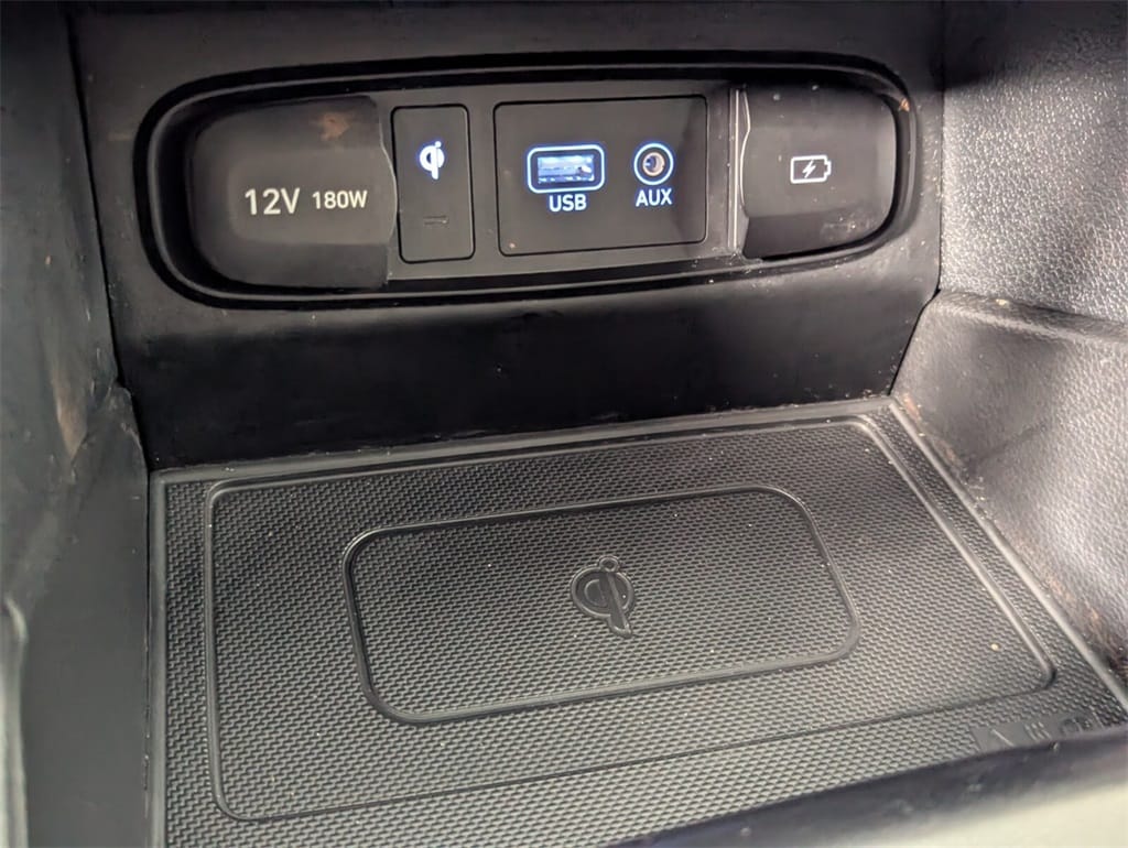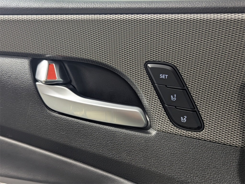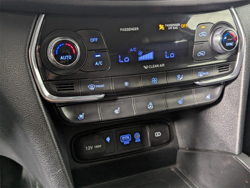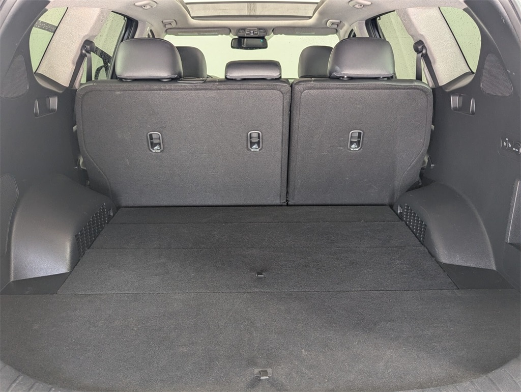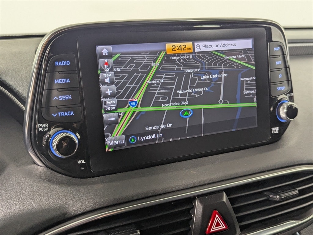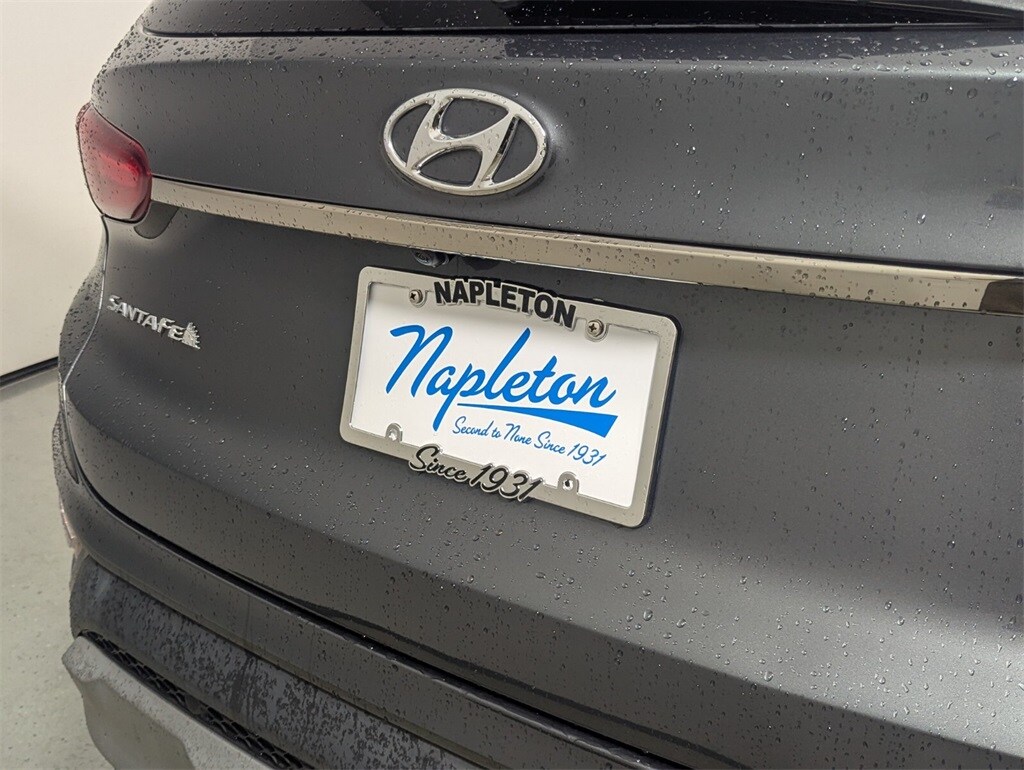 This Santa Fe is well equipped with Option Group 01, Black Leather, 12 Speakers, 4-Wheel Disc Brakes, ABS brakes, Air Conditioning, Alloy wheels, AM/FM radio: SiriusXM, Apple CarPlay & Android Auto, Auto High-beam Headlights, Auto-dimming Rear-View mirror, Automatic temperature control, Axle Ratio 3.320, Brake assist, Bumpers: body-color, Cargo Cover, Cargo Tray, Carpeted Floor Mats, Compass, Delay-off headlights, Driver door bin, Driver vanity mirror, Dual front impact airbags, Dual front side impact airbags, Electronic Stability Control, Emergency communication system, Four wheel independent suspension, Front anti-roll bar, Front Bucket Seats, Front Center Armrest, Front dual zone A/C, Front fog lights, Front reading lights, Fully automatic headlights, Garage door transmitter: HomeLink, Heads-Up Display, Heated & Ventilated Front Bucket Seats, Heated door mirrors, Heated front seats, Heated rear seats, Heated steering wheel, Illuminated entry, Leather Seating Surface, Leather Shift Knob, Leather steering wheel, Low tire pressure warning, Memory seat, Navigation System/ GPS, Occupant sensing airbag, Outside temperature display, Overhead airbag, Overhead console, Panic alarm, Passenger door bin, Passenger vanity mirror, Power door mirrors, Power driver seat, Power Liftgate, Power moonroof, Power passenger seat, Power steering, Power windows, Radio: Infinity Premium AM/FM/MP3 Display Audio, Rain sensing wipers, Rear anti-roll bar, Rear Parking Sensors, Rear seat center armrest, Rear window defroster, Rear window wiper, Remote keyless entry, Security system, Speed control, Speed-sensing steering, Split folding rear seat, Spoiler, Steering wheel mounted audio controls, Tachometer, Telescoping steering wheel, Tilt steering wheel, Traction control, Trip computer, Turn signal indicator mirrors, Variably intermittent wipers, Ventilated front seats, and Wheels: 19" x 7.5J Alloy.