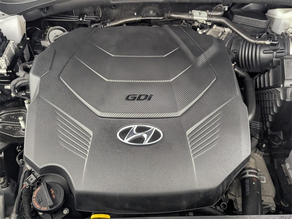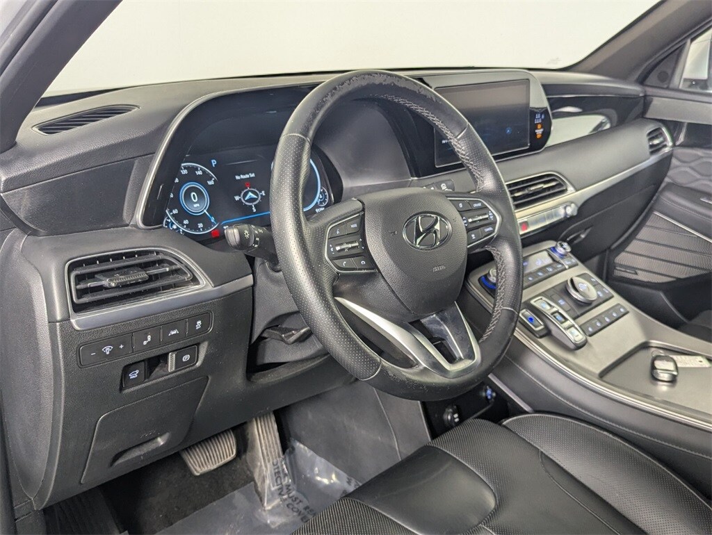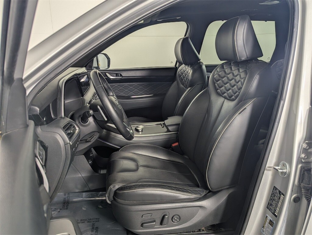 2022 Hyundai Palisade Calligraphy Beautifully finished in Typhoon Silver with Black Leather interior. V6 4D Sport Utility FWD 8-Speed Automatic with SHIFTRONIC 12 Speakers, 3.648 Axle Ratio, 3rd row seats: split-bench, 4-Wheel Disc Brakes, ABS brakes, Air Conditioning, Alloy wheels, AM/FM radio: SiriusXM, Apple CarPlay & Android Auto, Auto High-beam Headlights, Auto-dimming Rear-View mirror, Auto-leveling suspension, Automatic temperature control, Brake assist, Bumper Applique, Bumpers: body-color, Cargo Block, Cargo Cover/Screen, Cargo Net, Cargo Package, Cargo Tray, Carpeted Floor Mats, Compass, Delay-off headlights, Driver door bin, Driver vanity mirror, Dual front impact airbags, Dual front side impact airbags, Electronic Stability Control, Emergency communication system: Blue Link Connected Car Service (3-year complimentary subscription), First Aid Kit, Four wheel independent suspension, Front anti-roll bar, Front Bucket Seats, Front Center Armrest, Front dual zone A/C, Front reading lights, Fully automatic headlights, Garage door transmitter: HomeLink, harman/kardon® Speakers, Heads-Up Display, Heated & Ventilated Front Bucket Seats, Heated door mirrors, Heated front seats, Heated rear seats, Heated steering wheel, Illuminated entry, Knee airbag, Low tire pressure warning, Memory seat, Navigation System, Occupant sensing airbag, Option Group 01, Outside temperature display, Overhead airbag, Overhead console, Panic alarm, Passenger door bin, Passenger vanity mirror, Power door mirrors, Power driver seat, Power Liftgate, Power moonroof, Power passenger seat, Power steering, Power windows, Premium Nappa Leather Seat Trim, Radio data system, Radio: AM/FM/MP3 Premium Audio System, Rain sensing wipers, Rear air conditioning, Rear anti-roll bar, Rear audio controls, Rear reading lights, Rear window defroster, Rear window wiper, Reclining 3rd row seat, Remote keyless entry, Security system, Speed control, Speed-sensing steering, Split folding rear seat, Spoiler, Steering wheel mounted audio controls, Tachometer, Telescoping steering wheel, Tilt steering wheel, Traction control, Trip computer, Turn signal indicator mirrors, Variably intermittent wipers, Ventilated front seats, Ventilated rear seats, Wheel Locks, Wheels: 20" x 7.5J Calligraphy Exclusive Alloy. CARFAX One-Owner. 19/26 City/Highway MPG