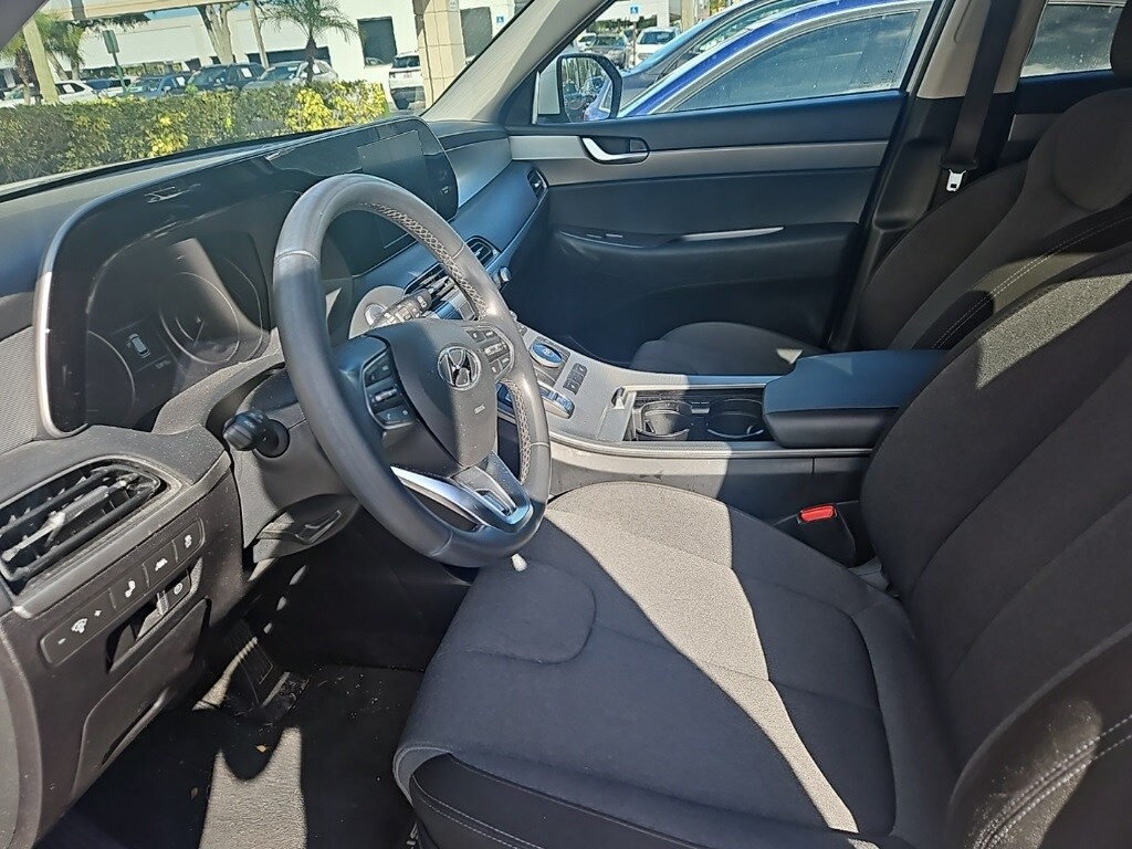 Features: Option Group 01, Palisade SEL, 4D Sport Utility, V6, 8-Speed Automatic with SHIFTRONIC, FWD, Hyper White, Black Cloth, 3.648 Axle Ratio, 3rd row seats: split-bench, 4-Wheel Disc Brakes, 6 Speakers, ABS brakes, Air Conditioning, Alloy wheels, AM/FM radio, Apple CarPlay & Android Auto, Auto High-beam Headlights, Auto-dimming Rear-View mirror, Automatic temperature control, Brake assist, Bumper Applique, Bumpers: body-color, Cargo Net, Cargo Tray, Carpeted Floor Mats, Cloth Seat Trim, Delay-off headlights, Driver door bin, Driver vanity mirror, Dual front impact airbags, Dual front side impact airbags, Electronic Stability Control, First Aid Kit, Four wheel independent suspension, Front anti-roll bar, Front Bucket Seats, Front Center Armrest, Front dual zone A/C, Front reading lights, Fully automatic headlights, Garage door transmitter: HomeLink, Heated door mirrors, Heated Front Bucket Seats, Heated front seats, Illuminated entry, Knee airbag, Low tire pressure warning, Mudguards, Occupant sensing airbag, Outside temperature display, Overhead airbag, Overhead console, Panic alarm, Passenger door bin, Passenger vanity mirror, Power door mirrors, Power driver seat, Power moonroof, Power steering, Power windows, Radio data system, Radio: AM/FM/MP3 Display Audio, Rear air conditioning, Rear anti-roll bar, Rear audio controls, Rear reading lights, Rear window defroster, Rear window wiper, Reclining 3rd row seat, Remote keyless entry, Security system, Speed control, Speed-sensing steering, Split folding rear seat, Spoiler, Steering wheel mounted audio controls, Tachometer, Telescoping steering wheel, Tilt steering wheel, Traction control, Trip computer, Turn signal indicator mirrors, Variably intermittent wipers, and Wheels: 18" x 7.5J Machine Finish Alloy.