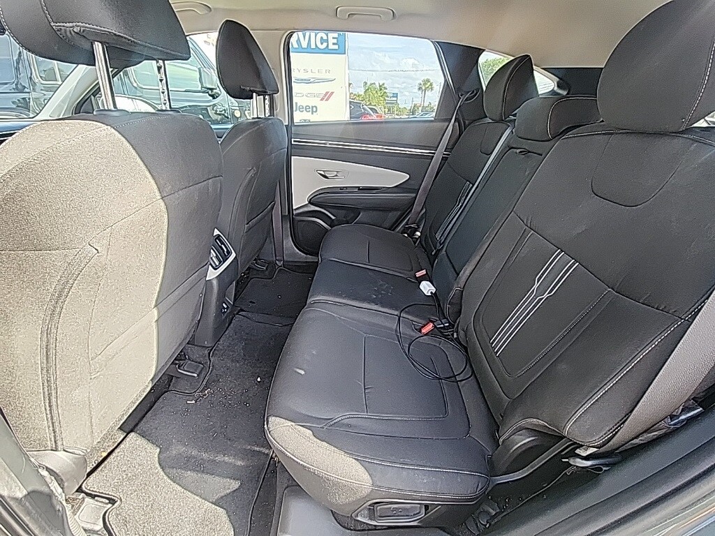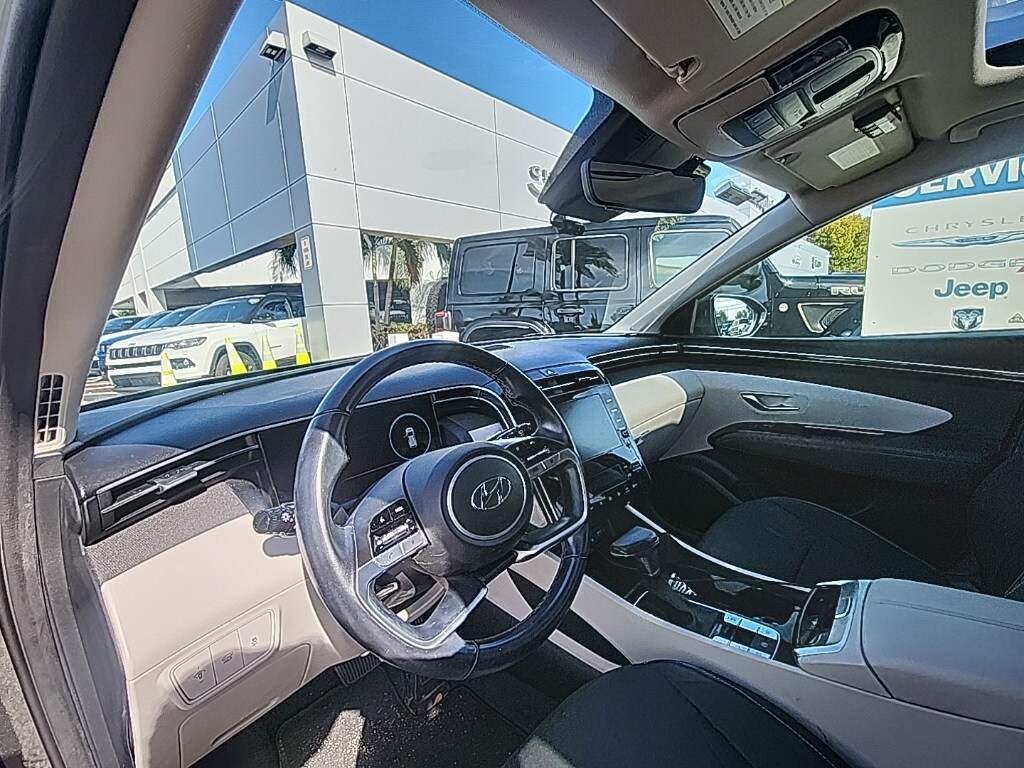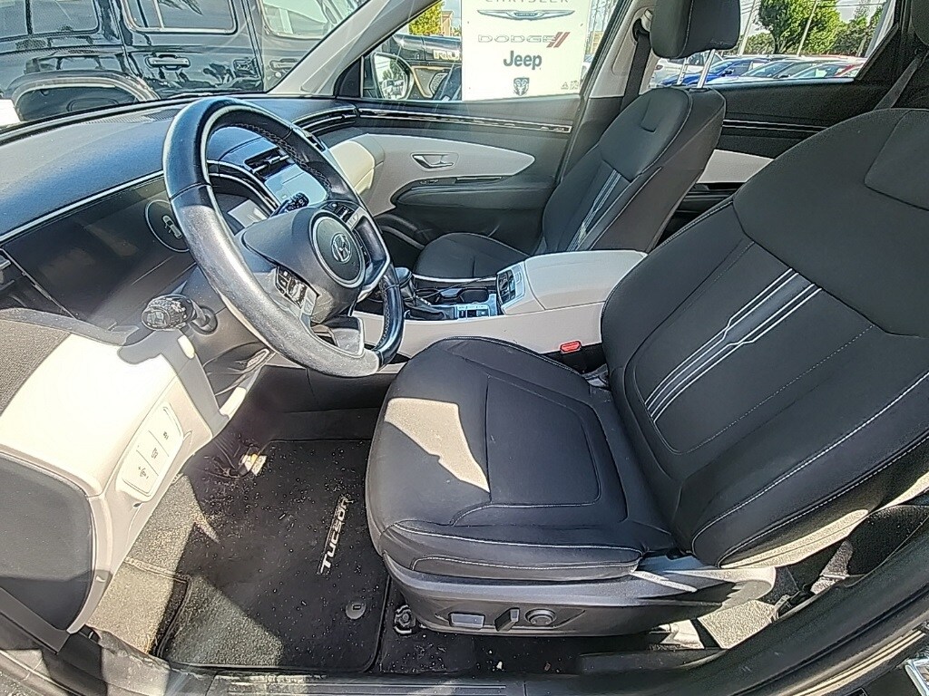 This Tucson is well equipped with Convenience Package (10.25" Digital Instrument Cluster, Auto-Dimming Interior Mirror w/Homelink, Digital Key, Dual Automatic Temperature Control, Hands-Free Power Liftgate w/Auto-Open, Leather-Wrapped Shift Knob, Leather-Wrapped Steering Wheel, LED Interior Lights (Room, Map), Option Group 02, Power Sunroof, Ultrasonic Rear Occupant Alert, Wheels: 19" x 7.5J" Machine-Face Finish Alloy, and Wireless Phone Charging), 3.648 Axle Ratio, 4-Wheel Disc Brakes, 6 Speakers, ABS brakes, Air Conditioning, Alloy wheels, AM/FM radio: SiriusXM, Apple CarPlay & Android Auto, Auto High-beam Headlights, Brake assist, Bumpers: body-color, Cargo Cover, Cargo Net, Cargo Tray, Carpeted Floor Mats, Delay-off headlights, Driver door bin, Driver vanity mirror, Dual front impact airbags, Dual front side impact airbags, Electronic Stability Control, Emergency communication system: Blue Link Connected Car Service (3-year complimentary subscription), First Aid Kit, Four wheel independent suspension, Front anti-roll bar, Front Bucket Seats, Front Center Armrest, Front reading lights, Fully automatic headlights, Heated door mirrors, Heated Front Bucket Seats, Heated front seats, Illuminated entry, Low tire pressure warning, Occupant sensing airbag, Outside temperature display, Overhead airbag, Overhead console, Panic alarm, Passenger door bin, Passenger vanity mirror, Power door mirrors, Power driver seat, Power steering, Power windows, Radio data system, Radio: AM/FM/HD/SiriusXM Audio System, Rear anti-roll bar, Rear seat center armrest, Rear window defroster, Rear window wiper, Remote keyless entry, Roof rack: rails only, Security system, Speed control, Split folding rear seat, Spoiler, Stain & Odor Resistant Cloth Seat Trim, Steering wheel mounted audio controls, Tachometer, Telescoping steering wheel, Tilt steering wheel, Traction control, Trip computer, Turn signal indicator mirrors, Variably intermittent wipers, and Wheels: 17" x 7.0J" Alloy.