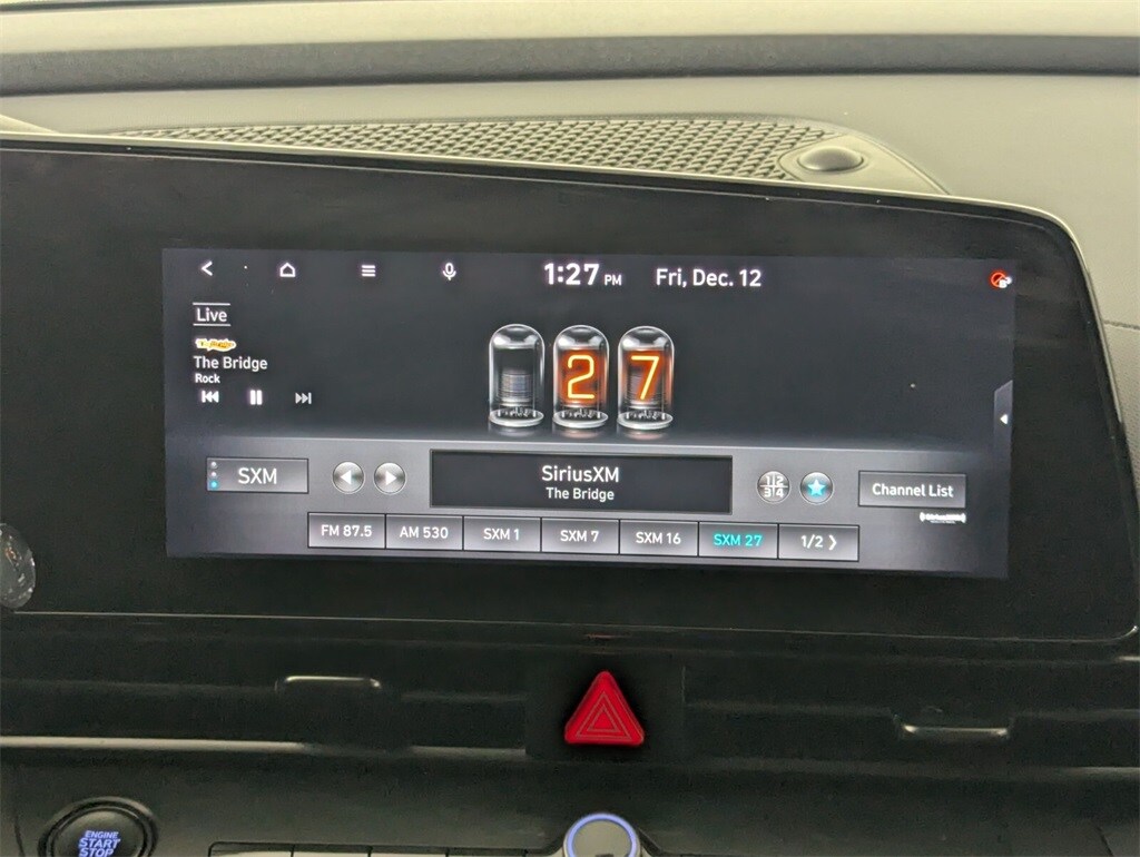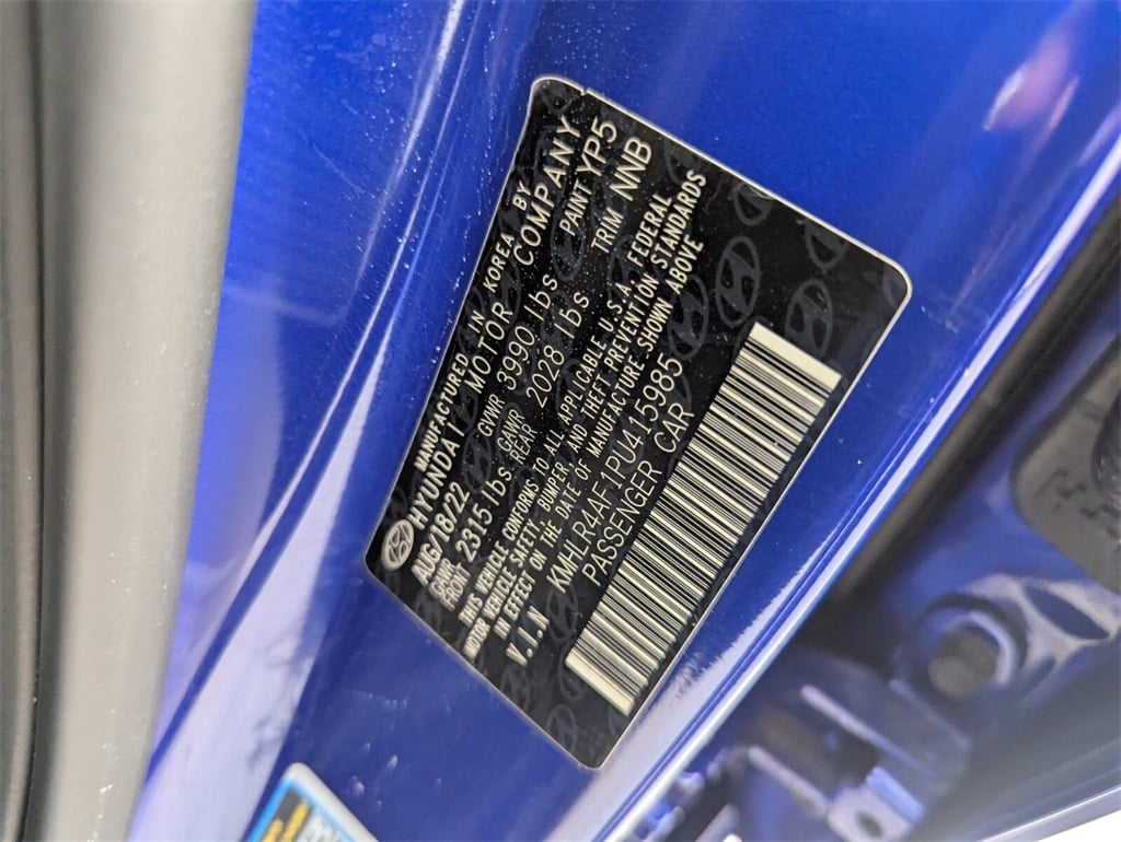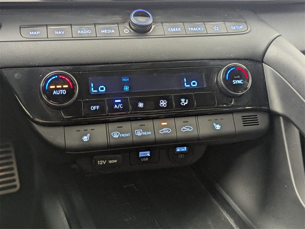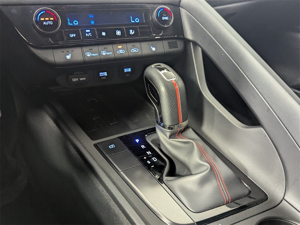 Features: Option Group 01, 18" x 7.5J Alloy Wheels, 4-Wheel Disc Brakes, 6 Speakers, ABS brakes, Air Conditioning, Alloy wheels, AM/FM radio: SiriusXM, Apple CarPlay & Android Auto, Auto High-beam Headlights, Automatic temperature control, Brake assist, Bumpers: body-color, Cargo Net, Carpeted Floor Mats, Combination Cloth & Leather Seating Surfaces, Delay-off headlights, Driver door bin, Driver vanity mirror, Dual front impact airbags, Dual front side impact airbags, Electronic Stability Control, Emergency communication system: Blue Link Connected Car Service (3-year complimentary subscription), Exterior Parking Camera Rear, First Aid Kit, Four wheel independent suspension, Front anti-roll bar, Front Bucket Seats, Front Center Armrest, Front dual zone A/C, Front reading lights, Fully automatic headlights, Heated door mirrors, Heated front seats, Heated Front Sport Bucket Seats, Illuminated entry, Leather Shift Knob, Leather steering wheel, Low tire pressure warning, Navigation System, Occupant sensing airbag, Outside temperature display, Overhead airbag, Overhead console, Panic alarm, Passenger door bin, Passenger vanity mirror, Power door mirrors, Power driver seat, Power moonroof, Power steering, Power windows, Radio: AM/FM/HD/SiriusXM Display Audio, Rear anti-roll bar, Rear seat center armrest, Rear window defroster, Remote keyless entry, Reversible Cargo Tray, Security system, Speed control, Speed-sensing steering, Split folding rear seat, Spoiler, Sport steering wheel, Steering wheel mounted audio controls, Tachometer, Telescoping steering wheel, Tilt steering wheel, Traction control, Trip computer, and Variably intermittent wipers.