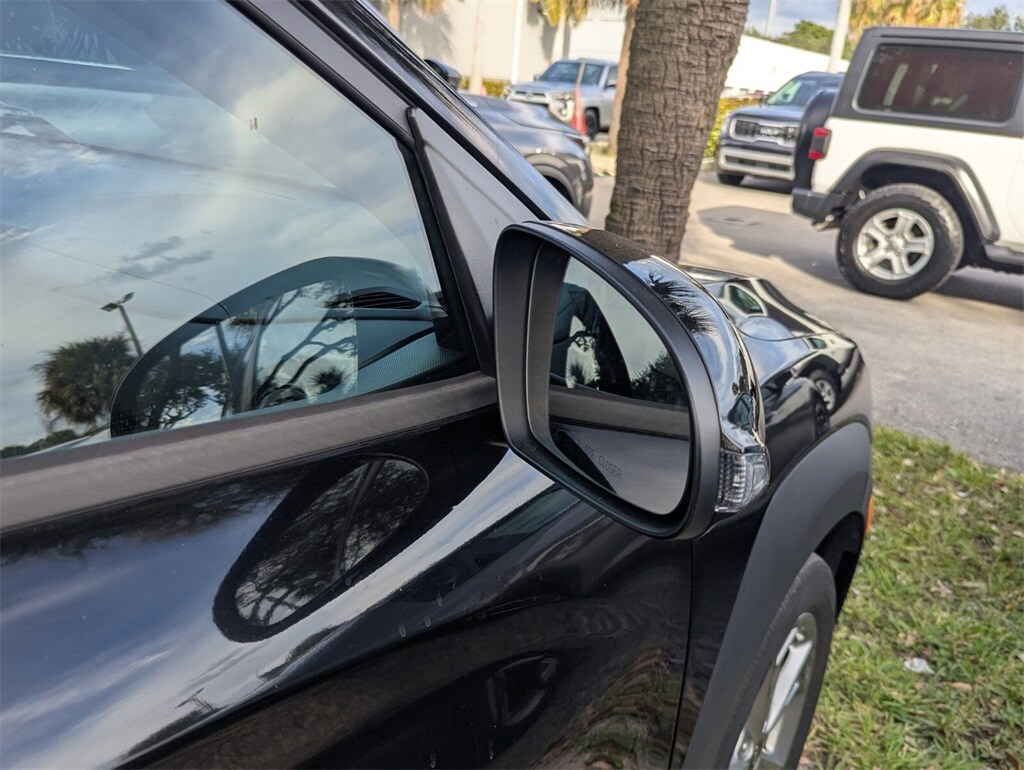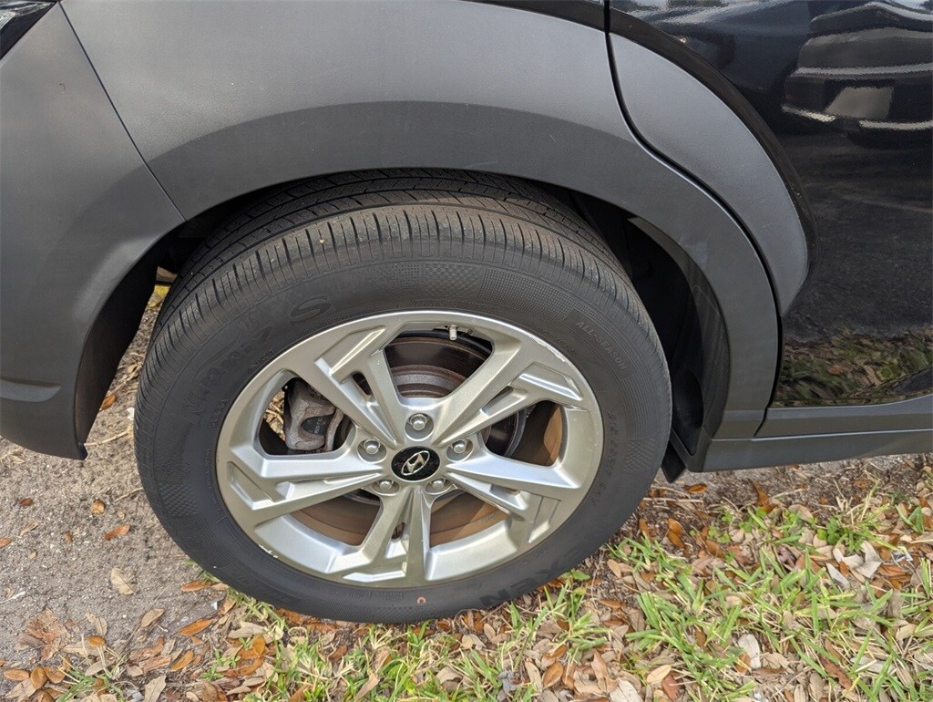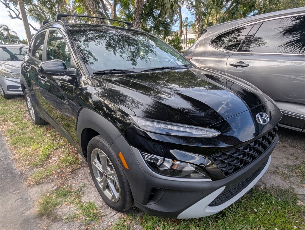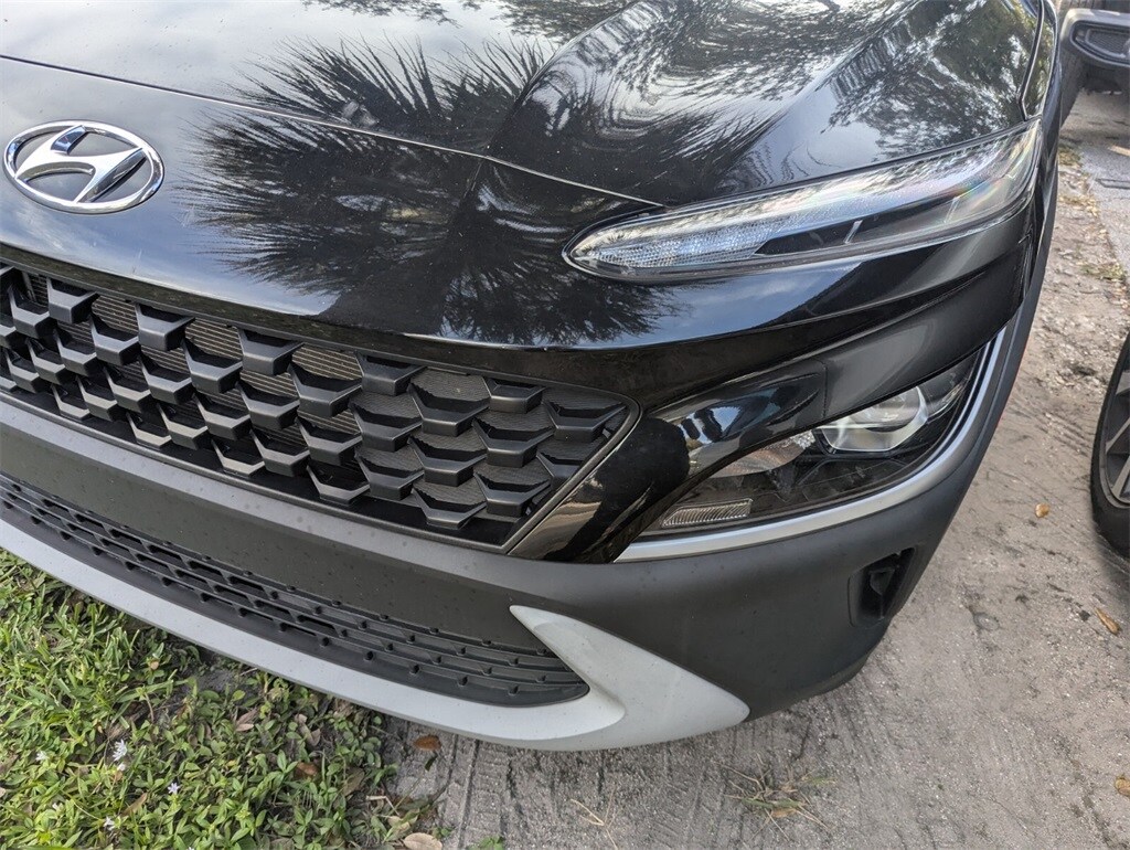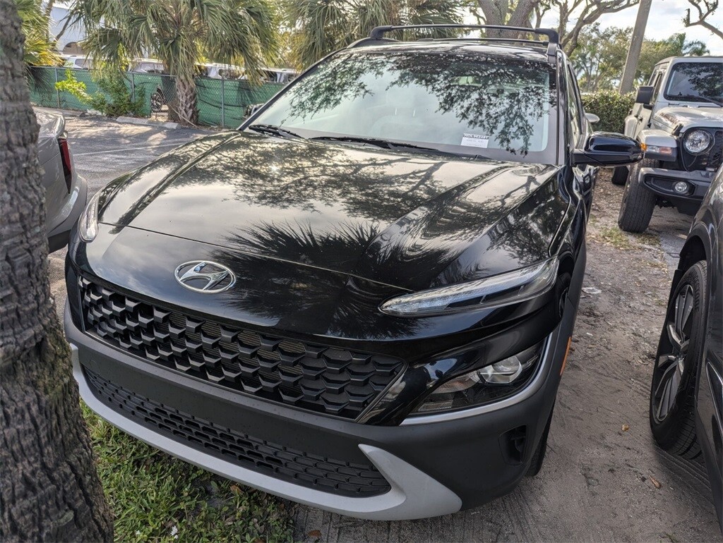 Features: Option Group 01, Kona SEL, 4D Sport Utility, 2.0L I4 DOHC Dual CVVT, CVT, AWD, Ultra Black, Gray w/Cloth Seat Trim, 17" x 7.0J Alloy Wheels, 4-Wheel Disc Brakes, 5.715 Axle Ratio, 6 Speakers, ABS brakes, Air Conditioning, Alloy wheels, AM/FM radio: SiriusXM, Apple CarPlay & Android Auto, Brake assist, Bumpers: body-color, Cargo Net, Cargo Tray, Carpeted Floor Mats, Cloth Seat Trim, Delay-off headlights, Driver door bin, Driver vanity mirror, Dual front impact airbags, Dual front side impact airbags, Electronic Stability Control, Emergency communication system: Blue Link Connected Car Service (3-year complimentary subscription), Exterior Parking Camera Rear, Four wheel independent suspension, Front anti-roll bar, Front Bucket Seats, Front Center Armrest, Front reading lights, Fully automatic headlights, Heated door mirrors, Illuminated entry, Low tire pressure warning, Occupant sensing airbag, Outside temperature display, Overhead airbag, Overhead console, Panic alarm, Passenger door bin, Passenger vanity mirror, Power door mirrors, Power driver seat, Power steering, Power windows, Radio: AM/FM/HD/SiriusXM Audio System, Rear anti-roll bar, Rear seat center armrest, Rear window defroster, Rear window wiper, Remote keyless entry, Roof Rack Cross Rails (DISC), Security system, Speed control, Speed-sensing steering, Split folding rear seat, Spoiler, Steering wheel mounted audio controls, Tachometer, Telescoping steering wheel, Tilt steering wheel, Traction control, Trip computer, Turn signal indicator mirrors, and Variably intermittent wipers.