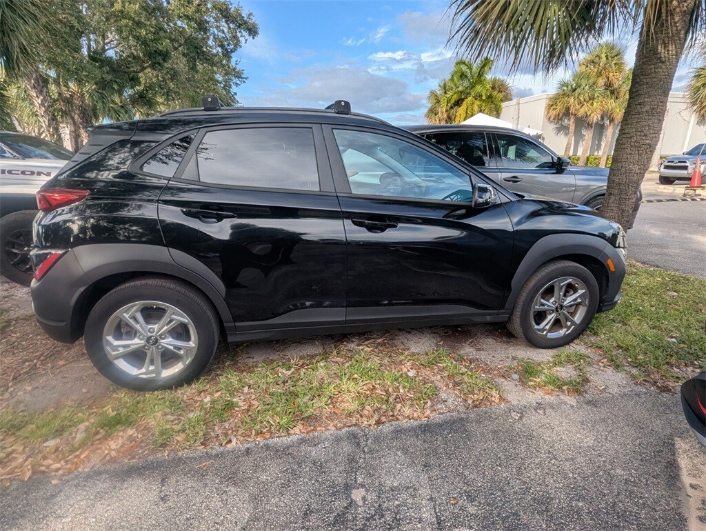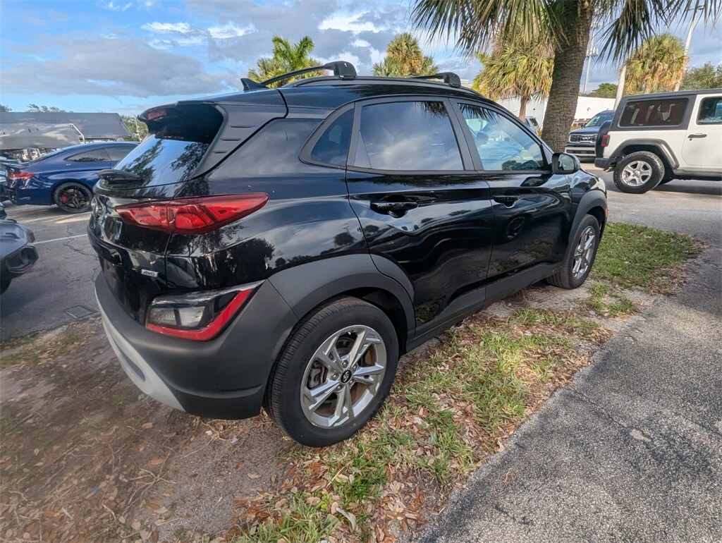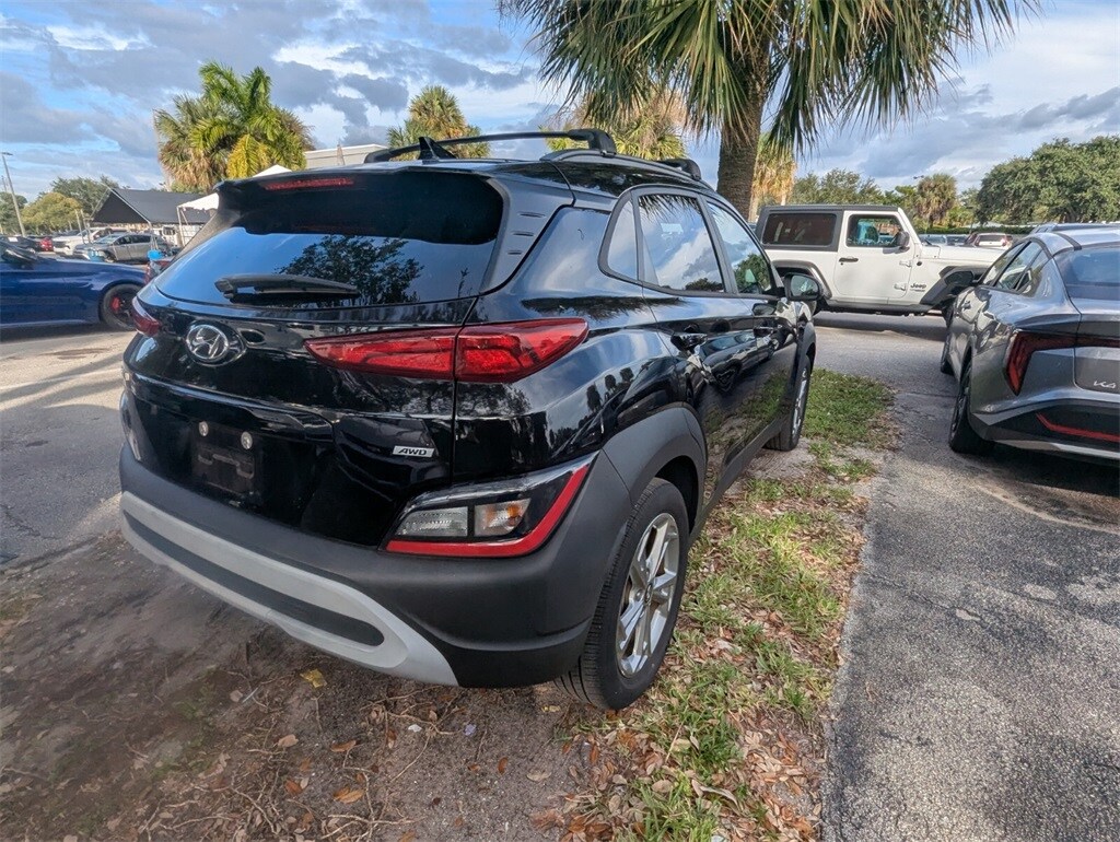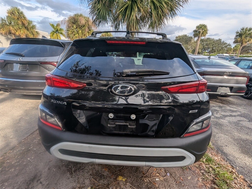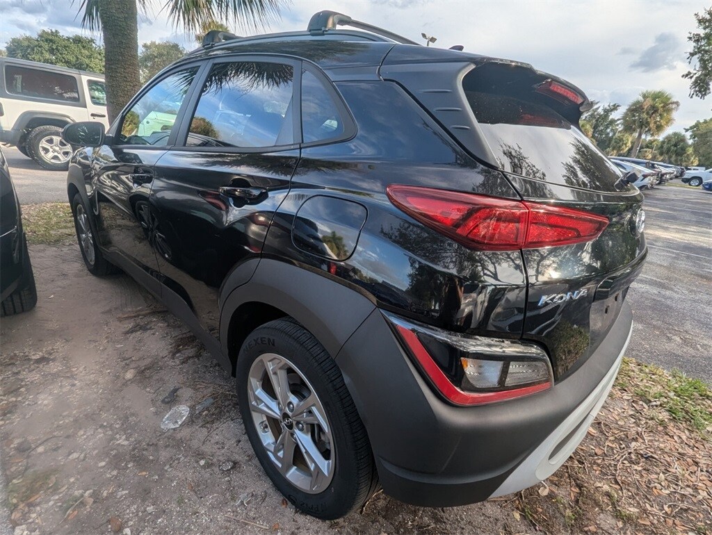 Features: Option Group 01, Kona SEL, 4D Sport Utility, 2.0L I4 DOHC Dual CVVT, CVT, AWD, Ultra Black, Gray w/Cloth Seat Trim, 17" x 7.0J Alloy Wheels, 4-Wheel Disc Brakes, 5.715 Axle Ratio, 6 Speakers, ABS brakes, Air Conditioning, Alloy wheels, AM/FM radio: SiriusXM, Apple CarPlay & Android Auto, Brake assist, Bumpers: body-color, Cargo Net, Cargo Tray, Carpeted Floor Mats, Cloth Seat Trim, Delay-off headlights, Driver door bin, Driver vanity mirror, Dual front impact airbags, Dual front side impact airbags, Electronic Stability Control, Emergency communication system: Blue Link Connected Car Service (3-year complimentary subscription), Exterior Parking Camera Rear, Four wheel independent suspension, Front anti-roll bar, Front Bucket Seats, Front Center Armrest, Front reading lights, Fully automatic headlights, Heated door mirrors, Illuminated entry, Low tire pressure warning, Occupant sensing airbag, Outside temperature display, Overhead airbag, Overhead console, Panic alarm, Passenger door bin, Passenger vanity mirror, Power door mirrors, Power driver seat, Power steering, Power windows, Radio: AM/FM/HD/SiriusXM Audio System, Rear anti-roll bar, Rear seat center armrest, Rear window defroster, Rear window wiper, Remote keyless entry, Roof Rack Cross Rails (DISC), Security system, Speed control, Speed-sensing steering, Split folding rear seat, Spoiler, Steering wheel mounted audio controls, Tachometer, Telescoping steering wheel, Tilt steering wheel, Traction control, Trip computer, Turn signal indicator mirrors, and Variably intermittent wipers.