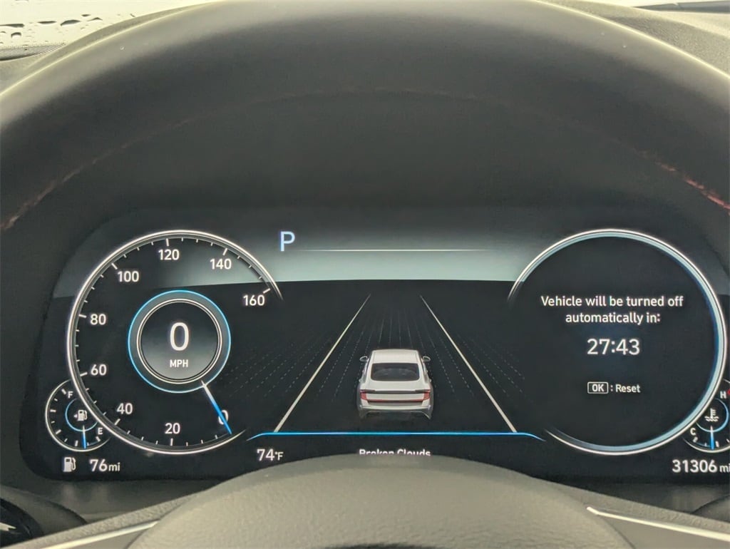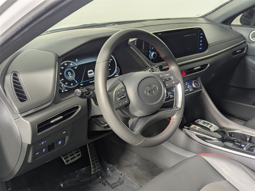 Features: Option Group 01, 12 Speakers, 19" x 8.0J Aluminum Alloy Wheels, 4-Wheel Disc Brakes, ABS brakes, Air Conditioning, Alloy wheels, AM/FM radio: SiriusXM, Apple CarPlay & Android Auto, Auto High-beam Headlights, Auto-dimming Rear-View mirror, Automatic temperature control, Brake assist, Bumpers: body-color, Cargo Tray, Carpeted Floor Mats, Delay-off headlights, Driver door bin, Driver vanity mirror, Dual front impact airbags, Dual front side impact airbags, Electronic Stability Control, Emergency communication system: Blue Link Connected Car Service (3-year complimentary subscription), Exterior Parking Camera Rear, Four wheel independent suspension, Front anti-roll bar, Front Bucket Seats, Front Center Armrest, Front dual zone A/C, Front reading lights, Fully automatic headlights, Heated door mirrors, Heated Front Bucket Seats, Heated front seats, Illuminated entry, Knee airbag, Leather steering wheel, Leatherette/Suede Combination Seating Surfaces, Low tire pressure warning, Navigation System, Occupant sensing airbag, Outside temperature display, Overhead airbag, Overhead console, Panic alarm, Passenger door bin, Passenger vanity mirror, Power door mirrors, Power driver seat, Power moonroof, Power steering, Power windows, Radio data system, Radio: AM/FM/MP3/HD/SiriusXM Display Audio w/Nav, Rear anti-roll bar, Rear Bumper Applique, Rear seat center armrest, Rear side impact airbag, Rear window defroster, Remote keyless entry, Security system, Speed control, Speed-sensing steering, Speed-Sensitive Wipers, Split folding rear seat, Steering wheel mounted audio controls, Tachometer, Telescoping steering wheel, Tilt steering wheel, Traction control, Trip computer, Trunk Cargo Net, Turn signal indicator mirrors, and Variably intermittent wipers.