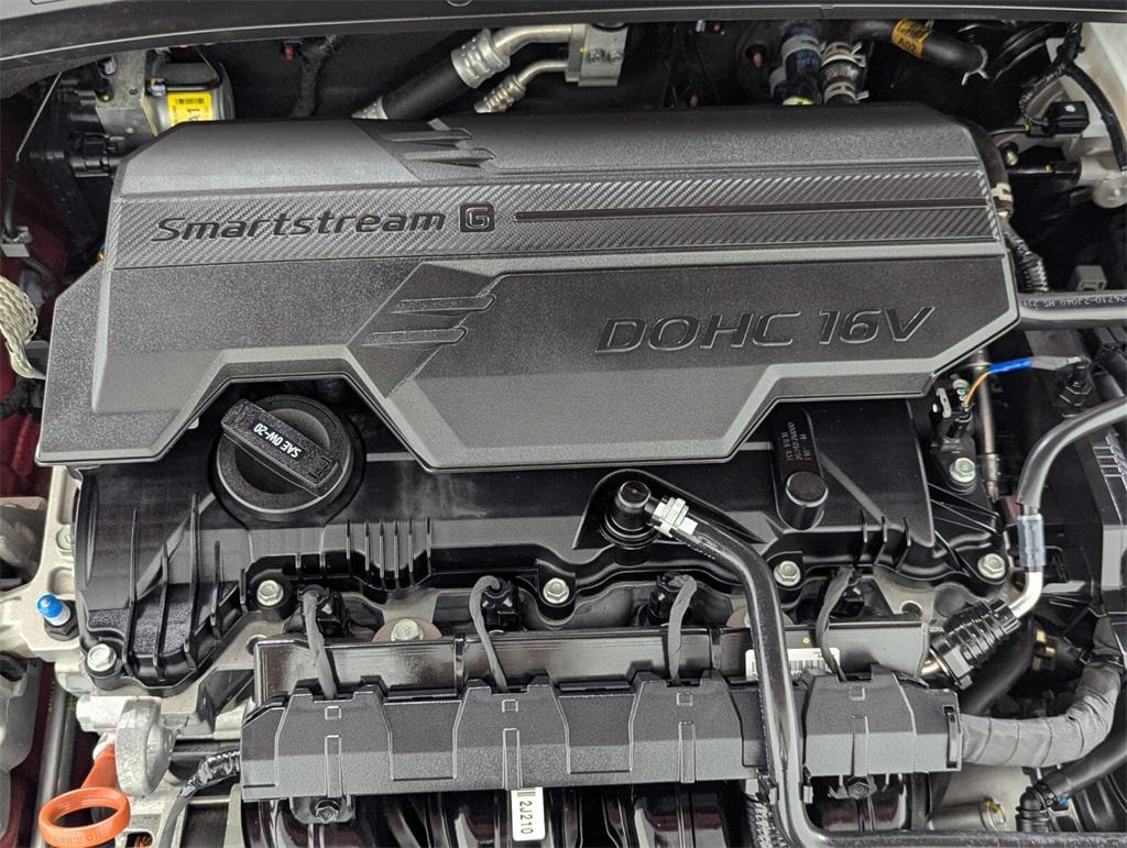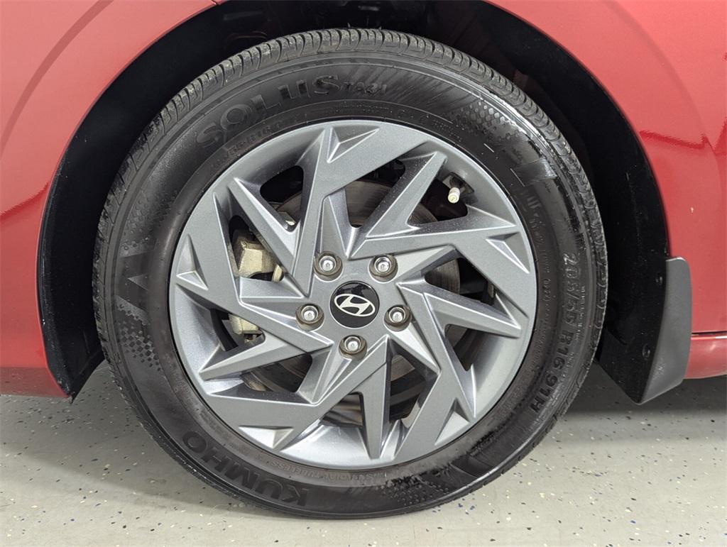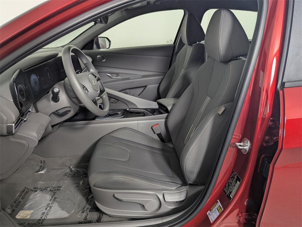 Features: Option Group 01, Elantra SEL, 4D Sedan, I4, CVT, FWD, Ultimate Red, Gray Cloth, 16" x 6.5J Alloy Wheels, 4-Wheel Disc Brakes, 6 Speakers, ABS brakes, Air Conditioning, Alloy wheels, AM/FM radio: SiriusXM, Apple CarPlay & Android Auto, Auto High-beam Headlights, Automatic temperature control, Brake assist, Bumpers: body-color, Cargo Net, Carpeted Floor Mats, Cloth Seat Trim, Delay-off headlights, Driver door bin, Driver vanity mirror, Dual front impact airbags, Dual front side impact airbags, Electronic Stability Control, Emergency communication system: Bluelink+, Exterior Parking Camera Rear, First Aid Kit, Front anti-roll bar, Front Bucket Seats, Front Center Armrest, Front dual zone A/C, Front reading lights, Front wheel independent suspension, Fully automatic headlights, Illuminated entry, Low tire pressure warning, Mudguards, Navigation System, Occupant sensing airbag, Outside temperature display, Overhead airbag, Overhead console, Panic alarm, Passenger door bin, Passenger vanity mirror, Power door mirrors, Power steering, Power windows, Radio: AM/FM/HD/SiriusXM Display Audio, Rear side impact airbag, Rear window defroster, Remote keyless entry, Reversible Cargo Tray, Security system, Speed control, Speed-sensing steering, Steering wheel mounted audio controls, Tachometer, Telescoping steering wheel, Tilt steering wheel, Traction control, Trip computer, and Variably intermittent wipers.
