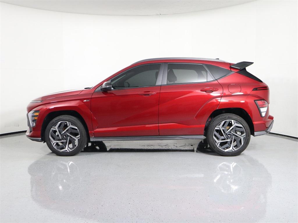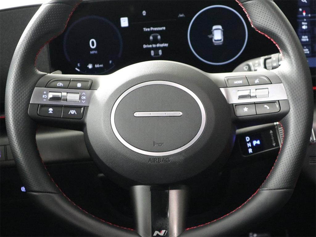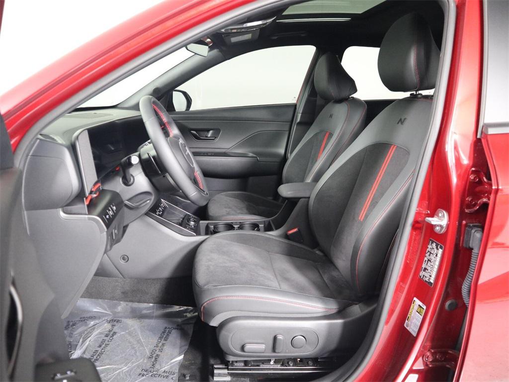 Features: Option Group 01, Kona N Line, 4D Sport Utility, I4, 8-Speed Automatic, AWD, Ultimate Red Metallic, Black Artificial Leather, 3.510 Axle Ratio, 4-Wheel Disc Brakes, 8 Speakers, ABS brakes, Air Conditioning, Alloy wheels, AM/FM radio: SiriusXM, Apple CarPlay & Android Auto, Auto High-beam Headlights, Auto-dimming Rear-View mirror, Automatic temperature control, Brake assist, Bumpers: body-color, Cargo Net, Cargo Tray, Carpeted Floor Mats, Column-Mounted Shift-By-Wire, Delay-off headlights, Driver door bin, Driver vanity mirror, Dual front impact airbags, Dual front side impact airbags, Electronic Stability Control, Emergency communication system: Bluelink+, Exterior Parking Camera Rear, First Aid Kit, Four wheel independent suspension, Front anti-roll bar, Front Bucket Seats, Front Center Armrest, Front dual zone A/C, Front reading lights, Fully automatic headlights, Heated door mirrors, Heated front seats, Heated Front Sport Bucket Seats, Illuminated entry, Leather Shift Knob, Leather steering wheel, Low tire pressure warning, N-Line Alcantara Sport Combination Seat Trim, Navigation System, Occupant sensing airbag, Outside temperature display, Overhead airbag, Panic alarm, Passenger door bin, Passenger vanity mirror, Power door mirrors, Power driver seat, Power moonroof, Power steering, Power windows, Radio: AM/FM/HD Radio/SiriusXM Audio System, Rear anti-roll bar, Rear seat center armrest, Rear window defroster, Rear window wiper, Remote keyless entry, Road Assistance Kit, Security system, Speed control, Speed-sensing steering, Split folding rear seat, Spoiler, Steering wheel mounted audio controls, Tachometer, Telescoping steering wheel, Tilt steering wheel, Traction control, Trip computer, Turn signal indicator mirrors, Variably intermittent wipers, Wheel Locks, and Wheels: 19" x 7.5J Metallic Alloy.